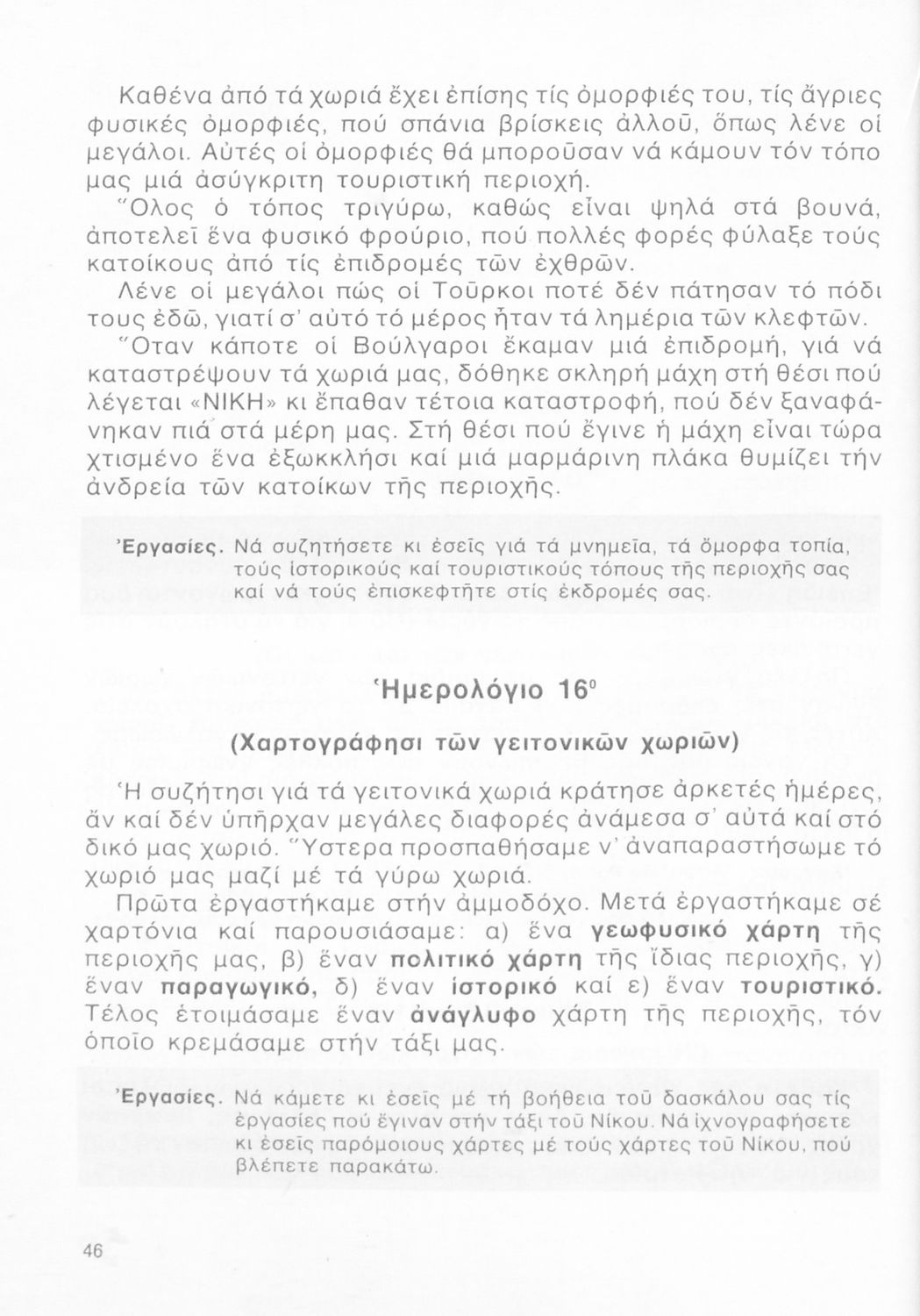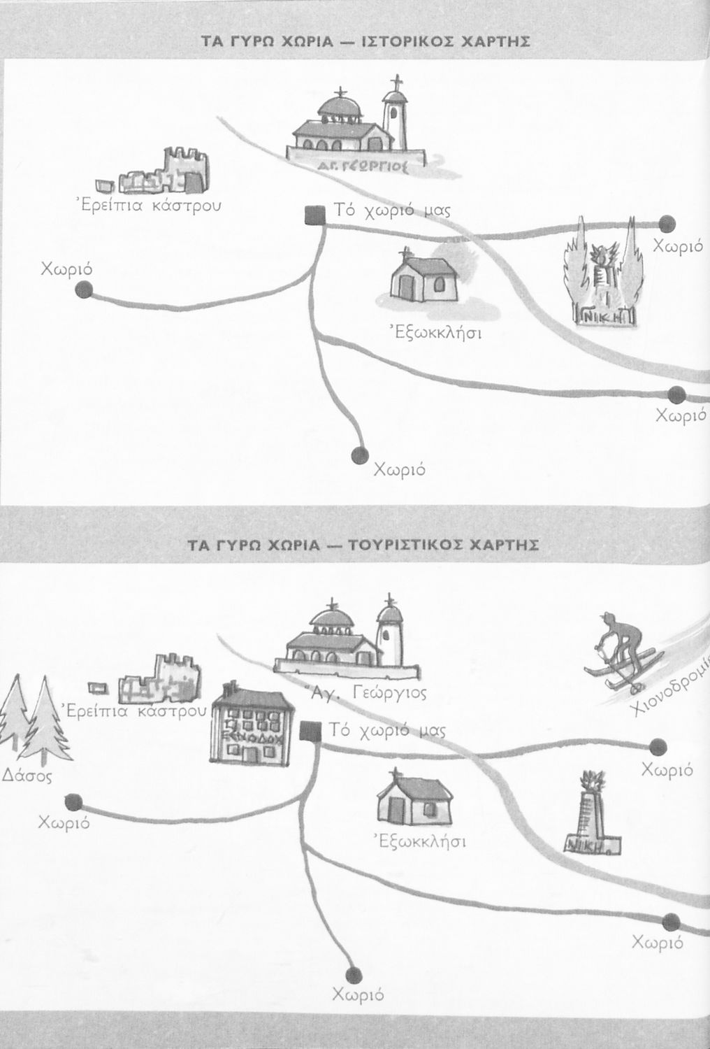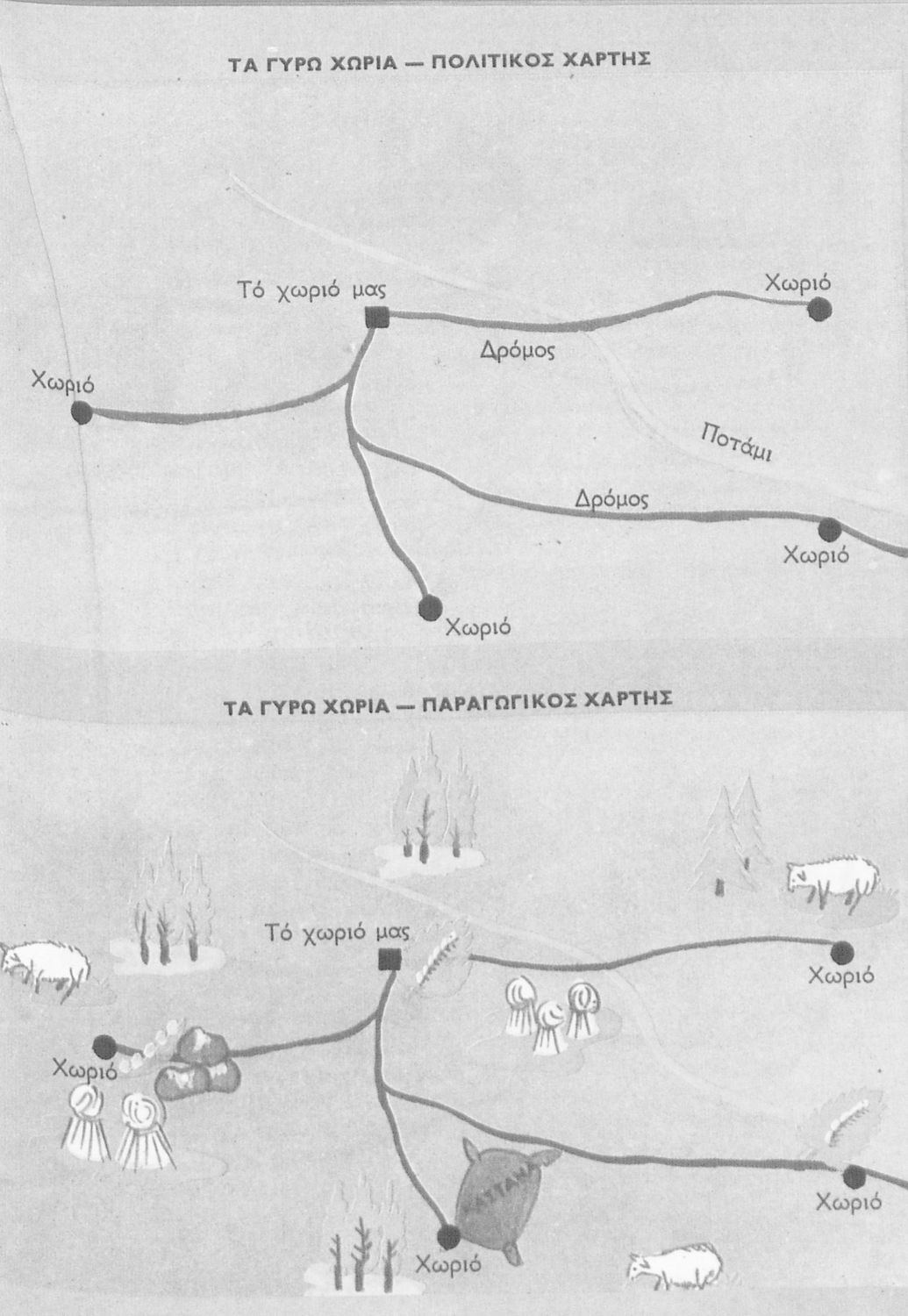 Μαθητικό βοήθημα Γεωγραφίας για την Γ΄ και Δ΄ Δημοτικού που περιέχει χάρτες περιοχών της Ελλάδας τις οποίες εξετάζει από γεωφυσική, πολιτική και οικονομική άποψη.
