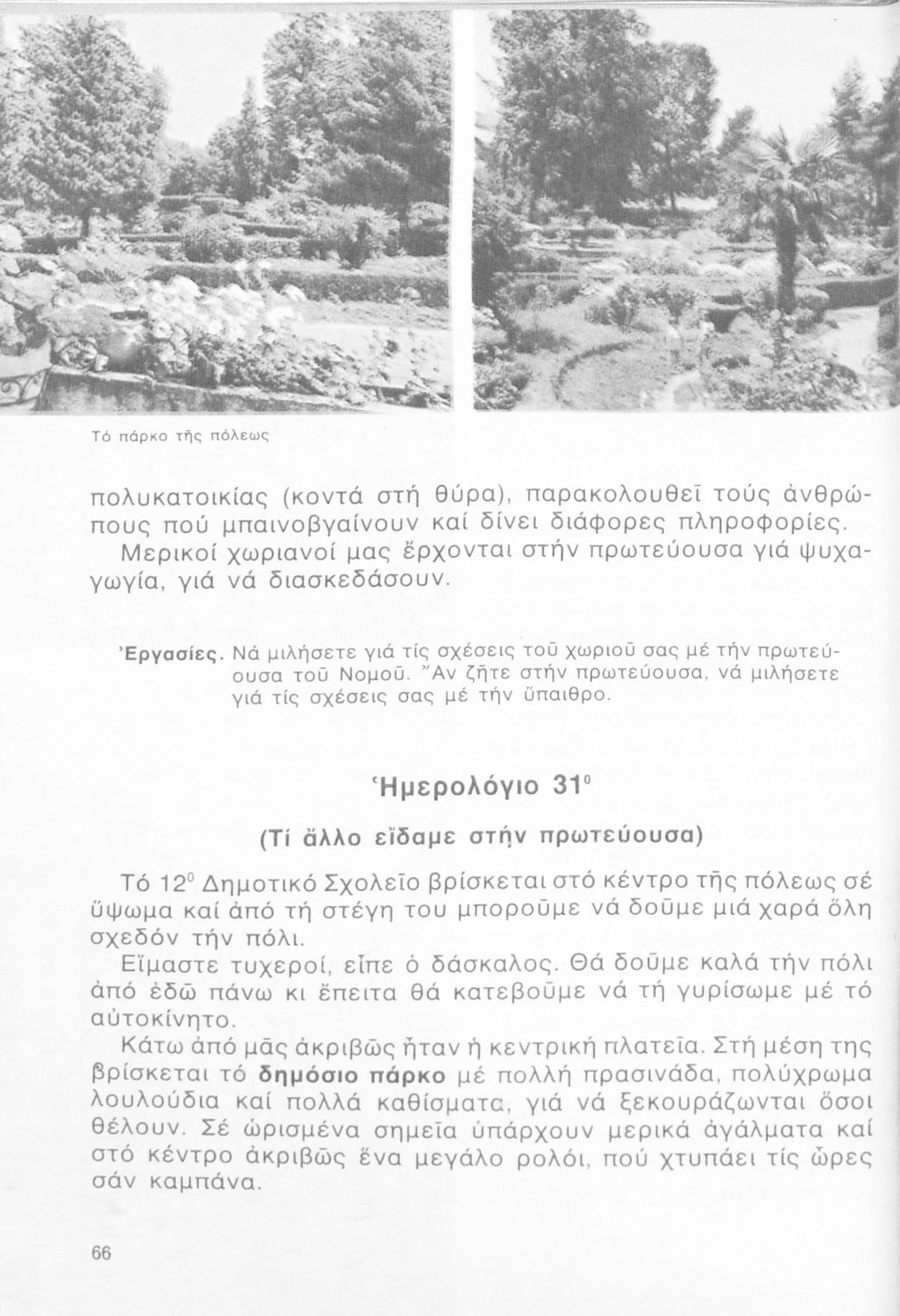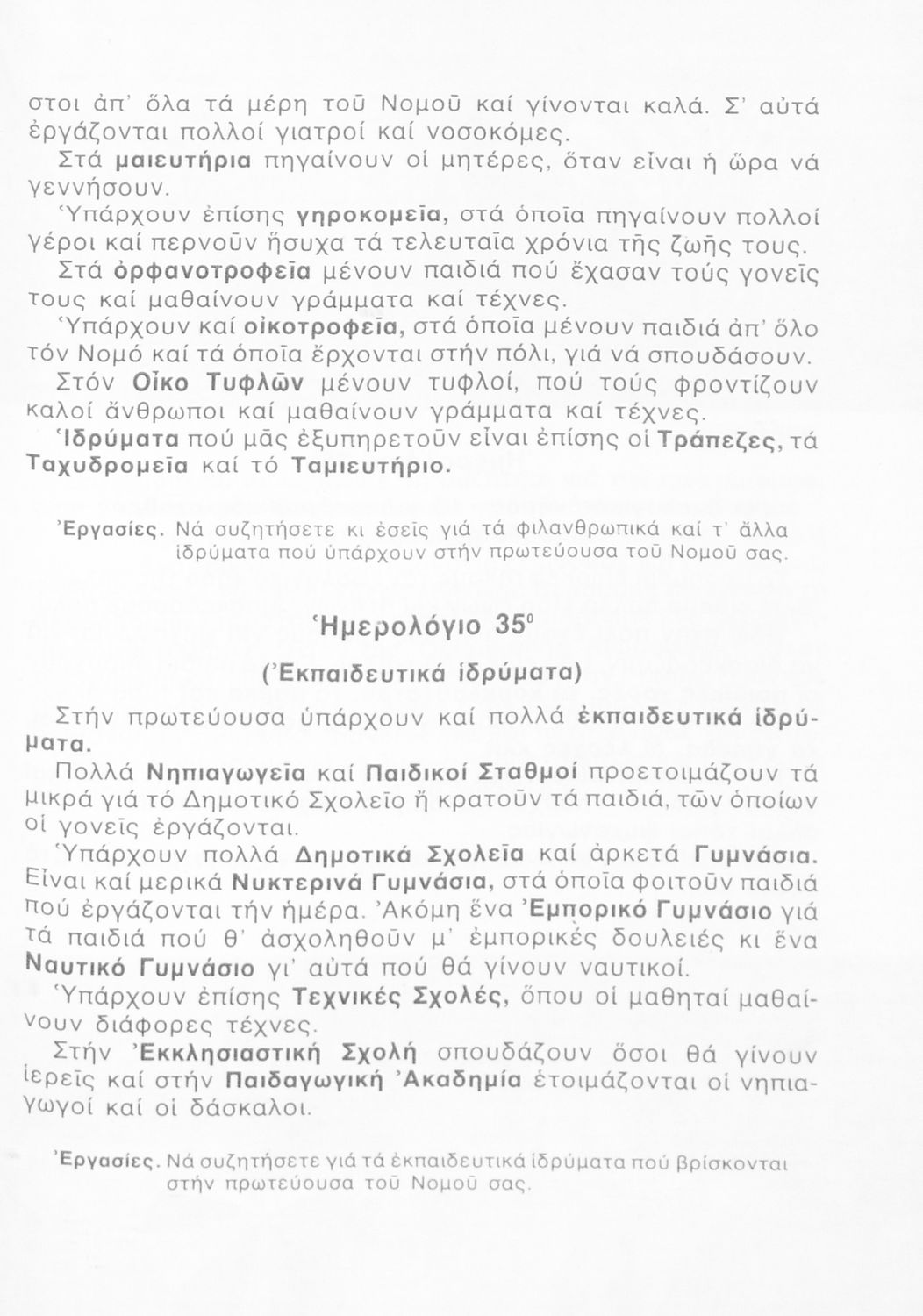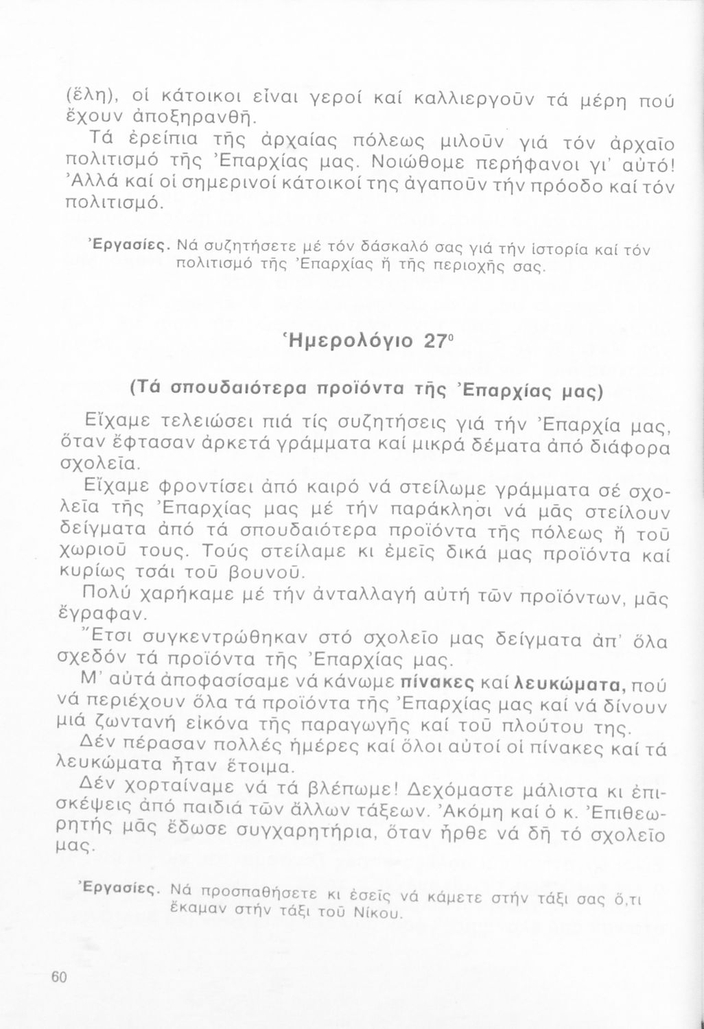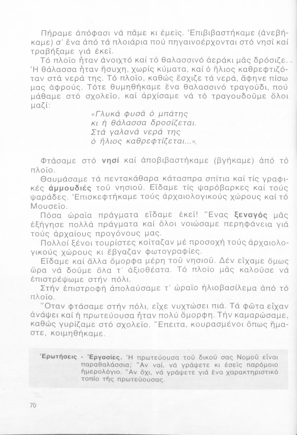 Σχολικό εγχειρίδιο Γεωγραφίας Γ ΄ και Δ' Δημοτικού. Το πρώτο μέρος του βιβλίου απευθύνεται σε μαθητές της Γ' Δημοτικού και αποτελεί μια εισαγωγή στην έννοια της πατριδογνωσίας μέσα από τις παραδόσεις της ελληνικής επαρχίας. Το δεύτερο μέρος αφορά τη Δ' Δημοτικού και εξετάζει την οικονομική, πολιτική και γεωφυσική γεωγραφία της Ελλάδας.