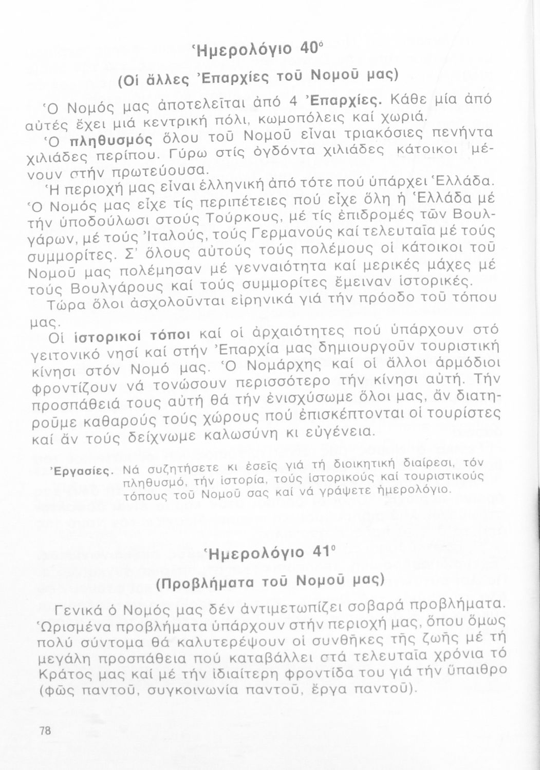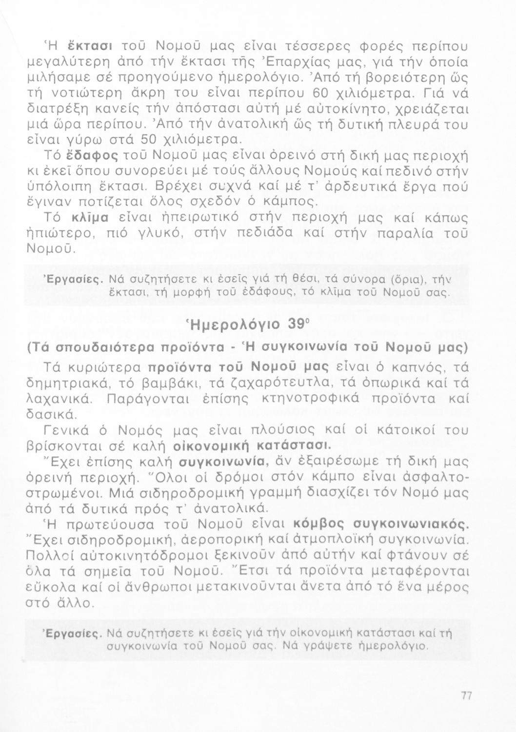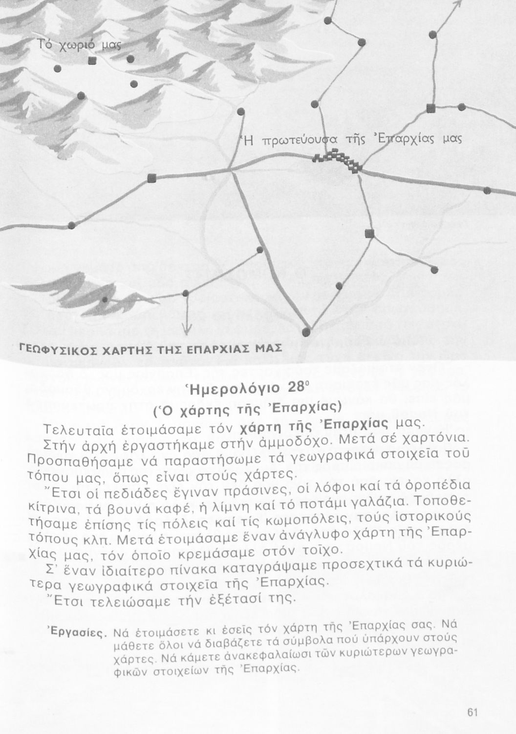 Μαθητικό βοήθημα Γεωγραφίας για την Γ΄ και Δ΄ Δημοτικού που περιέχει χάρτες περιοχών της Ελλάδας τις οποίες εξετάζει από γεωφυσική, πολιτική και οικονομική άποψη.