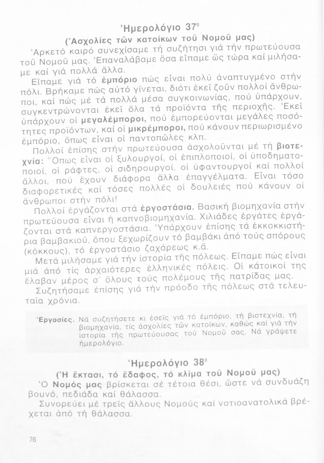 Παρουσίαση περιεχομένου: Σχολικό εγχειρίδιο Γεωγραφίας Γ ΄ και Δ' Δημοτικού. Το πρώτο μέρος του βιβλίου απευθύνεται σε μαθητές της Γ' Δημοτικού και αποτελεί μια εισαγωγή στην έννοια της πατριδογνωσίας μέσα από τις παραδόσεις της ελληνικής επαρχίας. Το δεύτερο μέρος αφορά τη Δ' Δημοτικού και εξετάζει την οικονομική, πολιτική και γεωφυσική γεωγραφία της Ελλάδας.