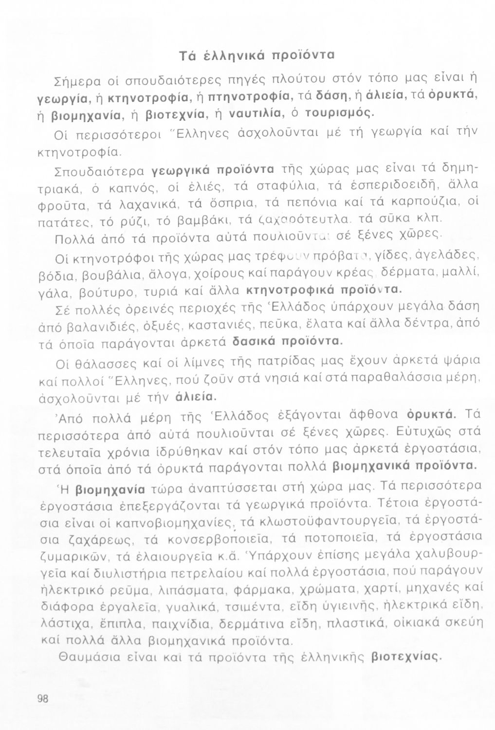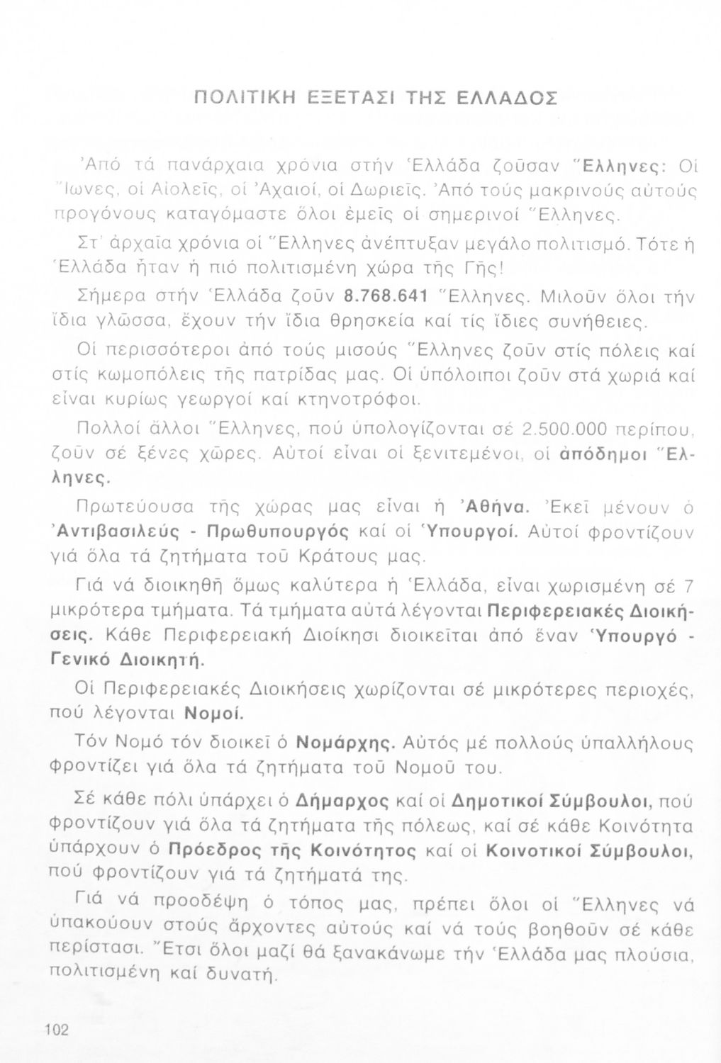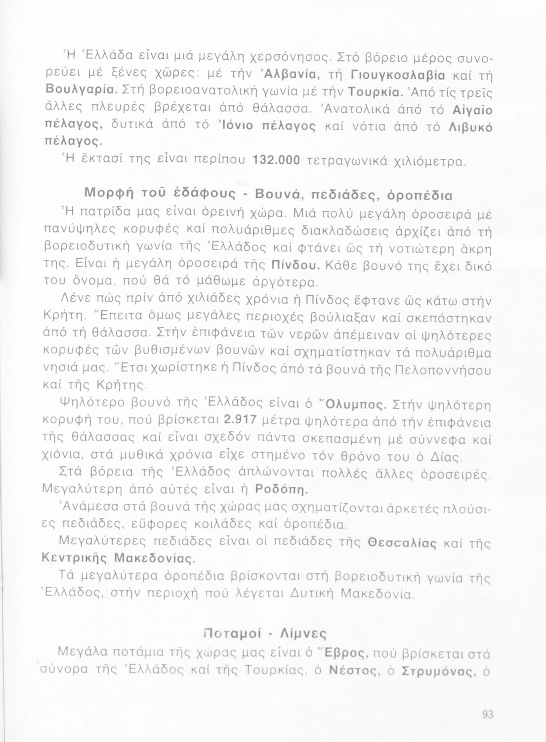 Βαθμίδα εκπαίδευσης: Πρωτοβάθμια Τάξη: Γ' Δημοτικού / Δ' Δημοτικού Μάθημα: Γεωγραφία Γλώσσα: Δημοτική Παρουσίαση περιεχομένου: Σχολικό εγχειρίδιο Γεωγραφίας Γ ΄ και Δ' Δημοτικού. Το πρώτο μέρος του βιβλίου απευθύνεται σε μαθητές της Γ' Δημοτικού και αποτελεί μια εισαγωγή στην έννοια της πατριδογνωσίας μέσα από τις παραδόσεις της ελληνικής επαρχίας. Το δεύτερο μέρος αφορά τη Δ' Δημοτικού και εξετάζει την οικονομική, πολιτική και γεωφυσική γεωγραφία της Ελλάδας. |