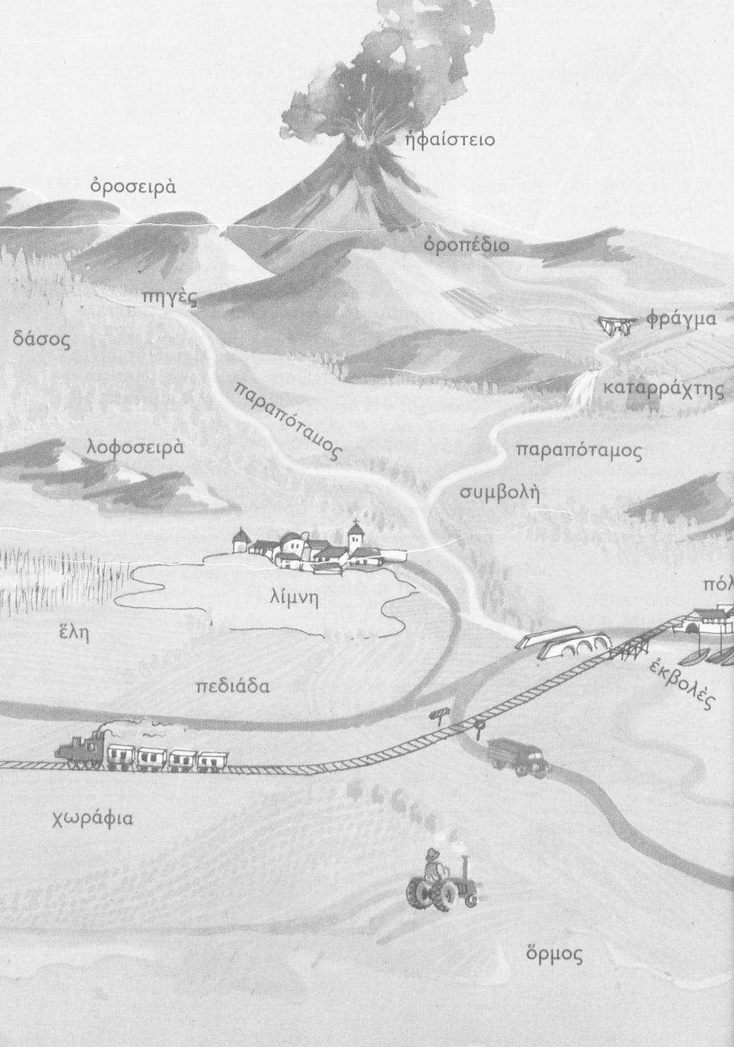 Σχολικό εγχειρίδιο Γεωγραφίας Γ ΄ και Δ' Δημοτικού. Το πρώτο μέρος του βιβλίου απευθύνεται σε μαθητές της Γ' Δημοτικού και αποτελεί μια εισαγωγή στην έννοια της πατριδογνωσίας μέσα από τις παραδόσεις της ελληνικής επαρχίας. Το δεύτερο μέρος αφορά τη Δ' Δημοτικού και εξετάζει την οικονομική, πολιτική και γεωφυσική γεωγραφία της Ελλάδας.