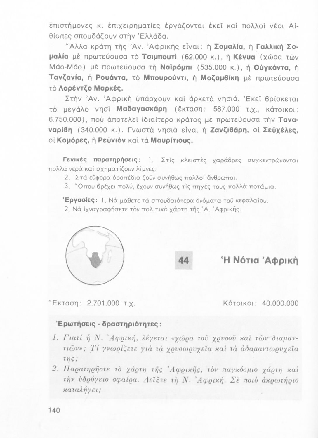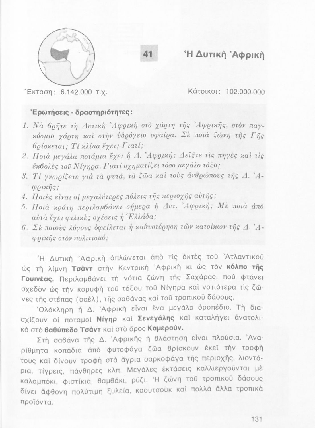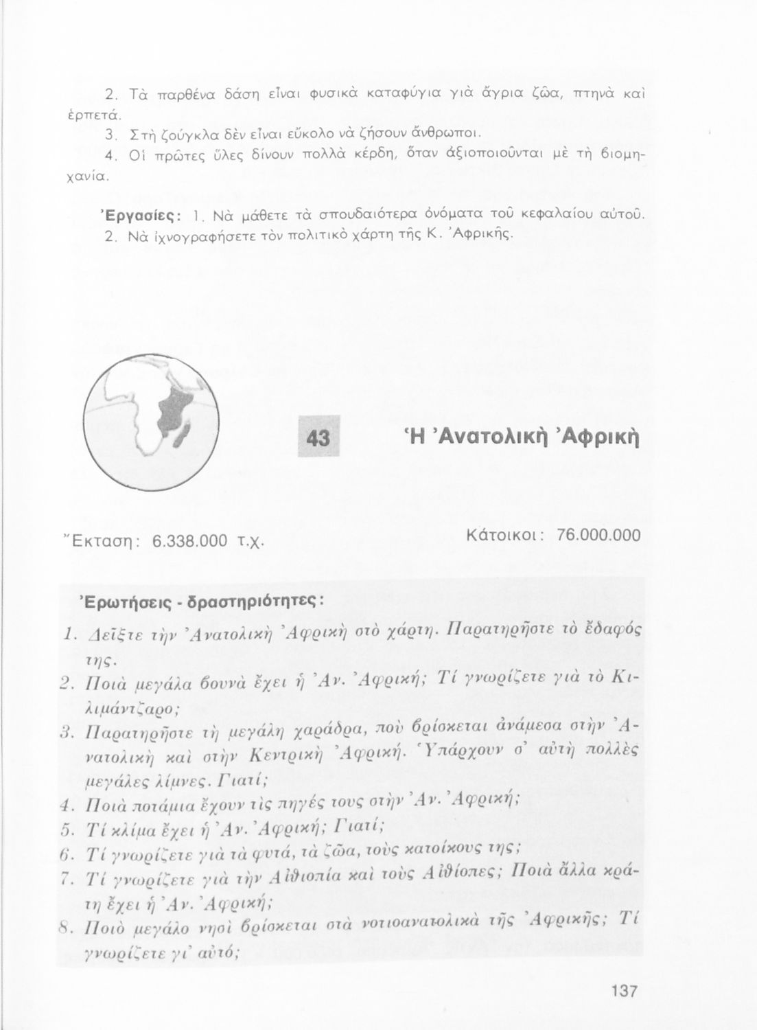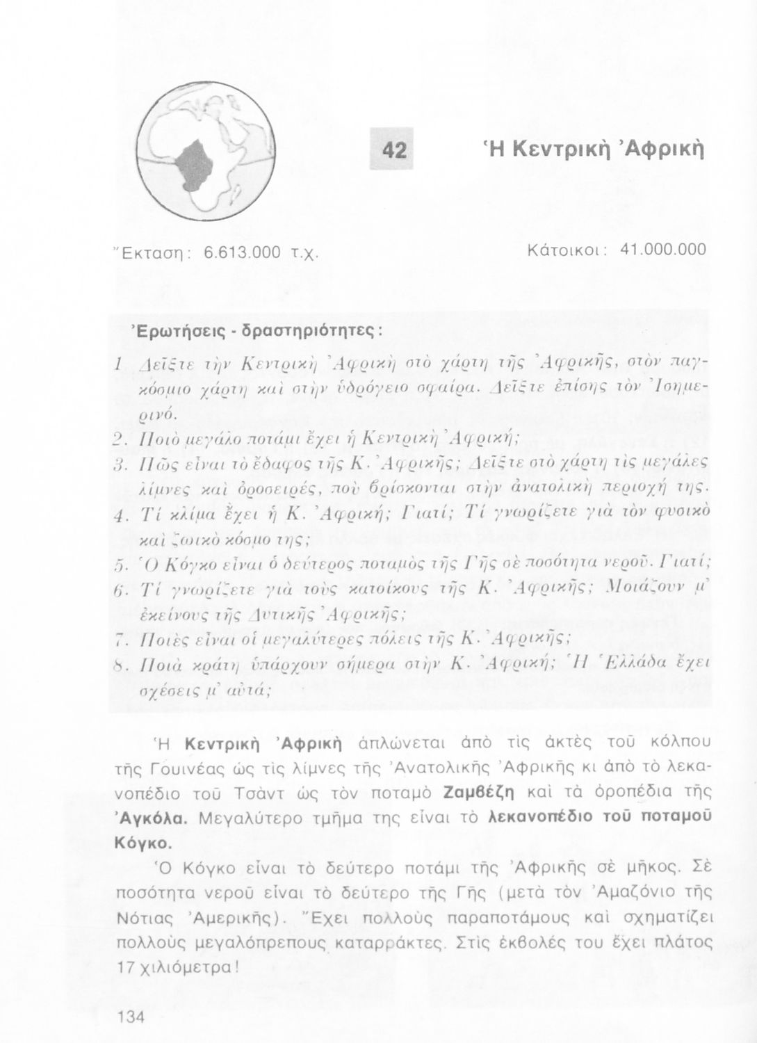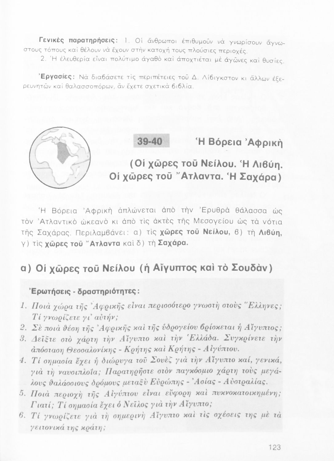 Σχολικό εγχειρίδιο Γεωγραφίας Ε΄ Δημοτικού που περιλαμβάνει εισαγωγή στη φυσική γεωγραφία εξετάζει την Ελλάδα και ενδεικτικές χώρες και περιοχές από τις πέντε ηπείρους, εκτός της Ευρώπης, από γεωφυσική και πολιτική άποψη.