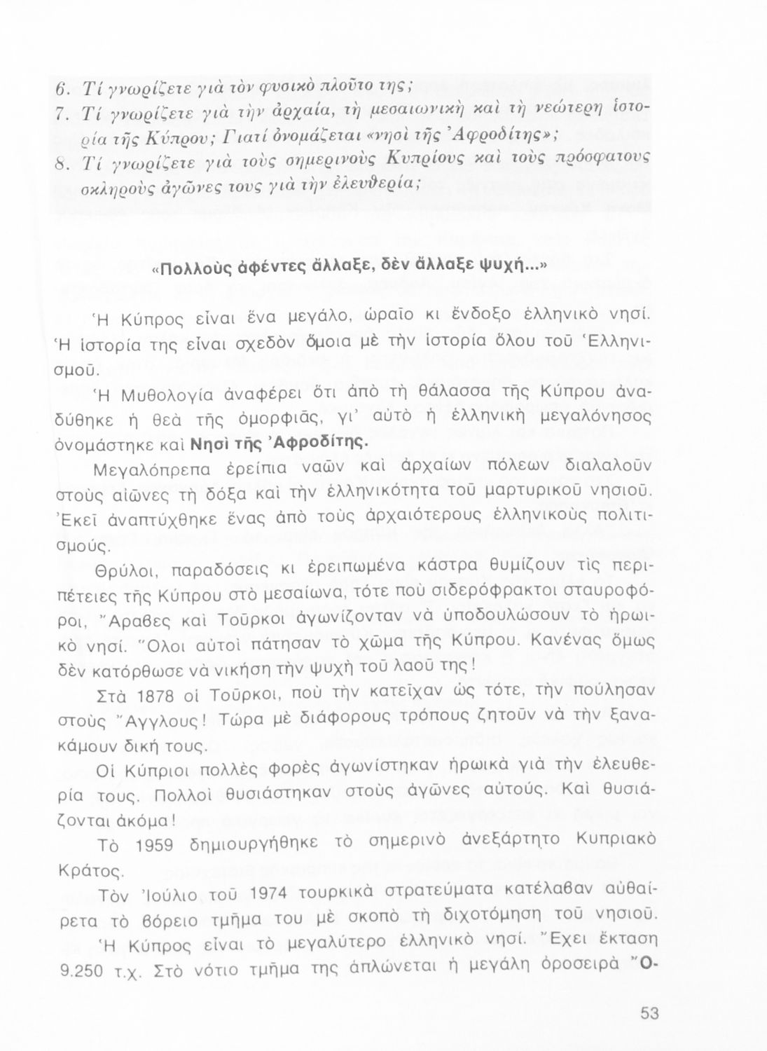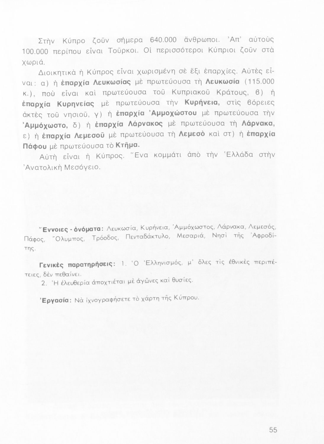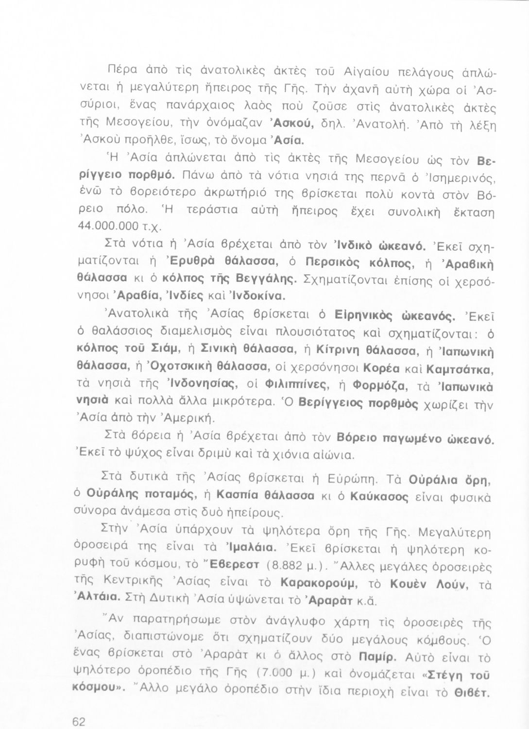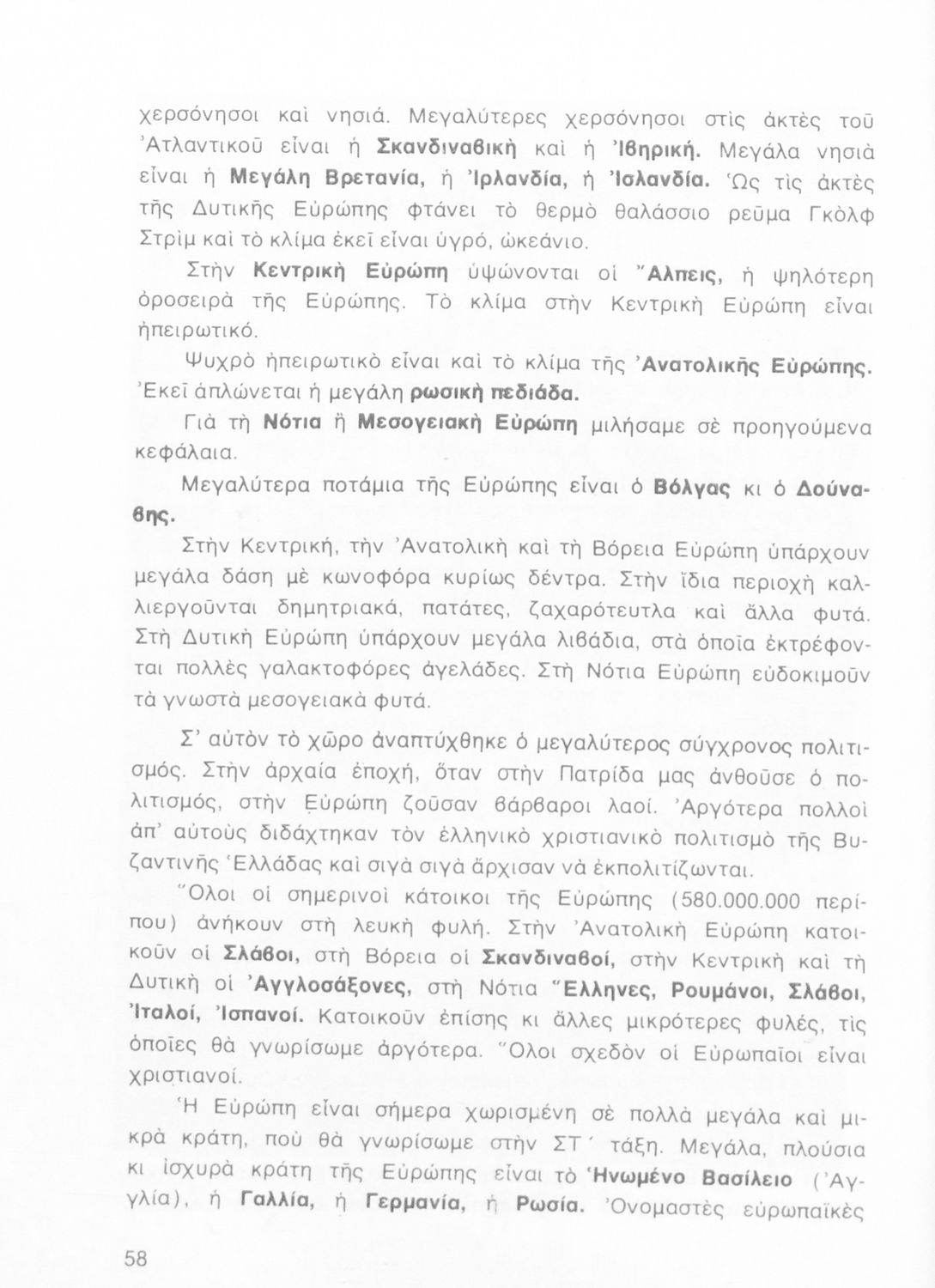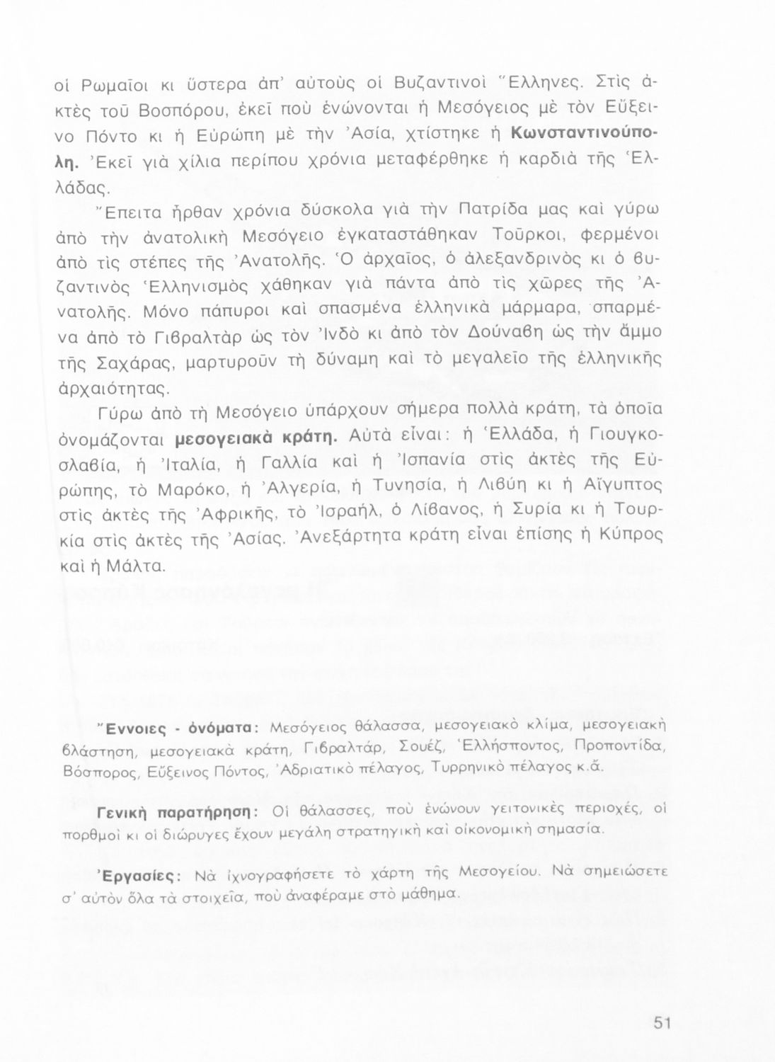 Σχολικό εγχειρίδιο Γεωγραφίας Ε΄ Δημοτικού που περιλαμβάνει εισαγωγή στη φυσική γεωγραφία εξετάζει την Ελλάδα και ενδεικτικές χώρες και περιοχές από τις πέντε ηπείρους, εκτός της Ευρώπης, από γεωφυσική και πολιτική άποψη.