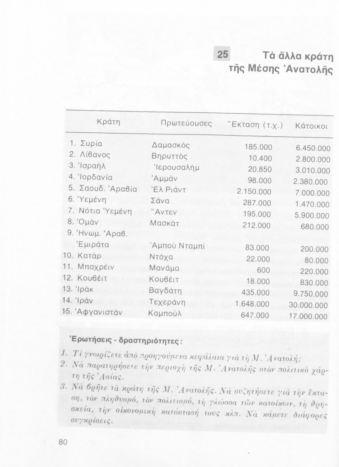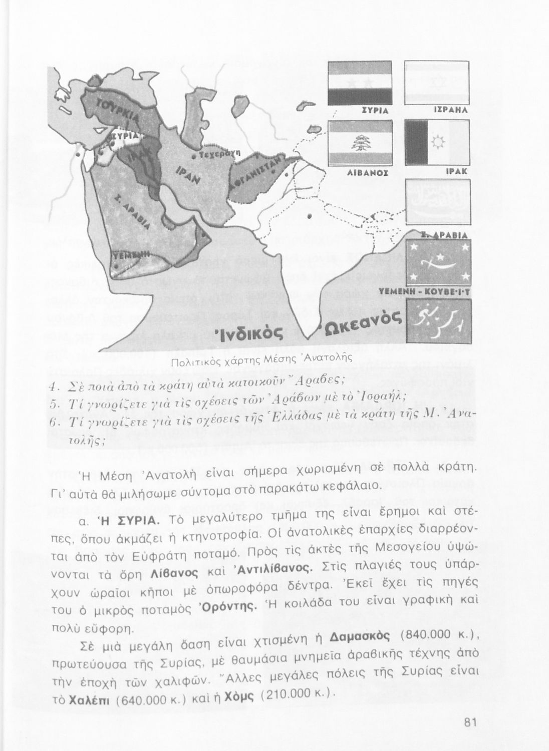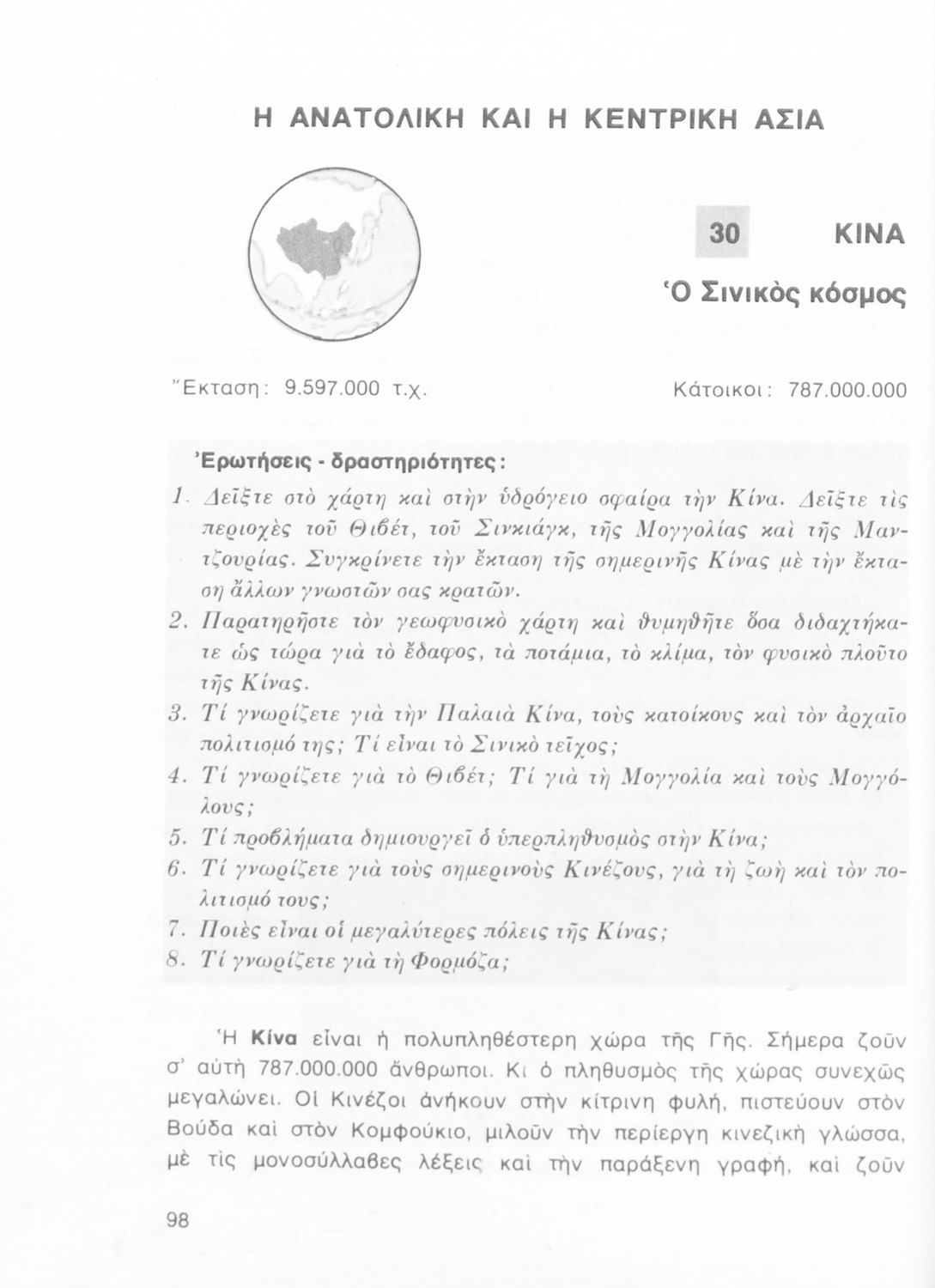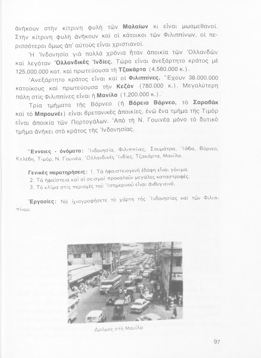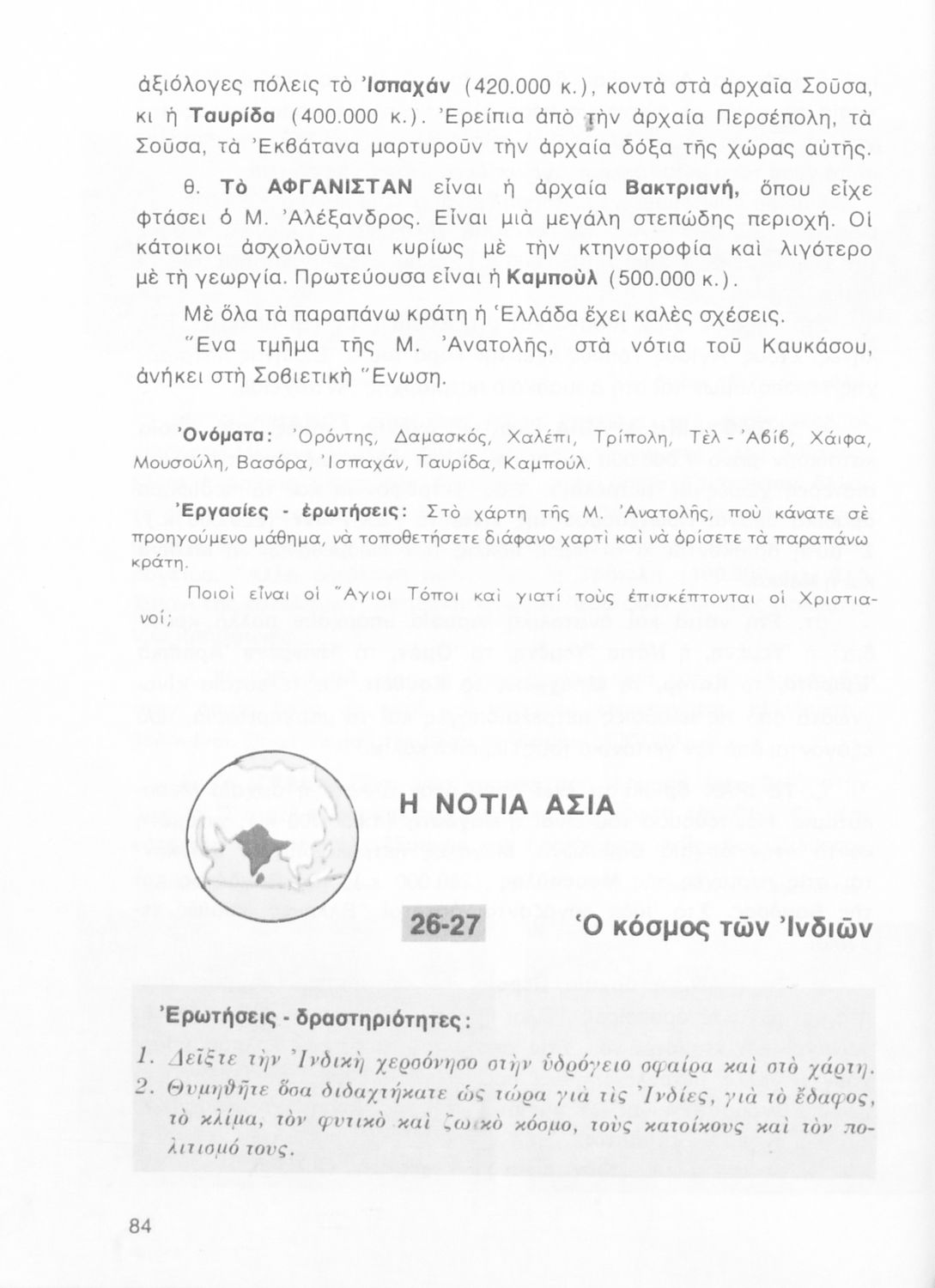 Σχολικό εγχειρίδιο Γεωγραφίας Ε΄ Δημοτικού που περιλαμβάνει εισαγωγή στη φυσική γεωγραφία εξετάζει την Ελλάδα και ενδεικτικές χώρες και περιοχές από τις πέντε ηπείρους, εκτός της Ευρώπης, από γεωφυσική και πολιτική άποψη.