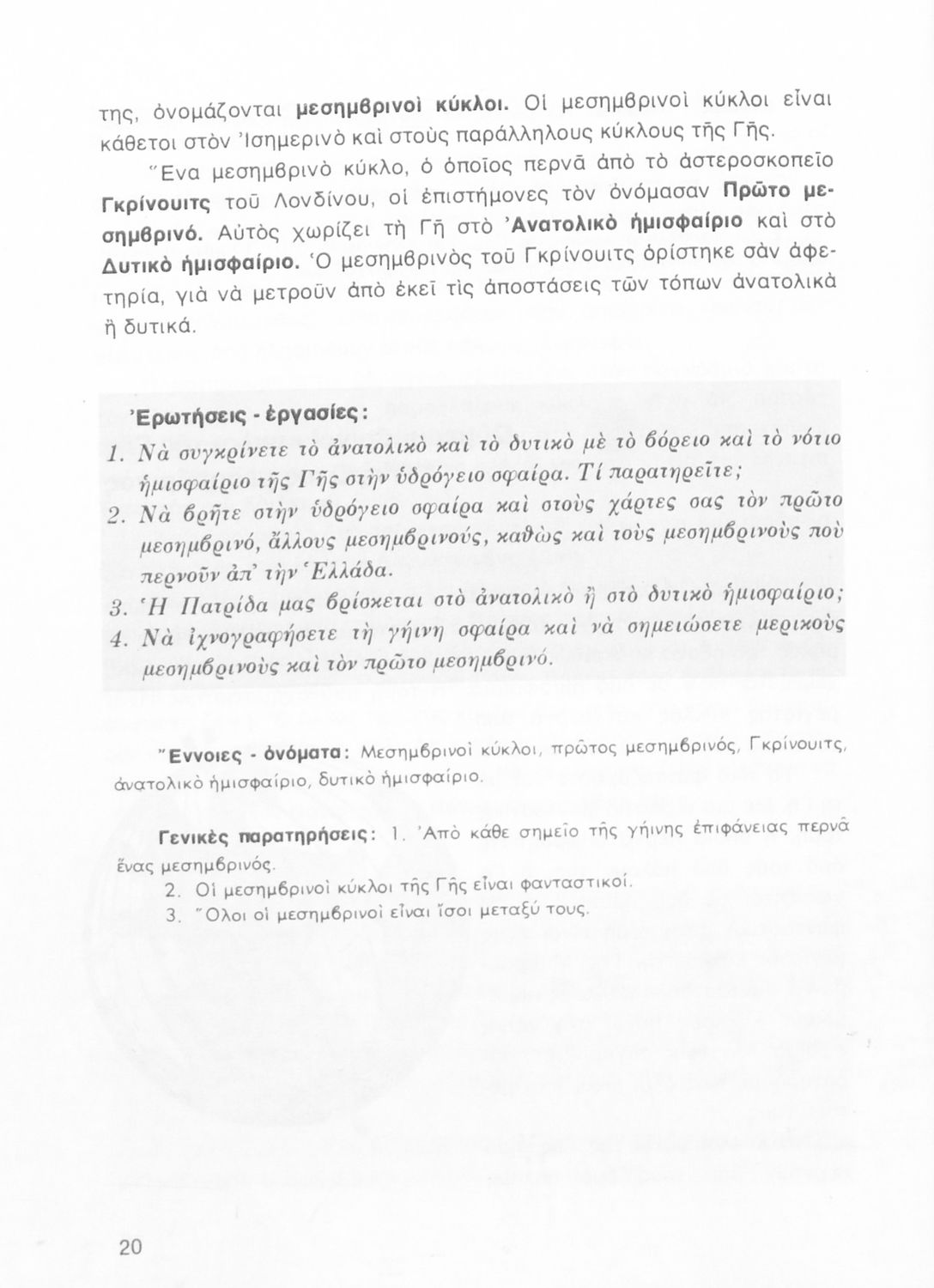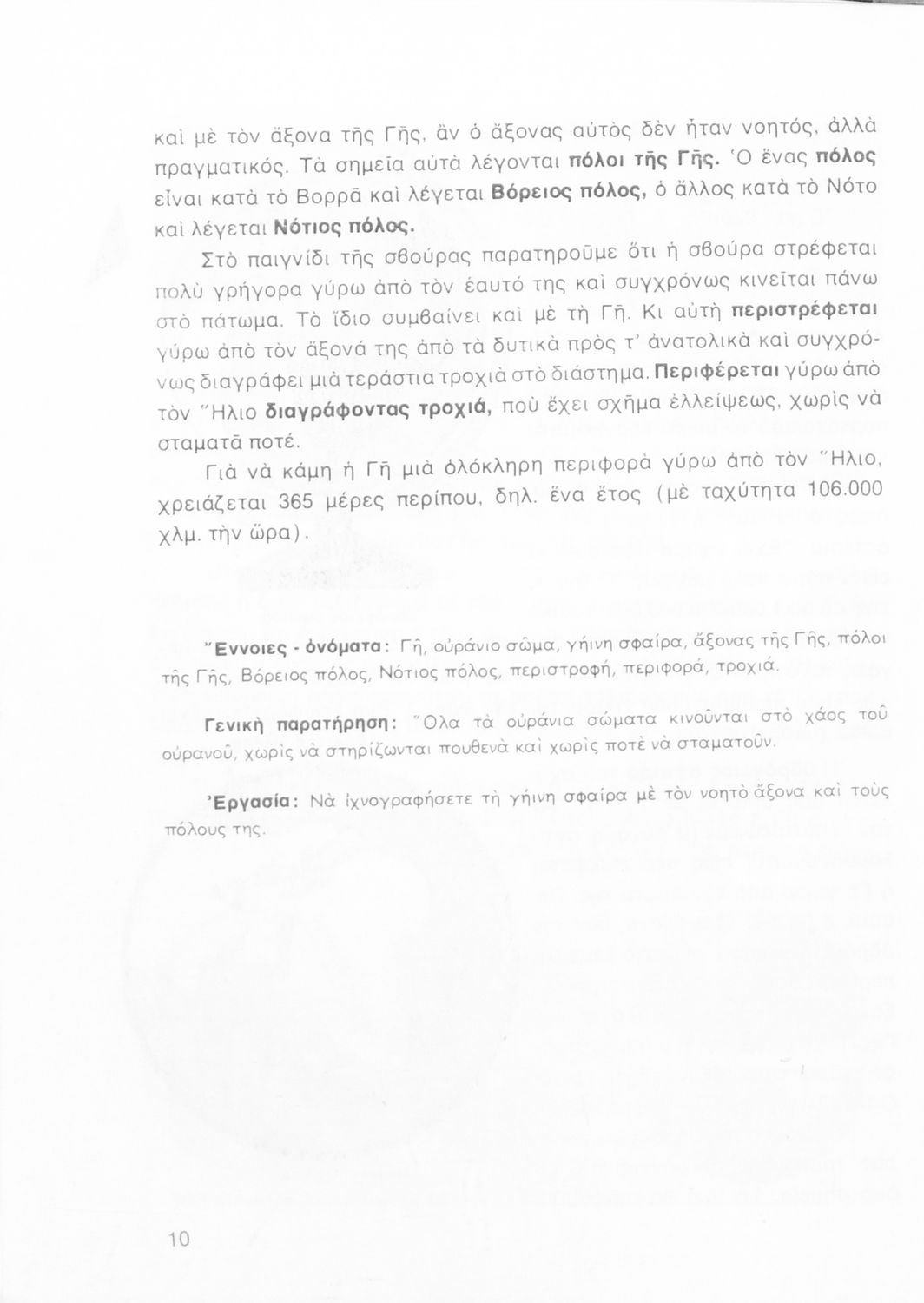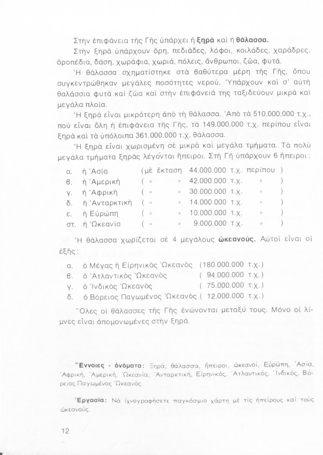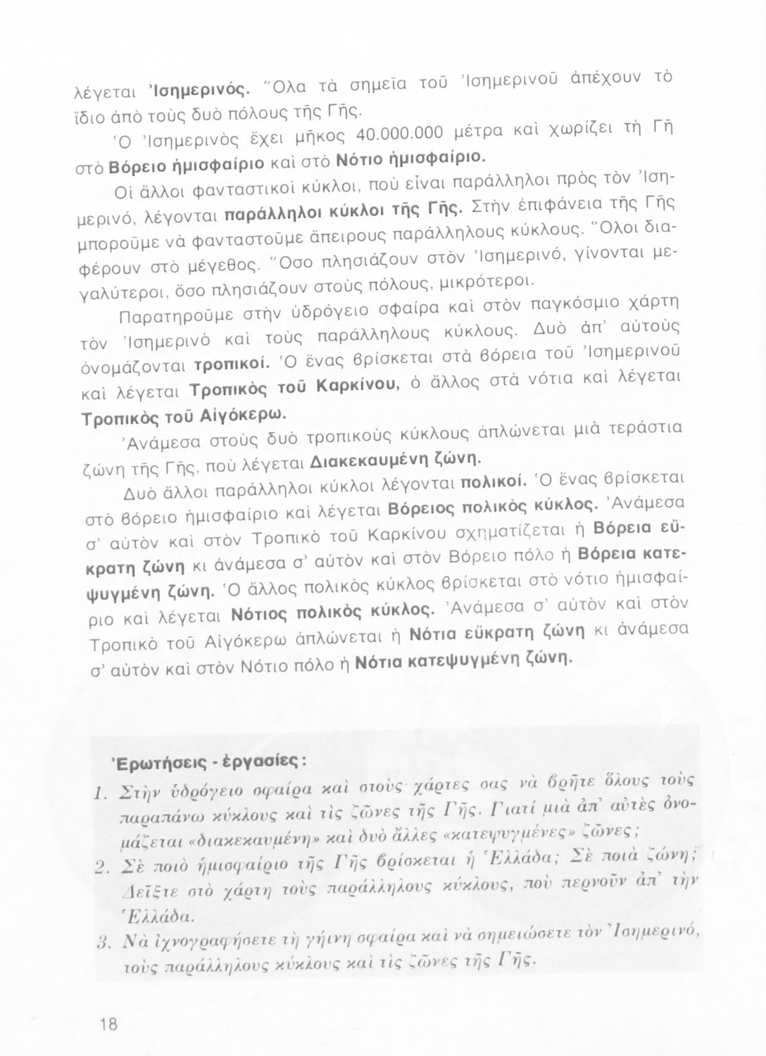 Σχολικό εγχειρίδιο Γεωγραφίας Ε΄ Δημοτικού που περιλαμβάνει εισαγωγή στη φυσική γεωγραφία εξετάζει την Ελλάδα και ενδεικτικές χώρες και περιοχές από τις πέντε ηπείρους, εκτός της Ευρώπης, από γεωφυσική και πολιτική άποψη.