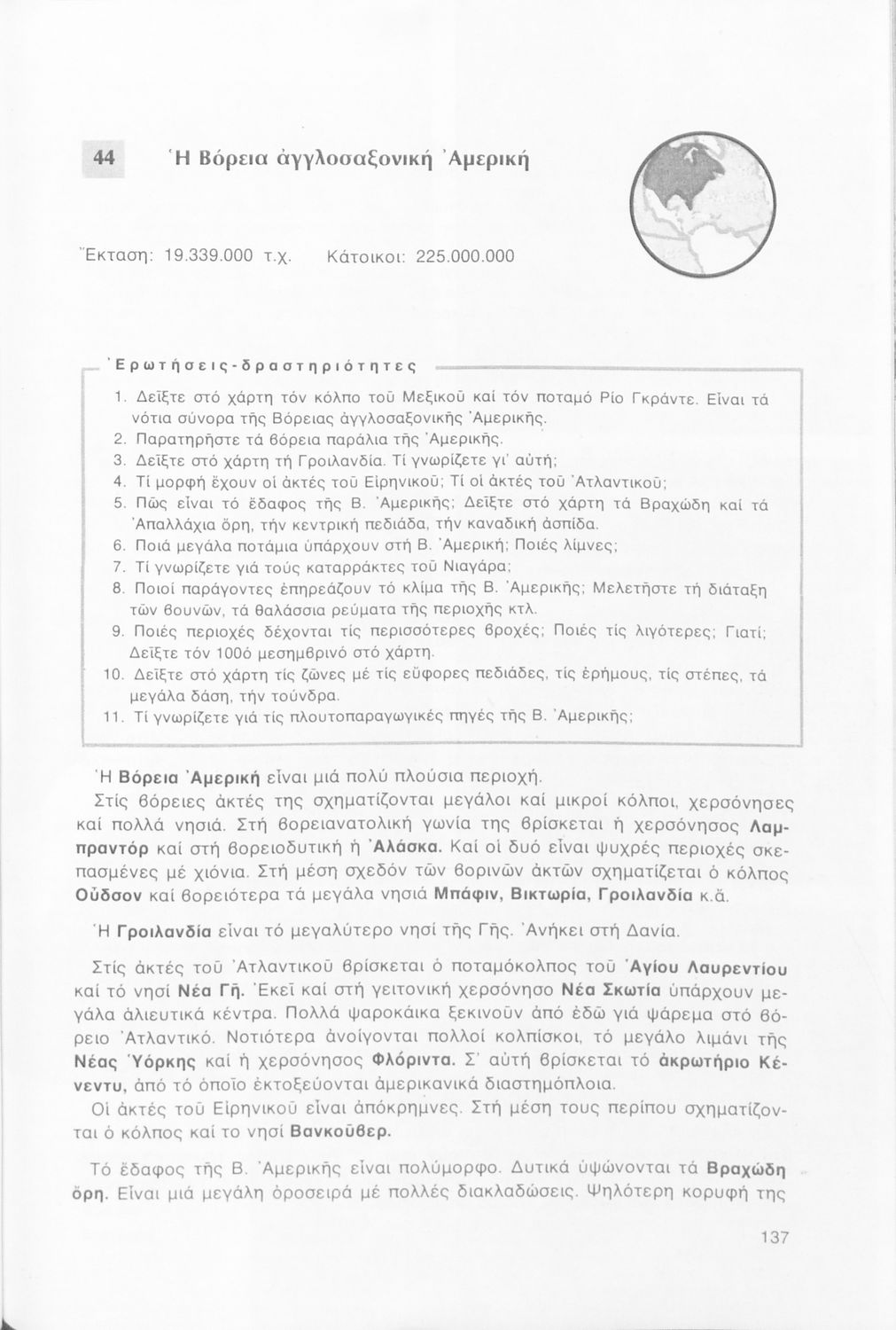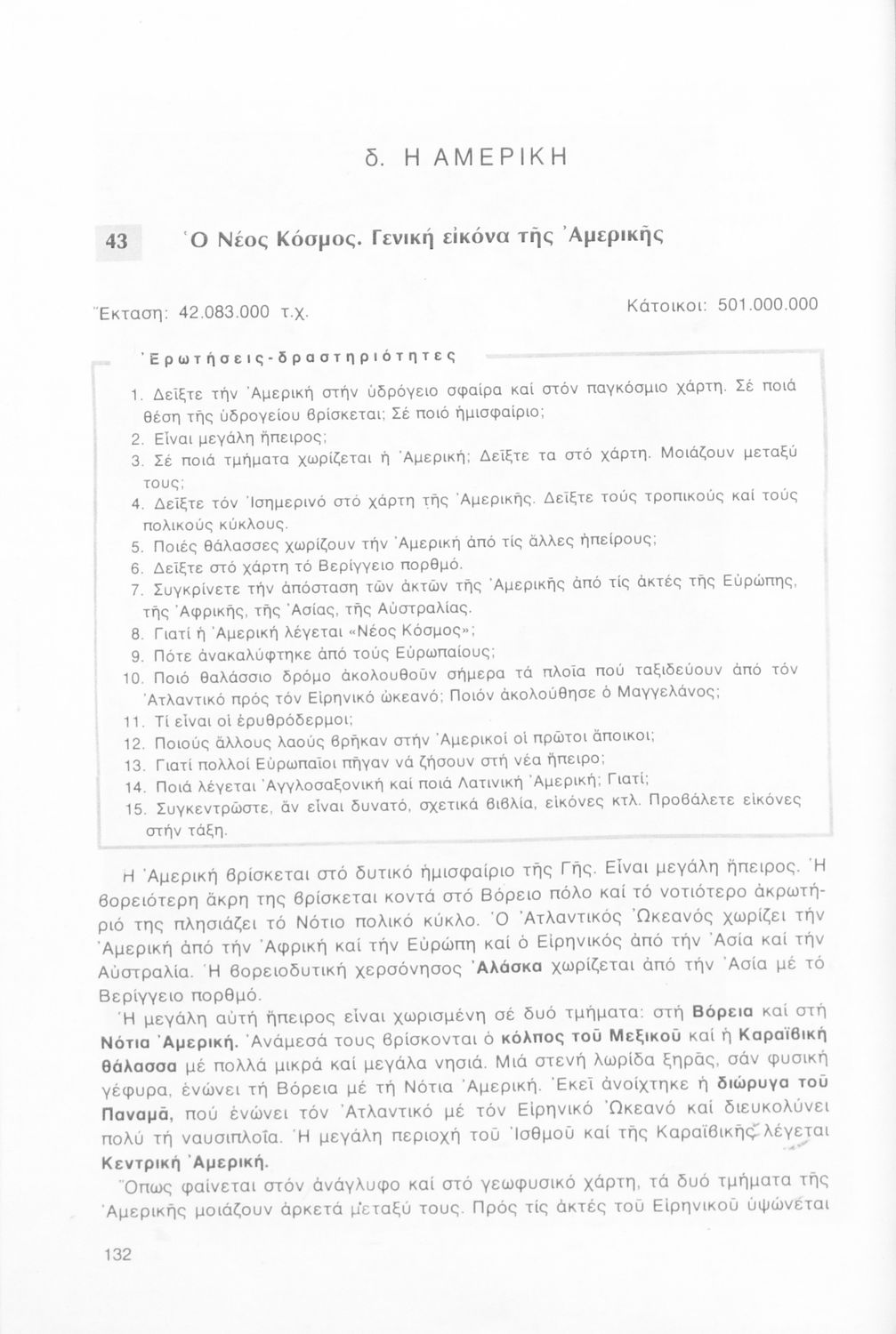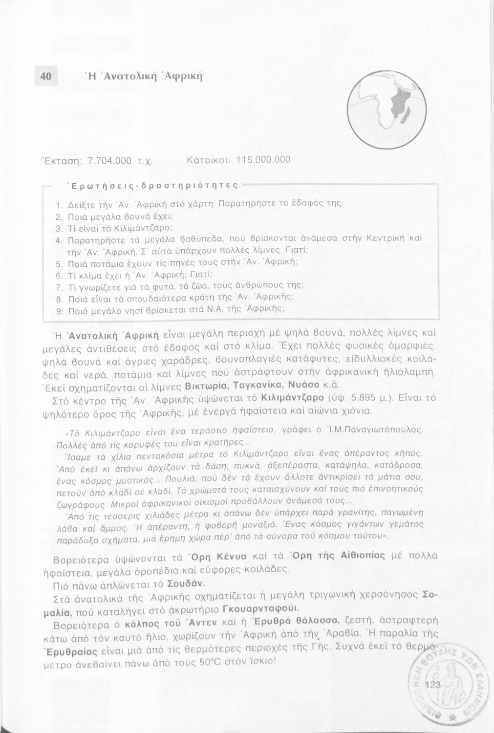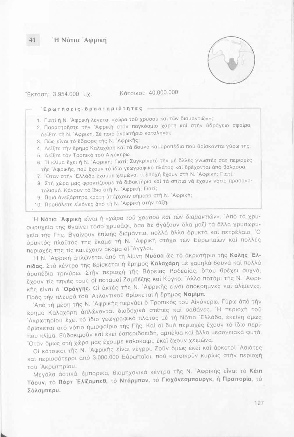 520 ## _aΣχολικό εγχειρίδιο Γεωγραφίας ΣΤ΄ Δημοτικού που περιλαμβάνει εισαγωγή στη φυσική, μαθηματική και πολιτική γεωγραφία και εξετάζει την Ελλάδα και ενδεικτικές χώρες και περιοχές από τις πέντε ηπείρους, εκτός της Ευρώπης, από γεωφυσική και πολιτική άποψη. Περιέχει και στοιχεία ανθρωπογεωγραφίας.