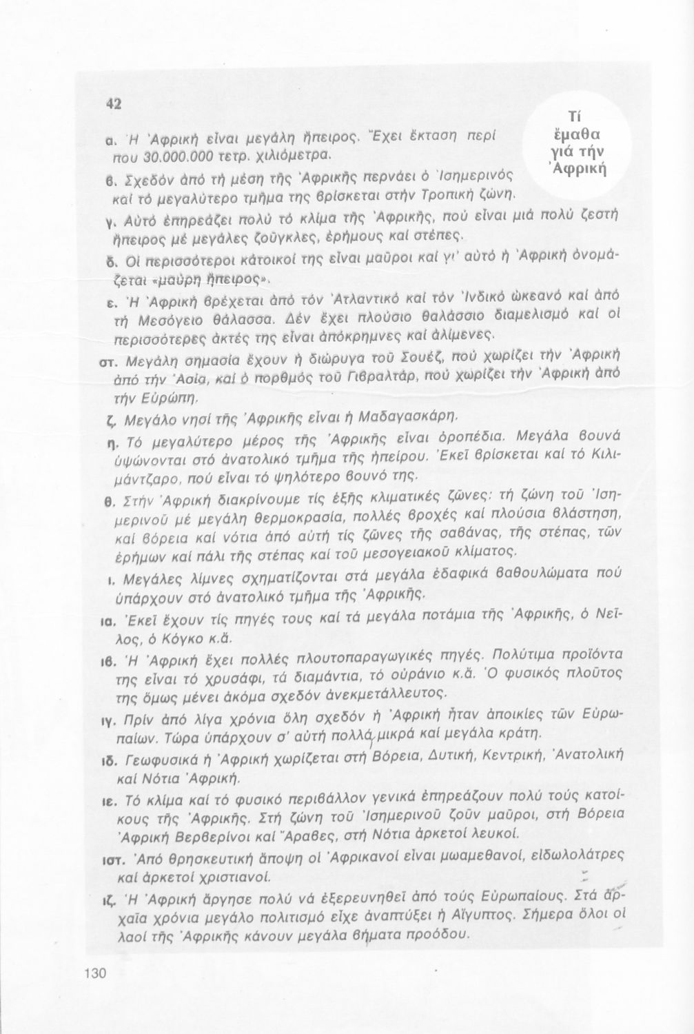 Σχολικό εγχειρίδιο Γεωγραφίας ΣΤ΄ Δημοτικού που περιλαμβάνει εισαγωγή στη φυσική, μαθηματική και πολιτική γεωγραφία και εξετάζει την Ελλάδα και ενδεικτικές χώρες και περιοχές από τις πέντε ηπείρους, εκτός της Ευρώπης, από γεωφυσική και πολιτική άποψη. Περιέχει και στοιχεία ανθρωπογεωγραφίας.