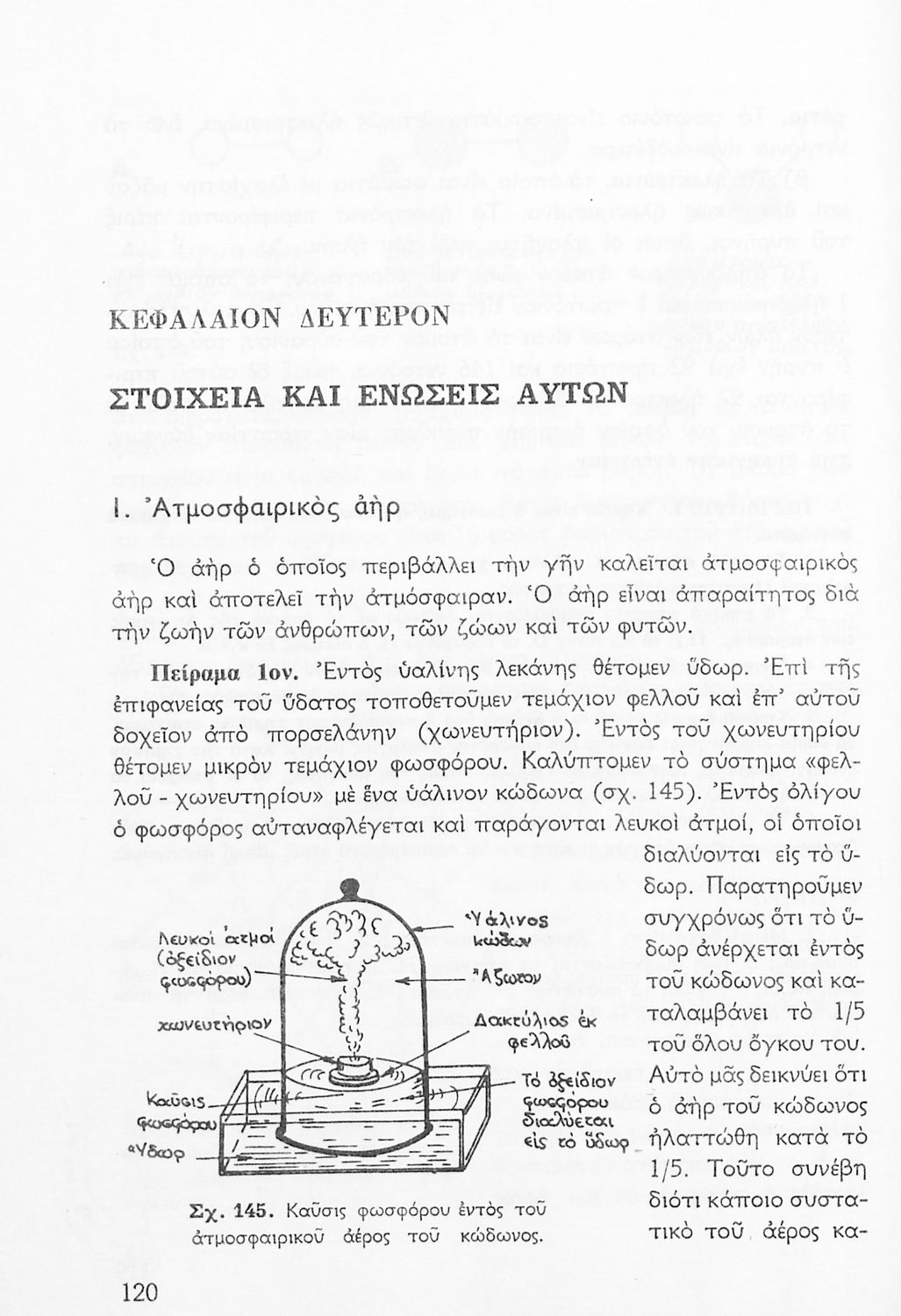 Σχολικό εγχειρίδιο Φυσικής και Χημείας της Ε' Δημοτικού. Το βιβλίο ξεκινά με μια γενική επισκόπηση στις ιδιότητες της ύλης όπως τα μόρια και τα άτομα. Στη συνέχεια χωρίζεται σε κεφάλαια που αναλύουν θεματικές όπως η θερμότητα, η μηχανική, η υδροστατική και η αεροστατική. Στα κεφάλαια αυτά αναλύονται ο ρόλος της θερμότητας και η επίδραση που έχει στη δομή των σωμάτων, η βαρύτητα και τα στοιχεία ισορροπίας καθώς και ζητήματα ατμοσφαιρικής πίεσης. Στην ενότητα της χημείας γίνεται παρουσίαση των χημικών στοιχείων και των χημικών ενώσεων και γίνεται αναφορά στην ατομική θεωρία.