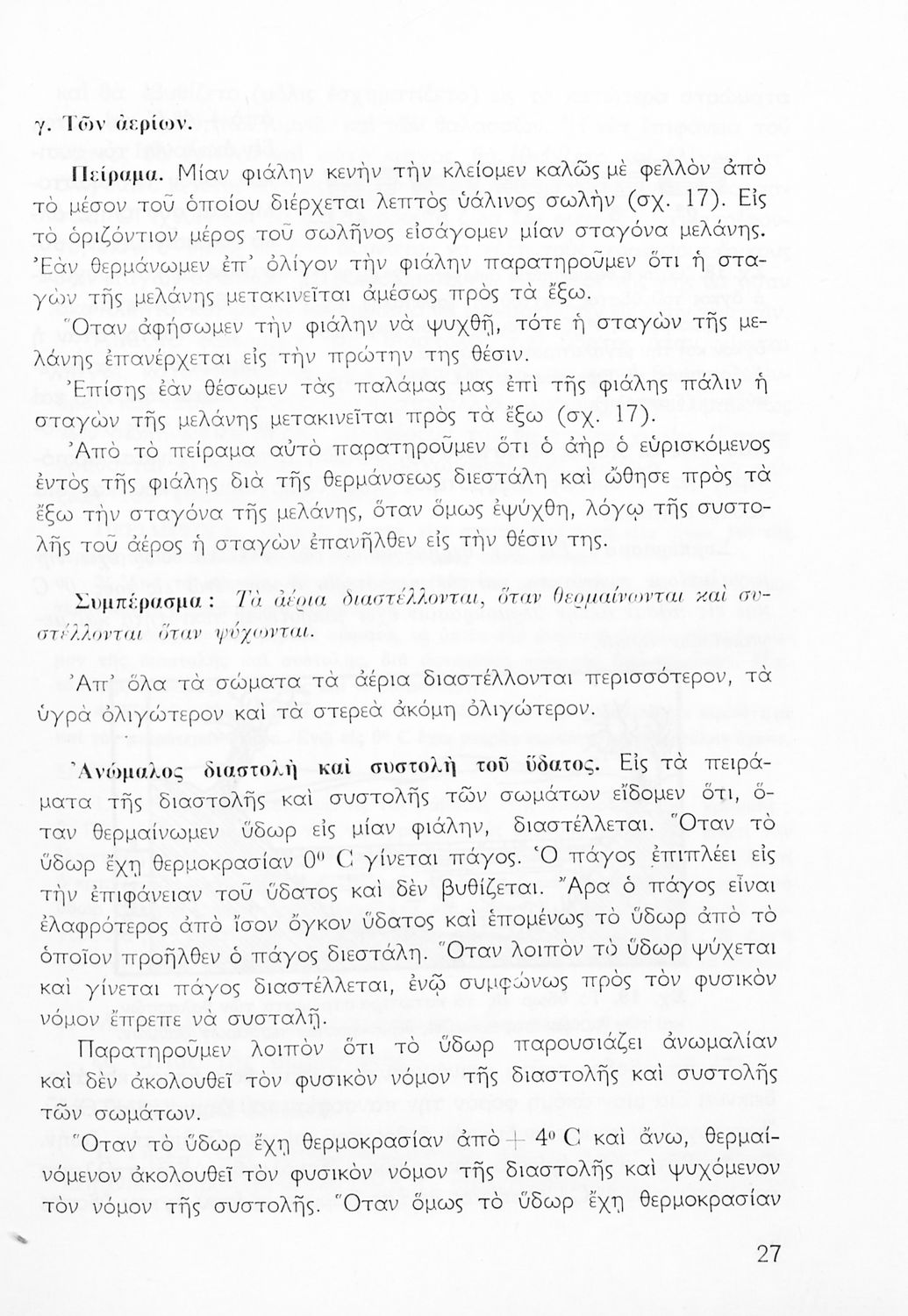 Το σύγγραμμα ήταν μαθητικό βοήθημα για το μάθημα της Φυσικής στο Δημοτικό . Παρέχει βασικές γνώσεις της φυσικής επιστήμης και της χημείας. Αναλύει τις ιδιότητες των σωμάτων, καθώς και της οπτικής, ακουστικής, ...