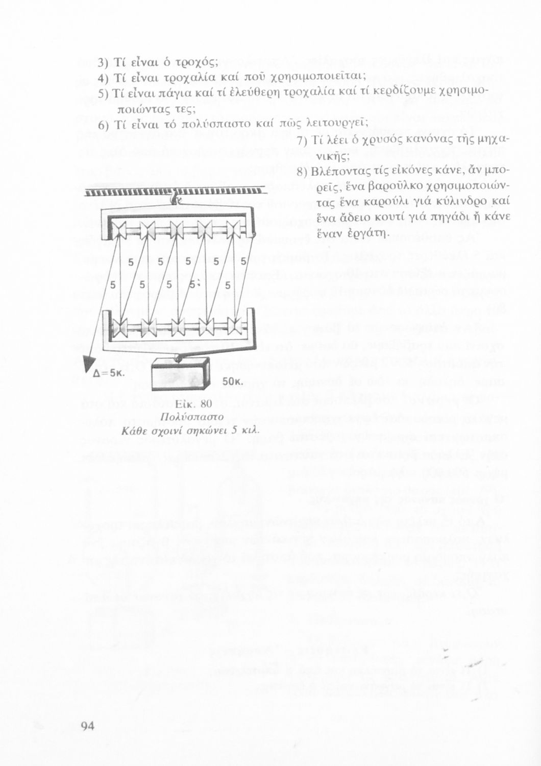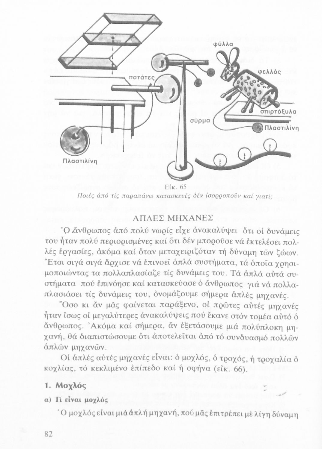 Σχολικό εγχειρίδιο Φυσικής και Χημείας της Ε' Δημοτικού. Το βιβλίο ξεκινάει με μια γενική εισαγωγή για τις ιδιότητες της ύλης, τα σώματα και τα φυσικά φαινόμενα. Στο βιβλίο αναλύονται οι έννοιες της μηχανικής, της κίνησης των στερεών, υγρών και αερίων σωμάτων χρησιμοποιώντας ως παραδείγματα τεχνολογικές εφαρμογές σε κάθε τομέα, όπως δορυφόροι, υδραυλικές μηχανές και τροχαλίες. Τέλος, το βιβλίο κλείνει με μια εισαγωγή στην επιστήμη της χημείας παρουσιάζοντας βασικά στοιχεία και ενώσεις του πεδίου.