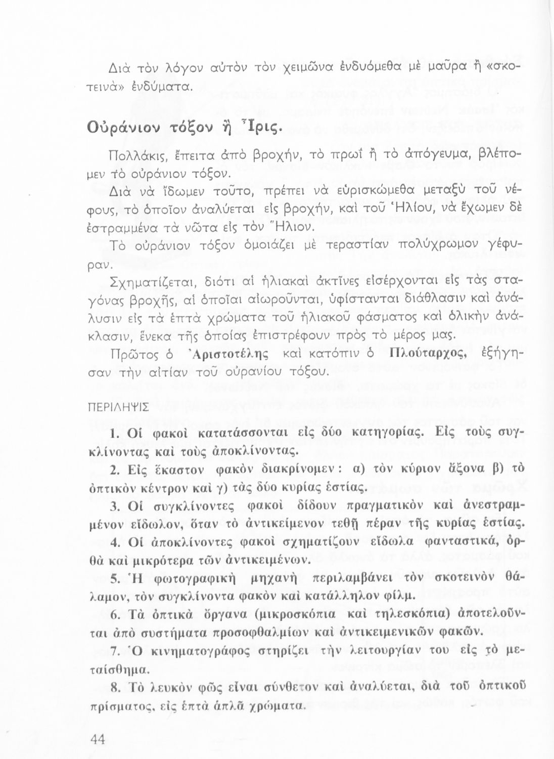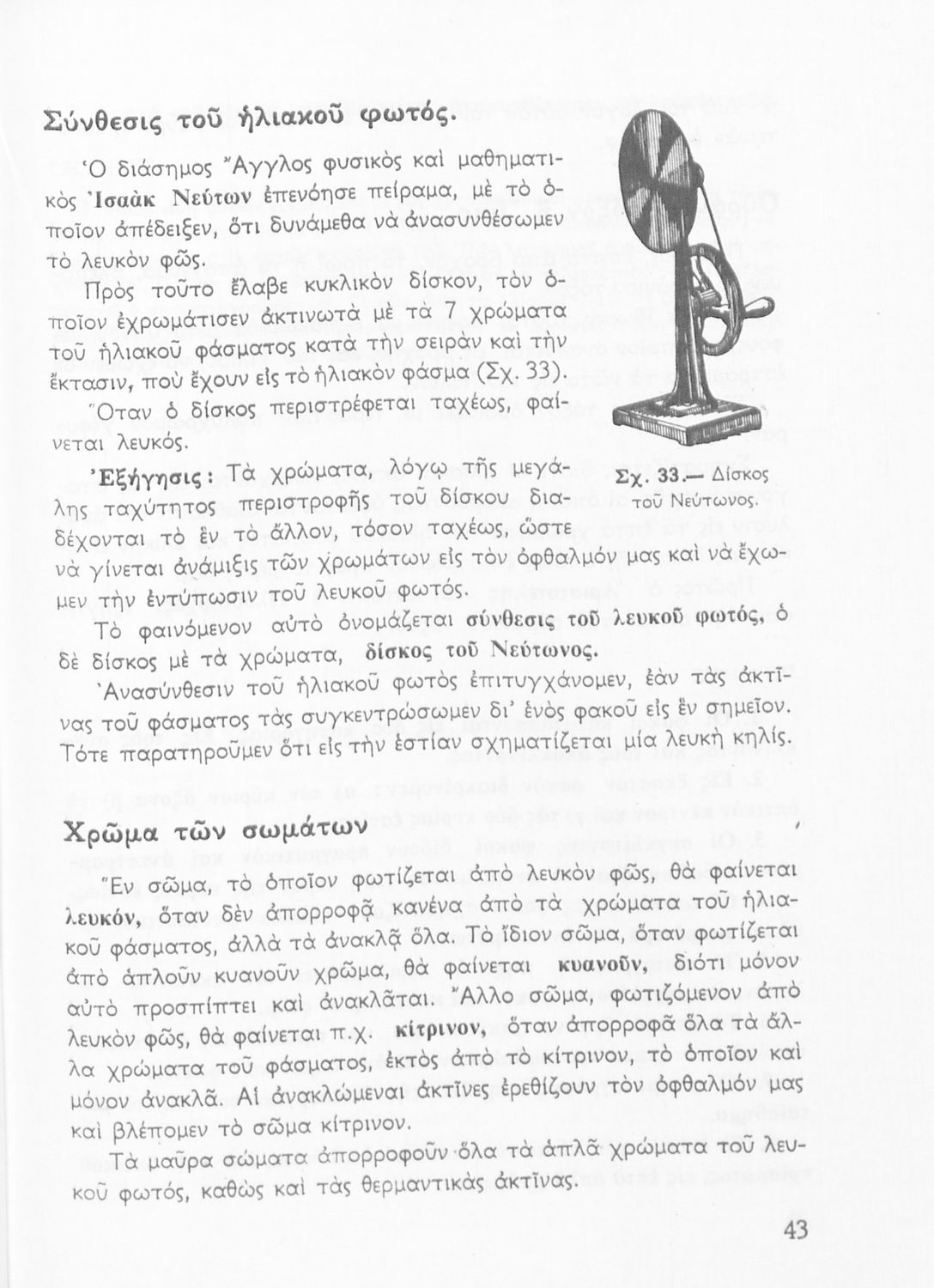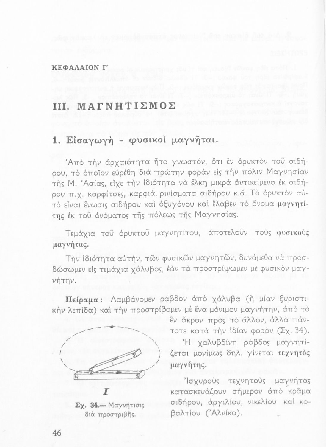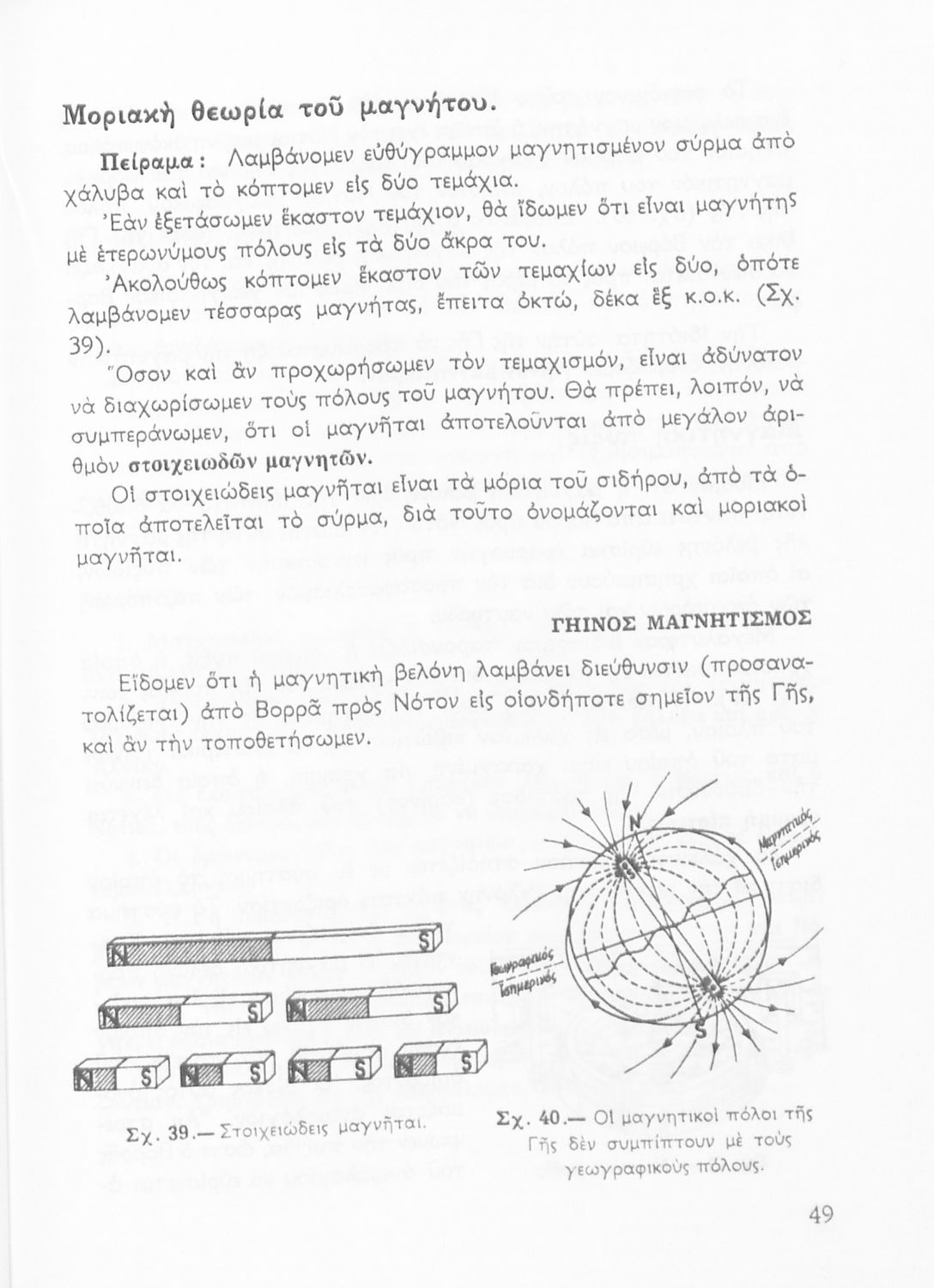Βαθμίδα εκπαίδευσης: Πρωτοβάθμια Τάξη: ΣΤ' Δημοτικού Γλώσσα: Καθαρεύουσα Παρουσίαση περιεχομένου: Σχολικό εγχειρίδιο Φυσικής και Χημείας της ΣΤ΄ Δημοτικού. Περιέχει βασικές αρχές ακουστικής, οπτικής, ηλεκτρομαγνητισμού καθώς και της ατομικής και πυρηνικής ενέργειας. Τέλος, περιλαμβάνει βασικές έννοιες οργανικής και ανόργανης Χημείας. |