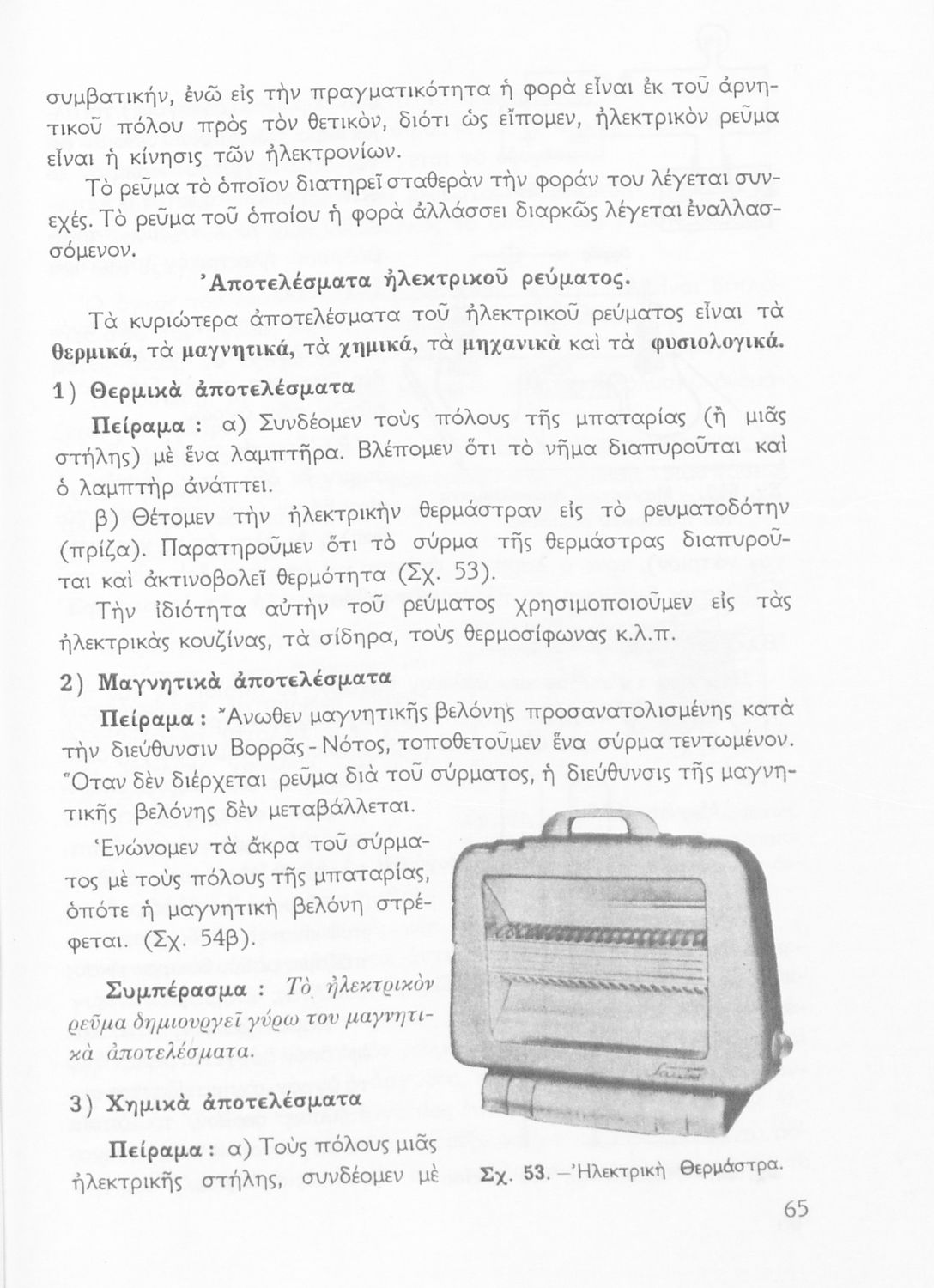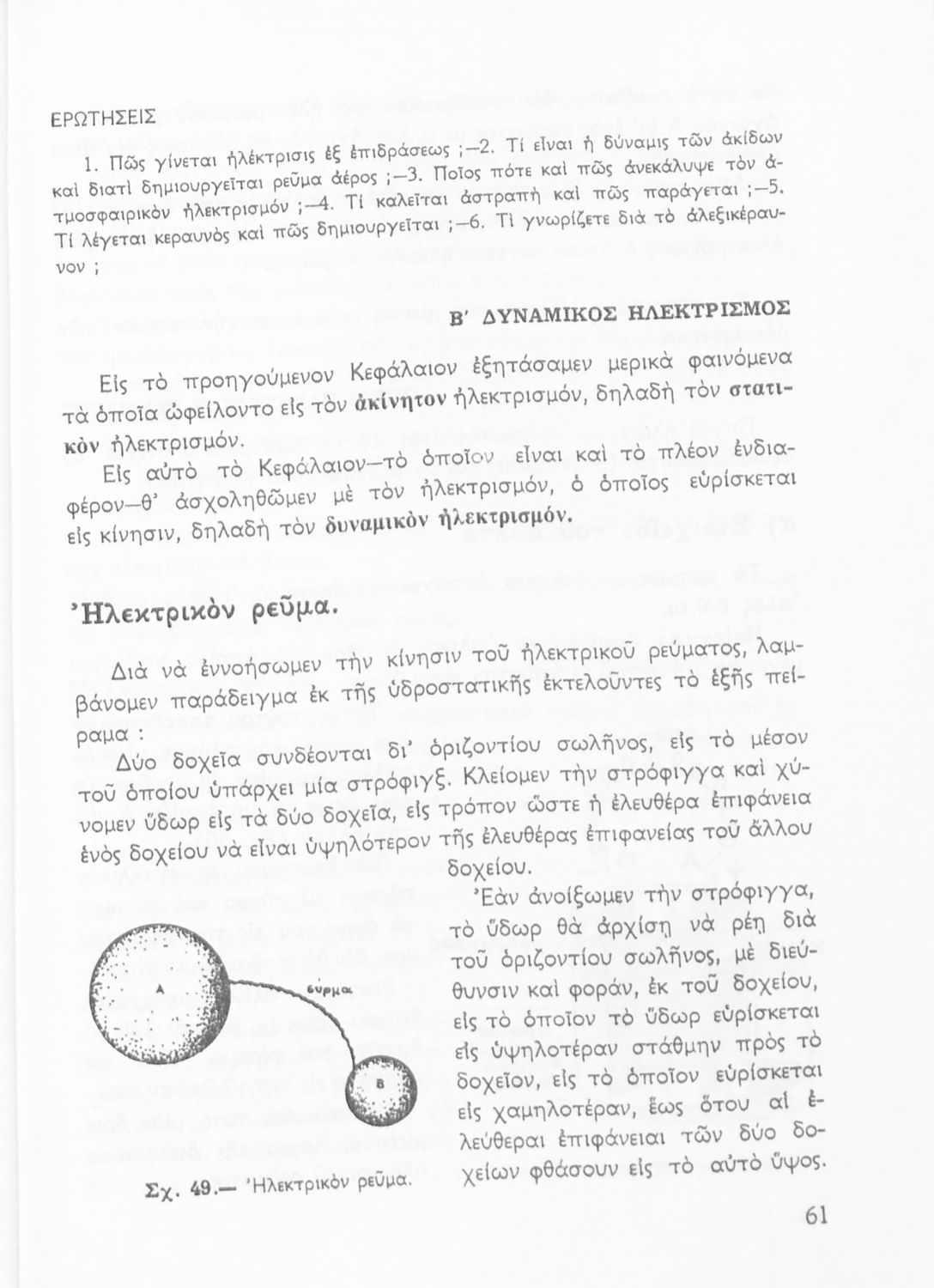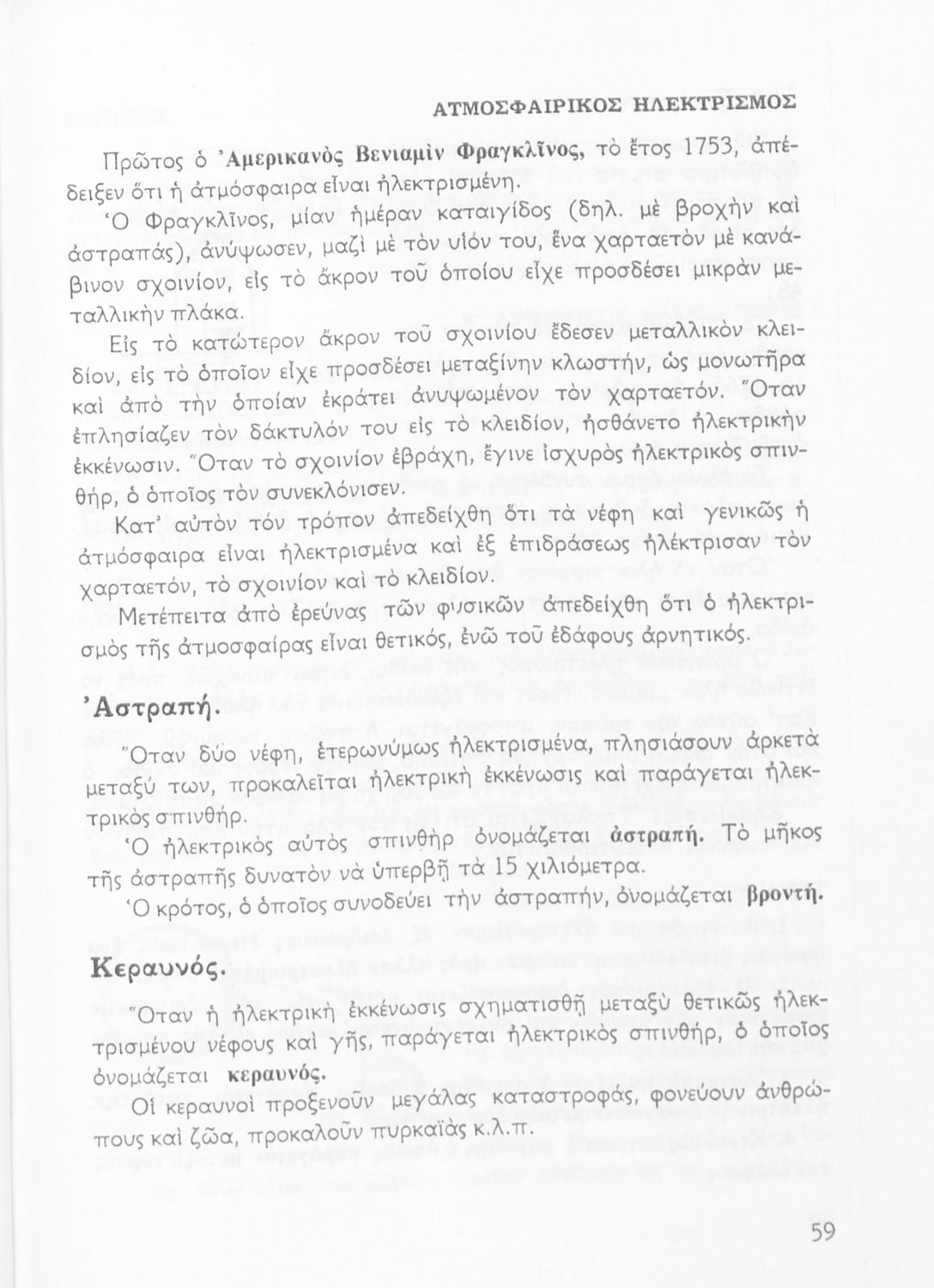 Βαθμίδα εκπαίδευσης: Πρωτοβάθμια Τάξη: ΣΤ' Δημοτικού Γλώσσα: Καθαρεύουσα Παρουσίαση περιεχομένου: Σχολικό εγχειρίδιο Φυσικής και Χημείας της ΣΤ΄ Δημοτικού. Περιέχει βασικές αρχές ακουστικής, οπτικής, ηλεκτρομαγνητισμού καθώς και της ατομικής και πυρηνικής ενέργειας. Τέλος, περιλαμβάνει βασικές έννοιες οργανικής και ανόργανης Χημείας. |