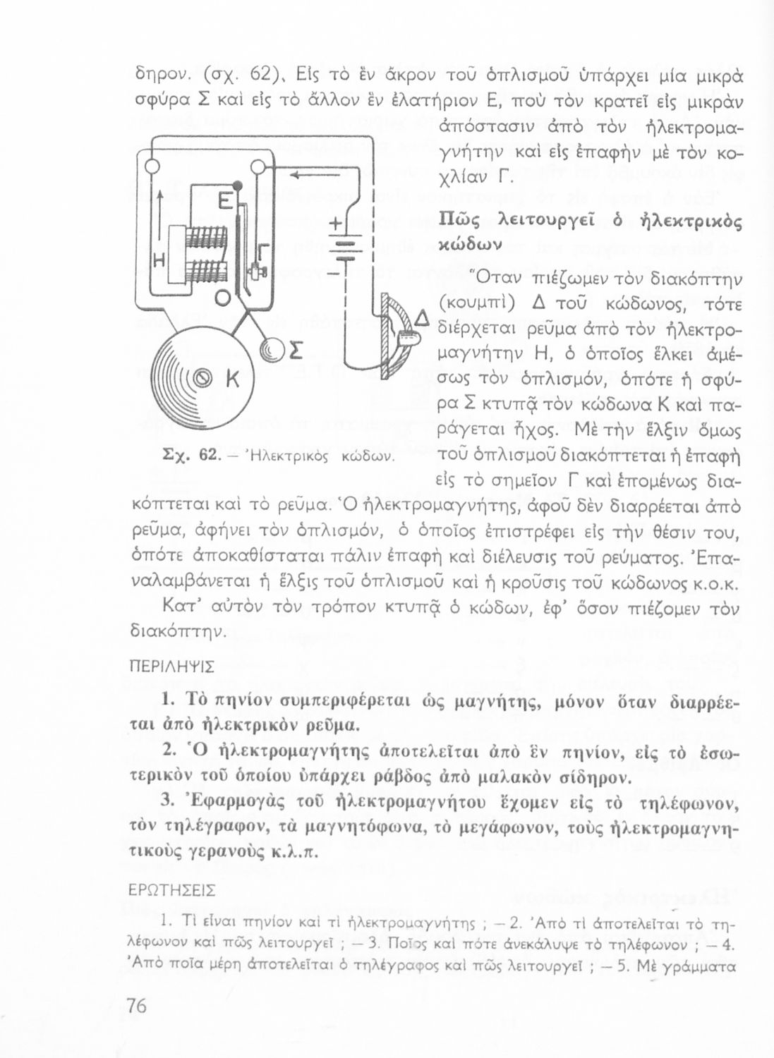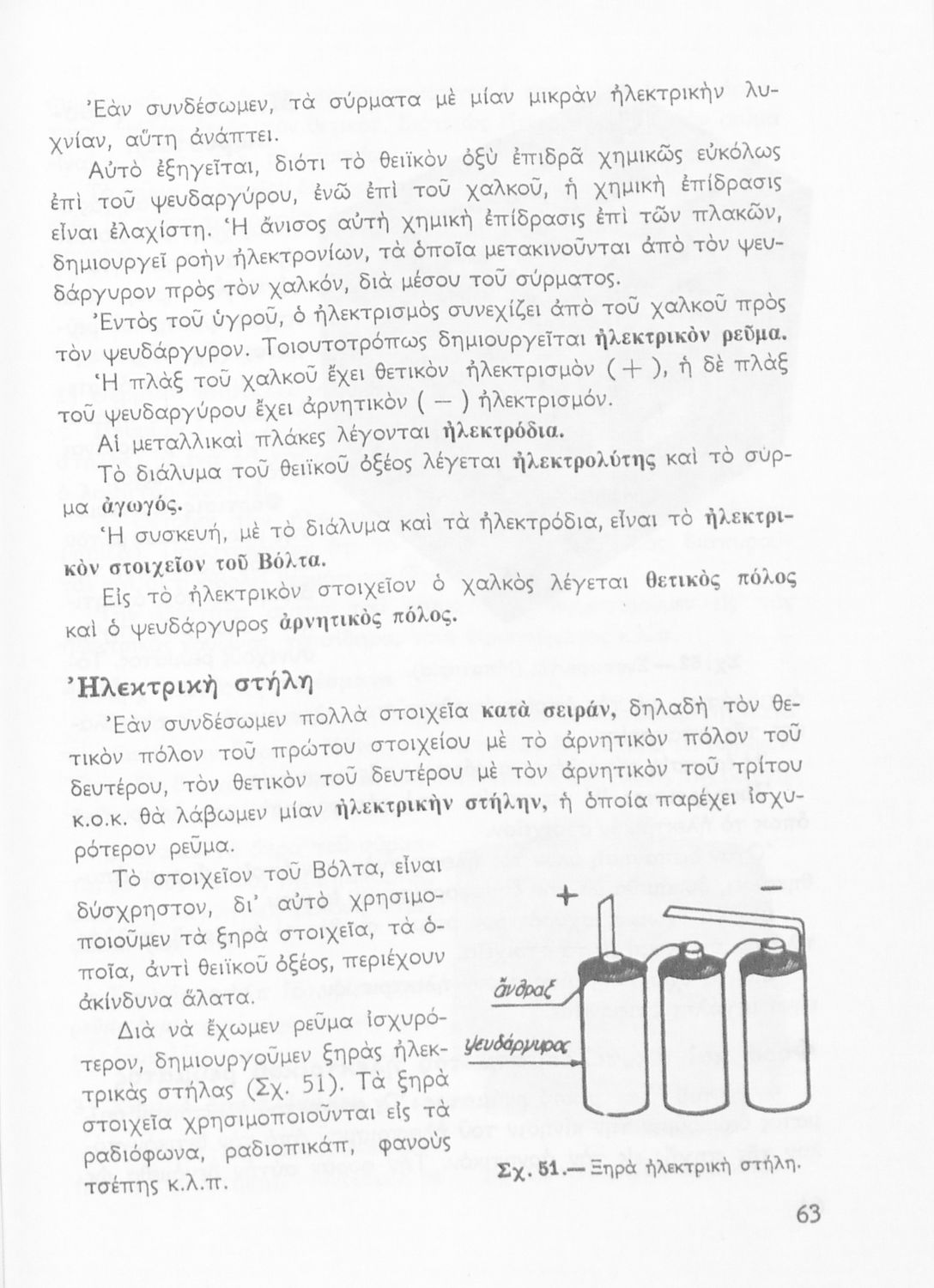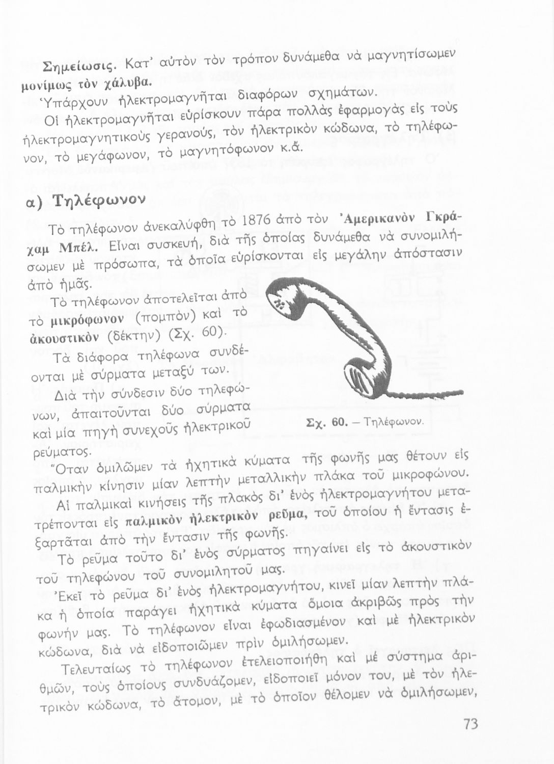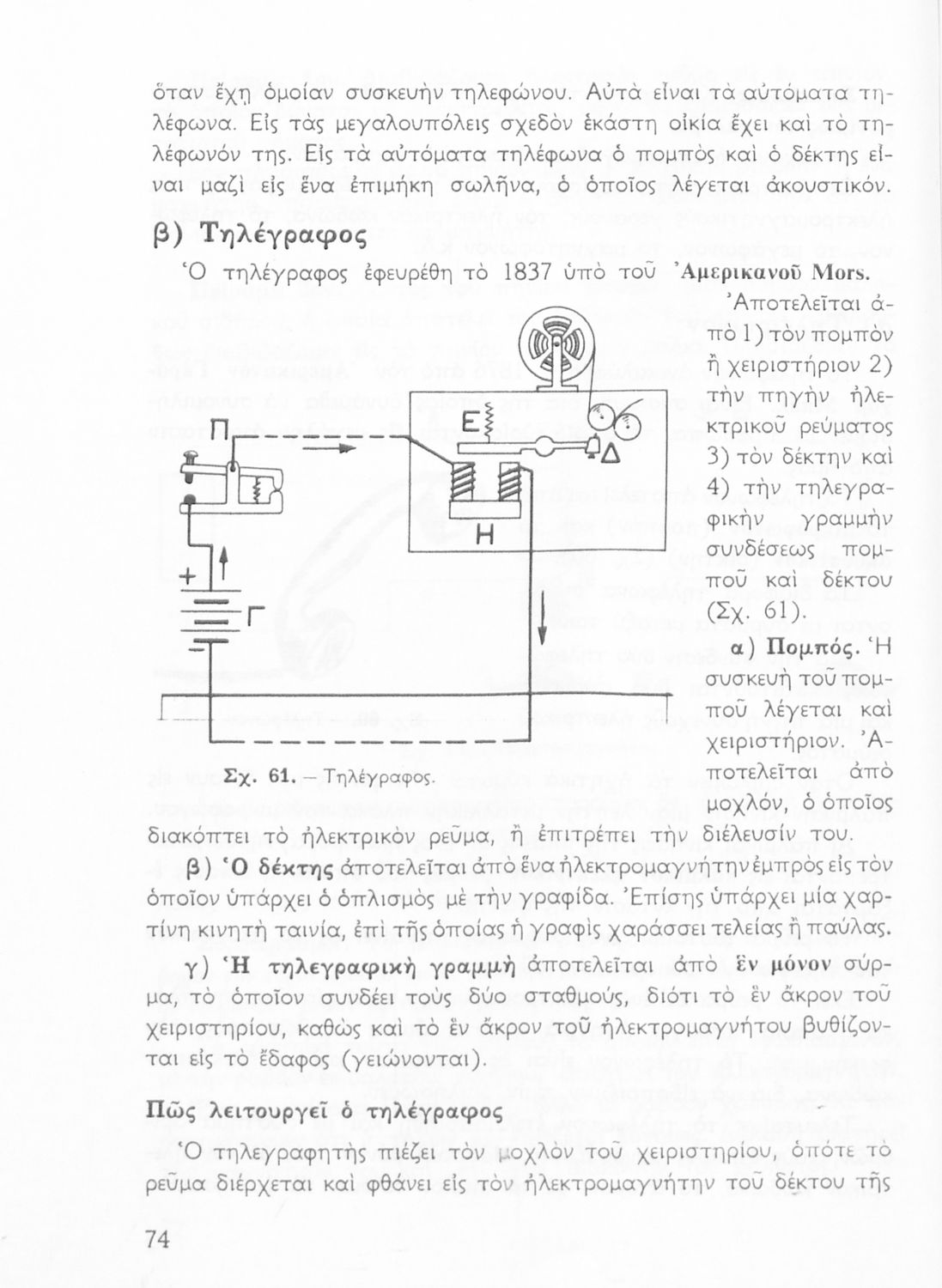 Βαθμίδα εκπαίδευσης: Πρωτοβάθμια Τάξη: ΣΤ' Δημοτικού Γλώσσα: Καθαρεύουσα Παρουσίαση περιεχομένου: Σχολικό εγχειρίδιο Φυσικής και Χημείας της ΣΤ΄ Δημοτικού. Περιέχει βασικές αρχές ακουστικής, οπτικής, ηλεκτρομαγνητισμού καθώς και της ατομικής και πυρηνικής ενέργειας. Τέλος, περιλαμβάνει βασικές έννοιες οργανικής και ανόργανης Χημείας. |