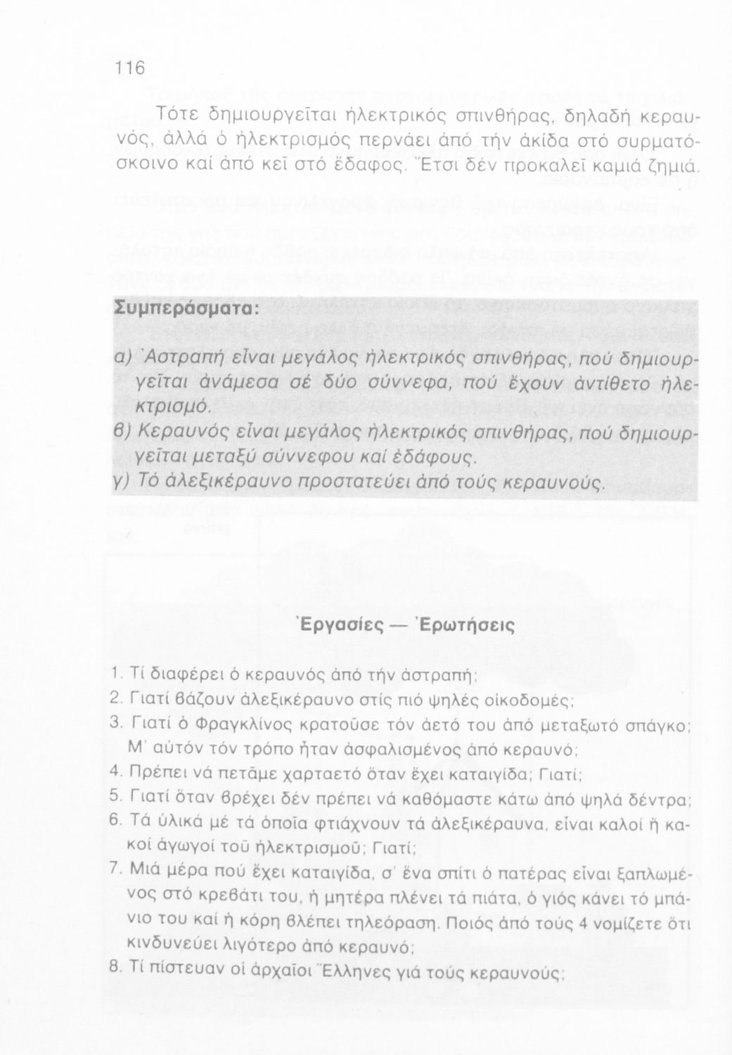 Σχολικό εγχειρίδιο Φυσικής για τους μαθητές της ΣΤ΄ Δημοτικού. Το βιβλίο παρουσιάζει τα βασικά πεδία της Φυσικής, όπως ο ήχος, το φως, ο μαγνητισμός και ο ηλεκτρισμός. Το βιβλίο κλείνει με μια σύντομη παρουσίαση της Χημείας μέσα από παραδείγματα προϊόντων όπως είναι το πετρέλαιο, το οινόπνευμα και η αλκοόλη.