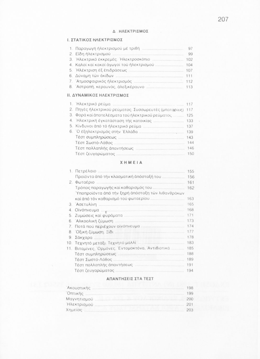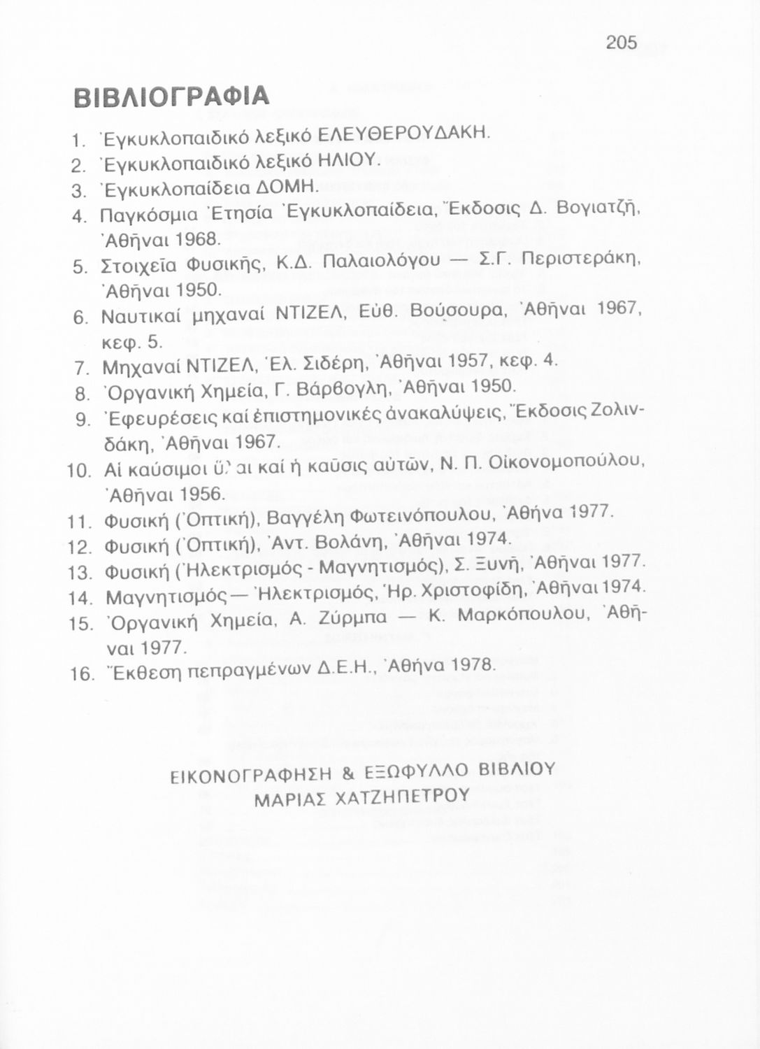 Σχολικό εγχειρίδιο Φυσικής για τους μαθητές της ΣΤ΄ Δημοτικού. Το βιβλίο παρουσιάζει τα βασικά πεδία της Φυσικής, όπως ο ήχος, το φως, ο μαγνητισμός και ο ηλεκτρισμός. Το βιβλίο κλείνει με μια σύντομη παρουσίαση της Χημείας μέσα από παραδείγματα προϊόντων όπως είναι το πετρέλαιο, το οινόπνευμα και η αλκοόλη.
