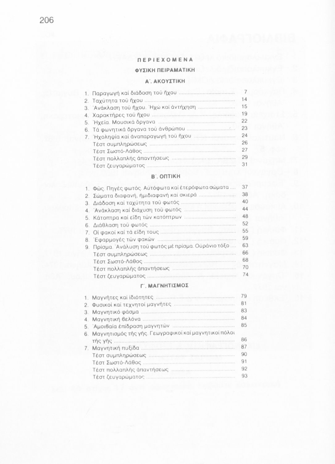 520 ## _aΣχολικό εγχειρίδιο Φυσικής για τους μαθητές της ΣΤ΄ Δημοτικού. Το βιβλίο παρουσιάζει τα βασικά πεδία της Φυσικής, όπως ο ήχος, το φως, ο μαγνητισμός και ο ηλεκτρισμός. Το βιβλίο κλείνει με μια σύντομη παρουσίαση της Χημείας μέσα από παραδείγματα προϊόντων όπως είναι το πετρέλαιο, το οινόπνευμα και η αλκοόλη.