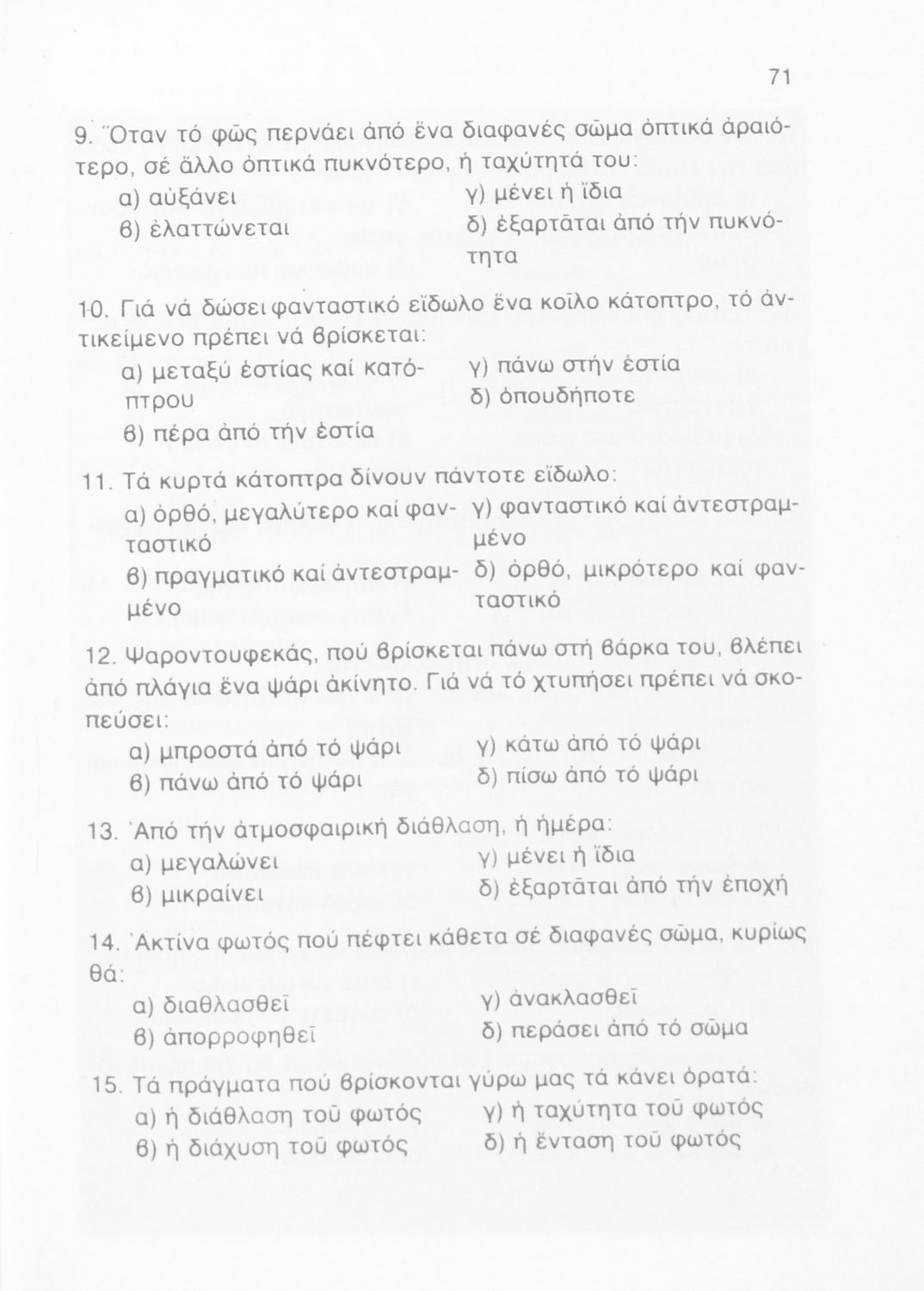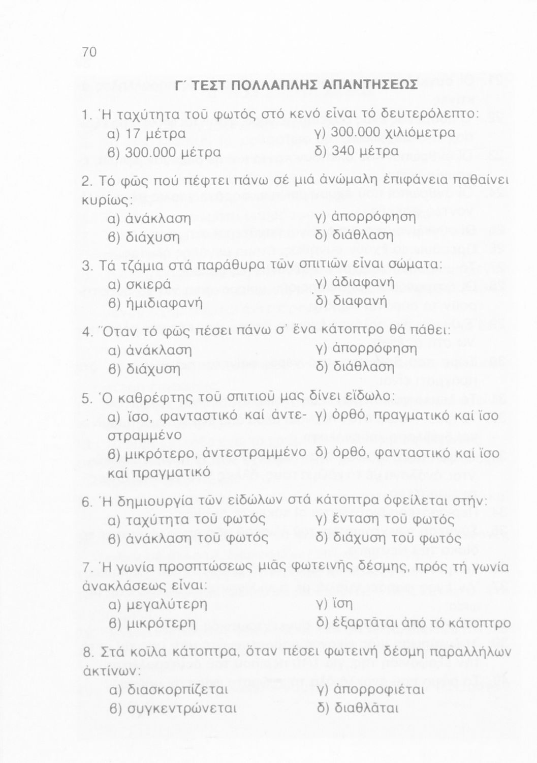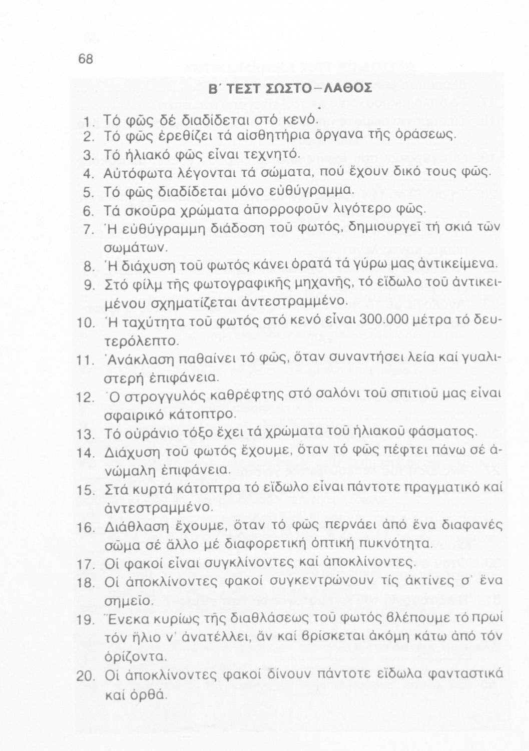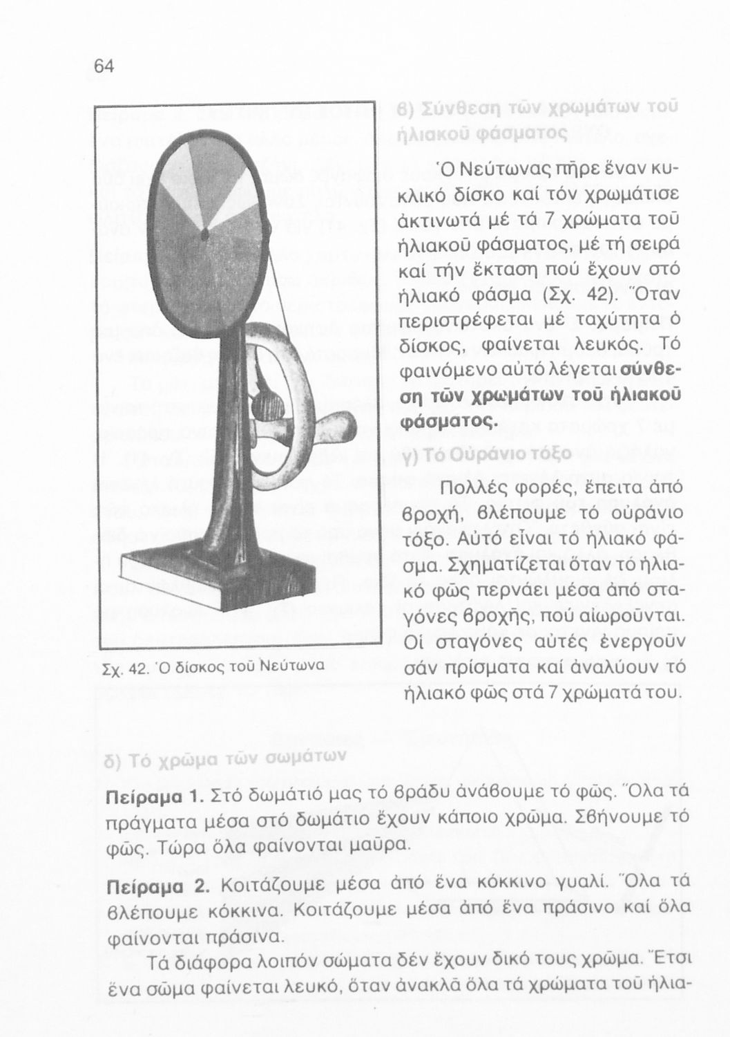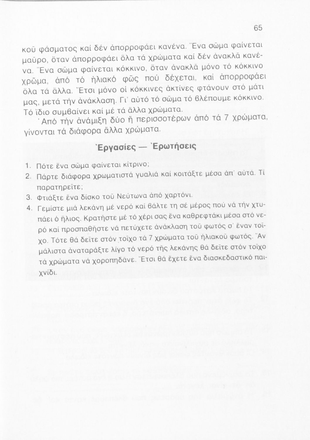 Σχολικό εγχειρίδιο Φυσικής για τους μαθητές της ΣΤ΄ Δημοτικού. Το βιβλίο παρουσιάζει τα βασικά πεδία της Φυσικής, όπως ο ήχος, το φως, ο μαγνητισμός και ο ηλεκτρισμός. Το βιβλίο κλείνει με μια σύντομη παρουσίαση της Χημείας μέσα από παραδείγματα προϊόντων όπως είναι το πετρέλαιο, το οινόπνευμα και η αλκοόλη.