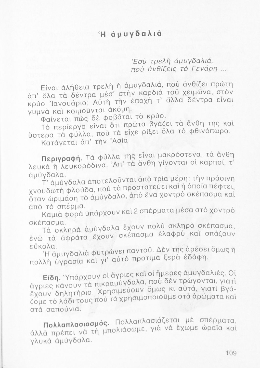 Πρόκειται για βιβλίο Φυτολογίας και Ζωολογίας για την Γ΄ Δημοτικού. Περιέχει στοιχεία για τα μέρη του φυτού, για φυτά και ζώα που υπάρχουν στον κήπο, τον ανθόκηπο και τον λαχανόκηπο.