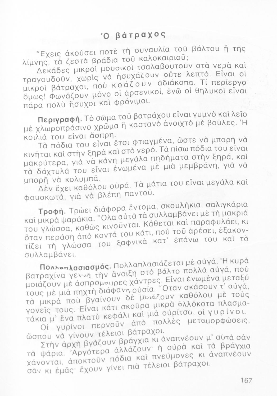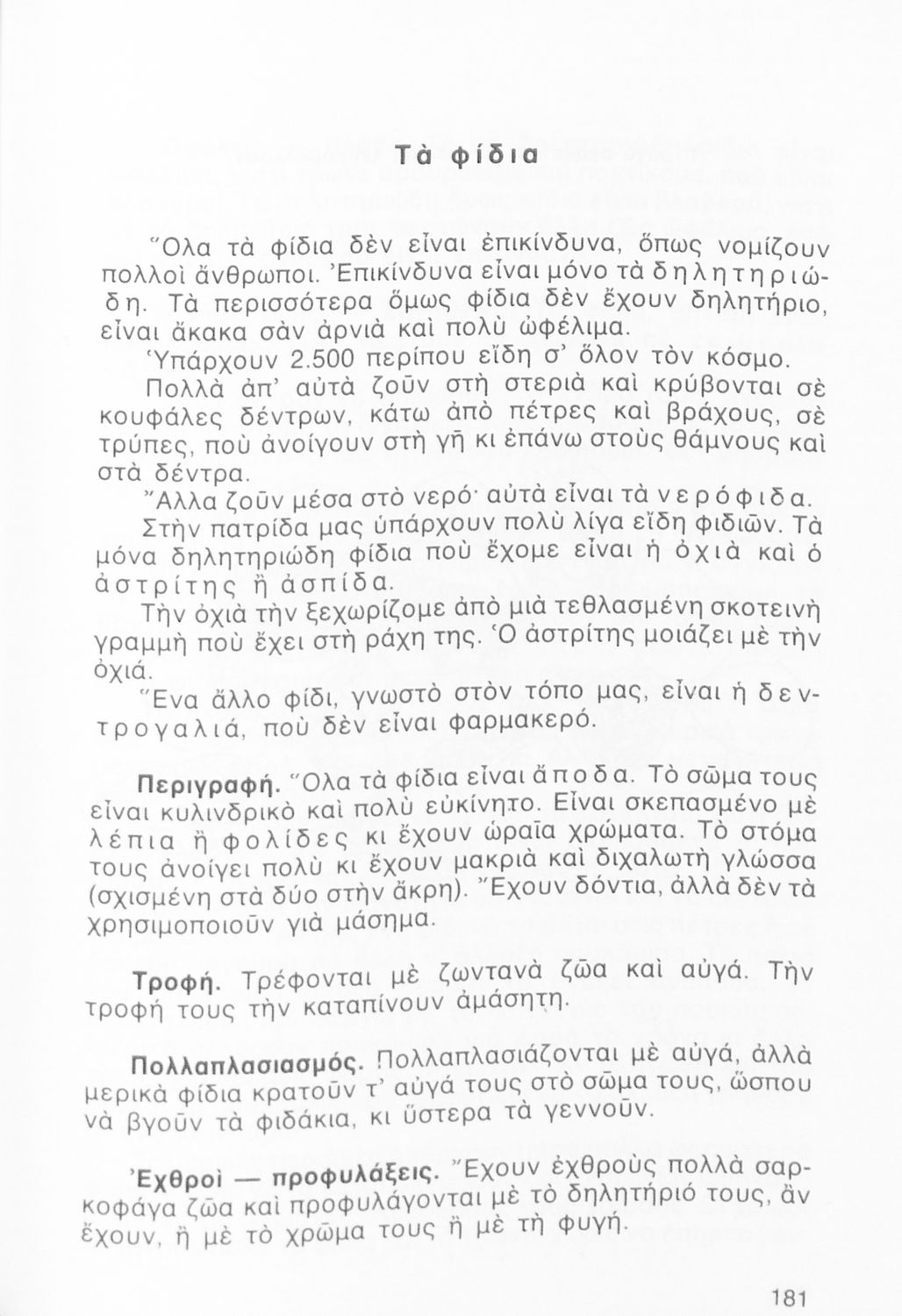 Σχολικό εγχειρίδιο Φυτολογίας και Ζωολογίας για τη Δ΄ Δημοτικού που γράφτηκε στη σειρά εκδόσεων της Σχολή Μωραΐτη. Παρουσιάζει πλήθος φυτών και ζώων και εστιάζει στην αναπαραγωγή, τους εχθρούς, τις διατροφικές