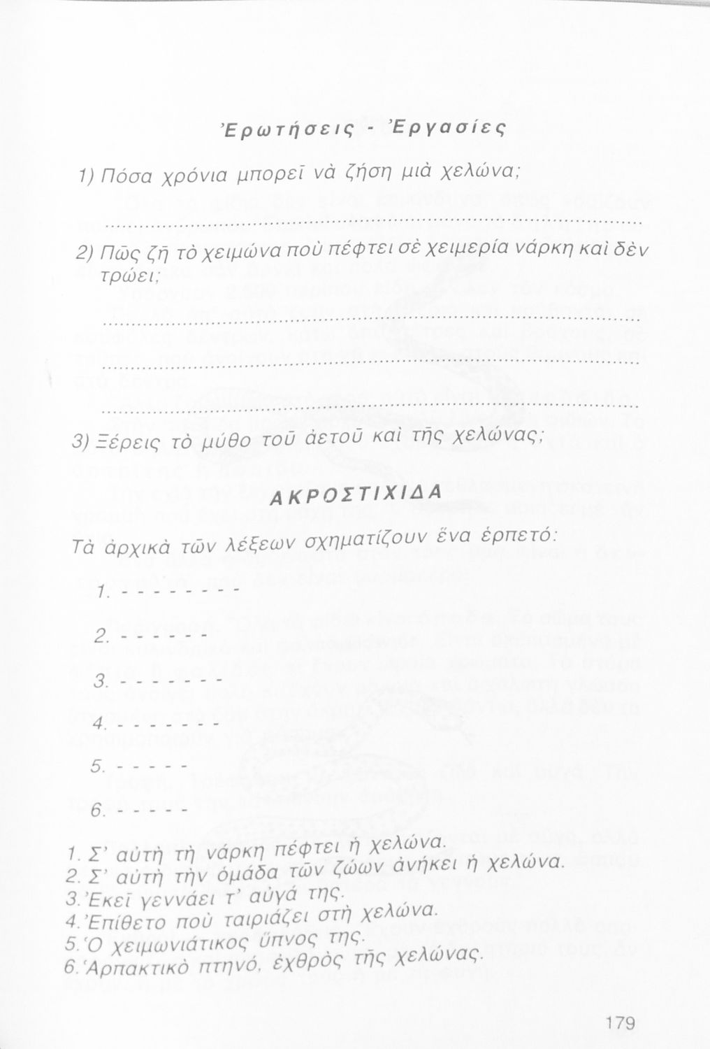 Σχολικό εγχειρίδιο της Γ ΄ Δημοτικού. Στο βιβλίο παρουσιάζονται τα διαφορετικά μέρη των φυτών και τις ιδιότητες του καθενός. Μέσα από παραδείγματα περιγράφεται ο τρόπος γονιμοποίησης και αποθήκευσης τροφής των φυτών καθώς και προφύλαξης τους από πιθανές απειλές. Το δεύτερο μέρος του βιβλίο αφορά τη ζωολογία και κάνει μια κατηγοριοποίηση των ζώων με βάση το φυσικό τους περιβάλλον, όπως ζώα της θάλασσας, του δάσους και ζώα του σπιτιού.
