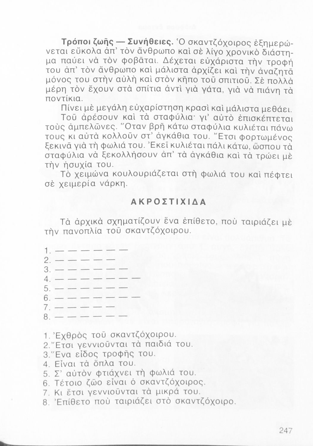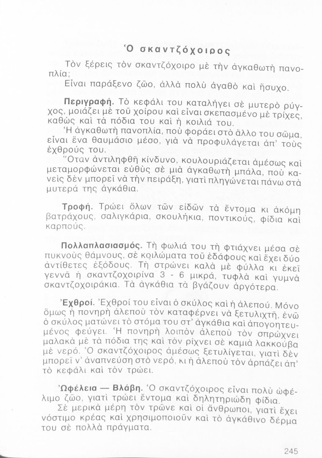 Σχολικό εγχειρίδιο Φυτολογίας και Ζωολογίας για τη Δ΄ Δημοτικού που γράφτηκε στη σειρά εκδόσεων της Σχολή Μωραΐτη. Παρουσιάζει πλήθος φυτών και ζώων και εστιάζει στην αναπαραγωγή, τους εχθρούς, τις διατροφικές