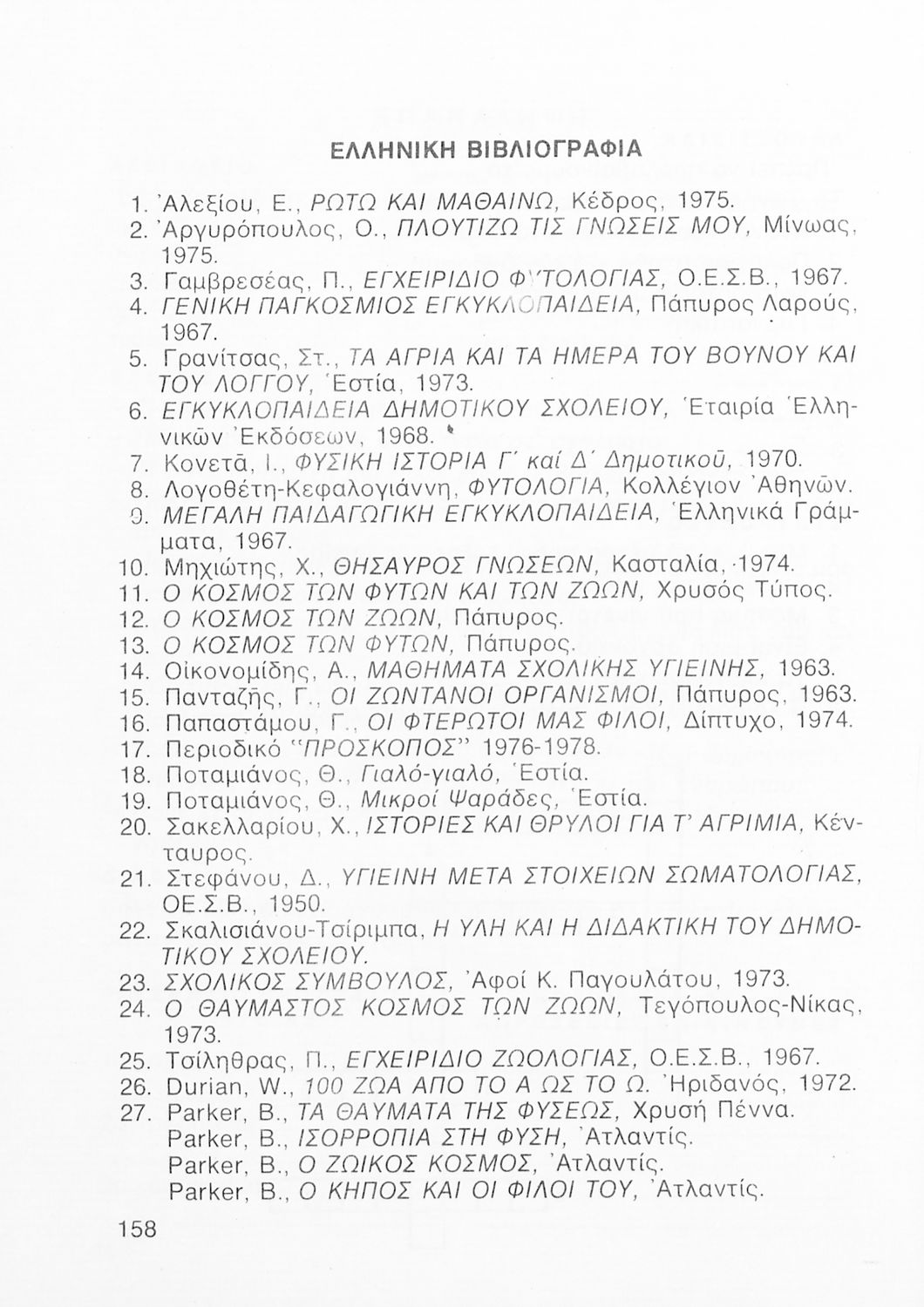Σχολικό εγχειρίδιο Φυτολογίας και Ζωολογίας για τη Δ΄ Δημοτικού που γράφτηκε στη σειρά εκδόσεων της Σχολή Μωραΐτη. Παρουσιάζει πλήθος φυτών και ζώων και εστιάζει στην αναπαραγωγή, τους εχθρούς, τις διατροφικές