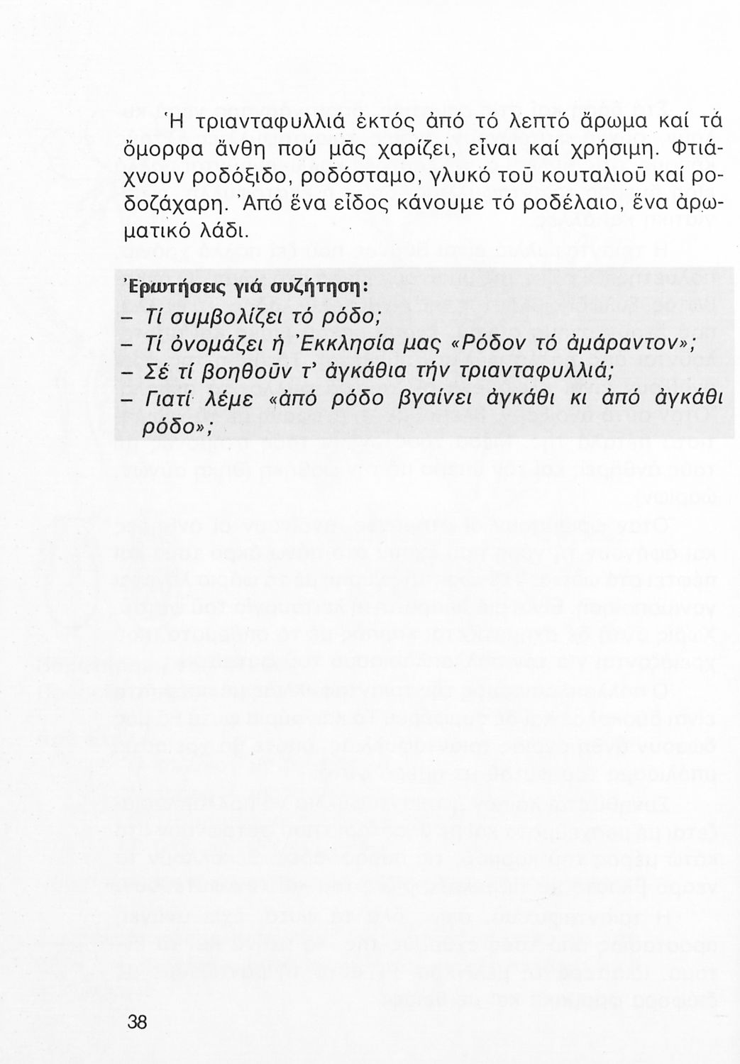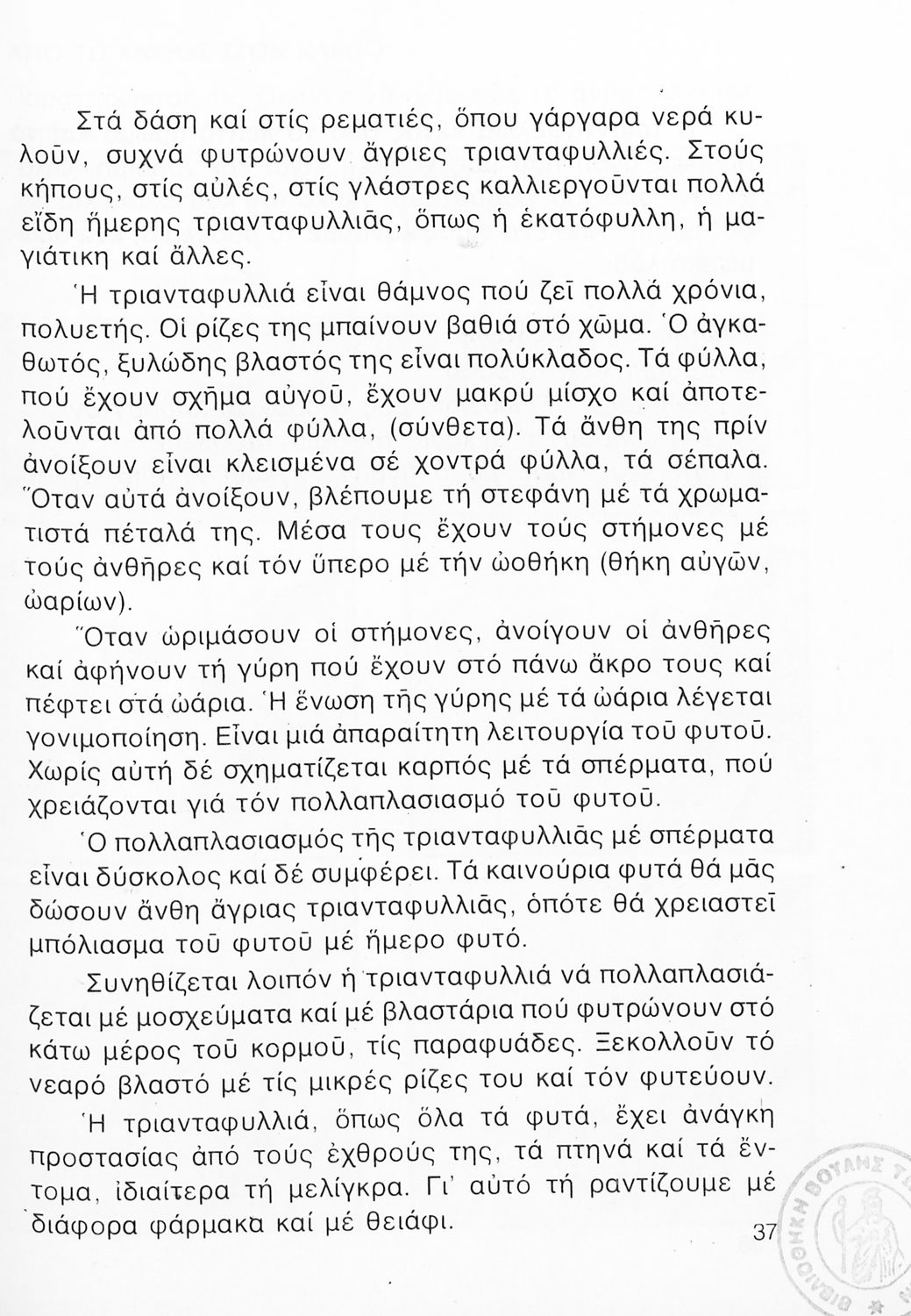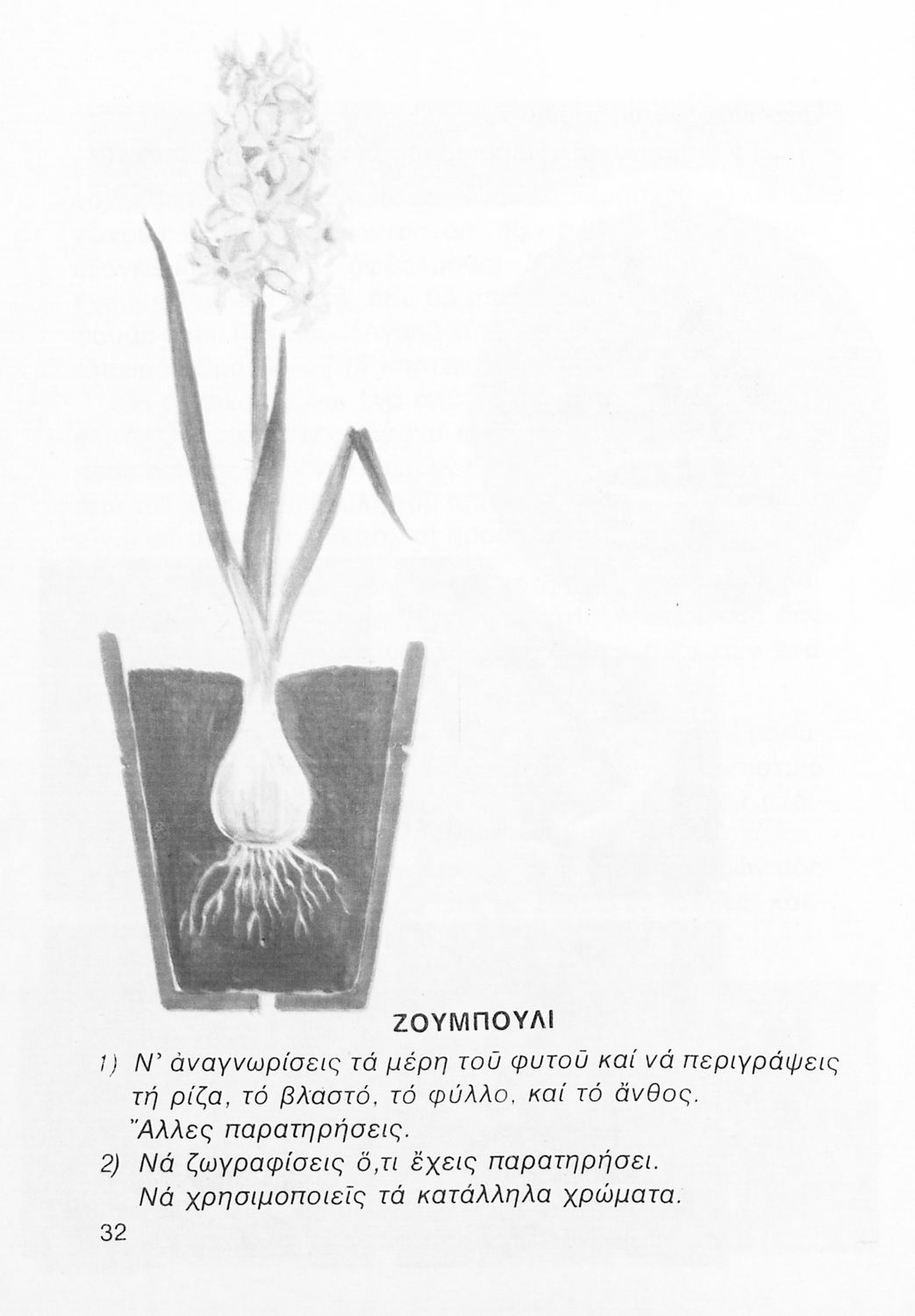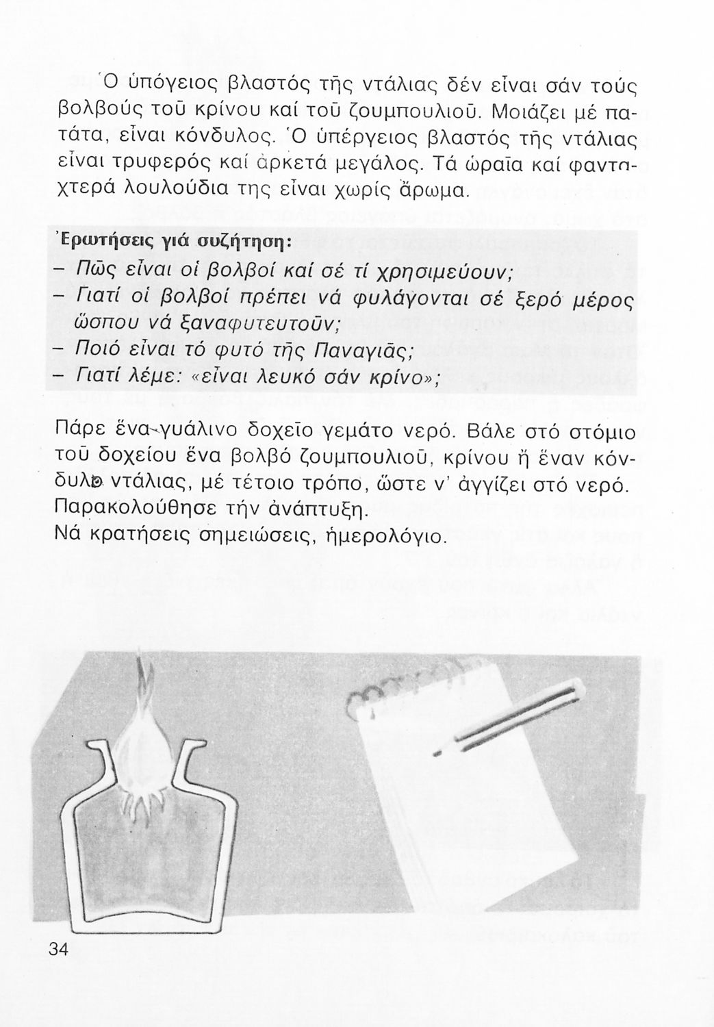 Σχολικό εγχειρίδιο της Γ ΄ Δημοτικού. Στο βιβλίο παρουσιάζονται τα διαφορετικά μέρη των φυτών και τις ιδιότητες του καθενός. Μέσα από παραδείγματα περιγράφεται ο τρόπος γονιμοποίησης και αποθήκευσης τροφής των