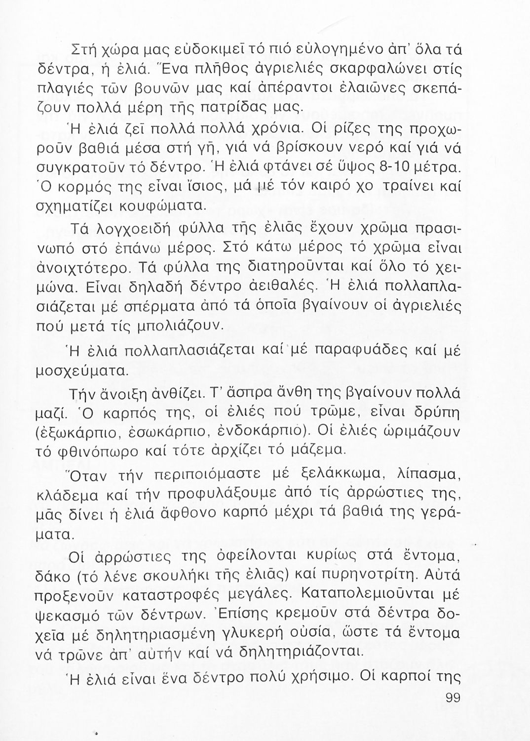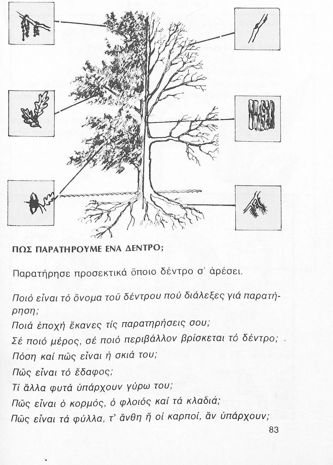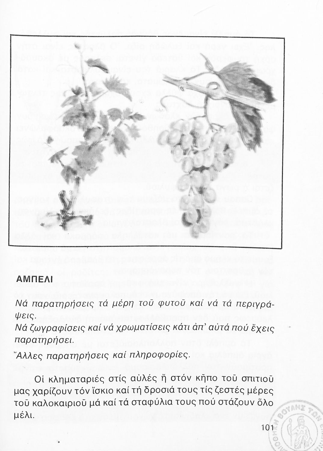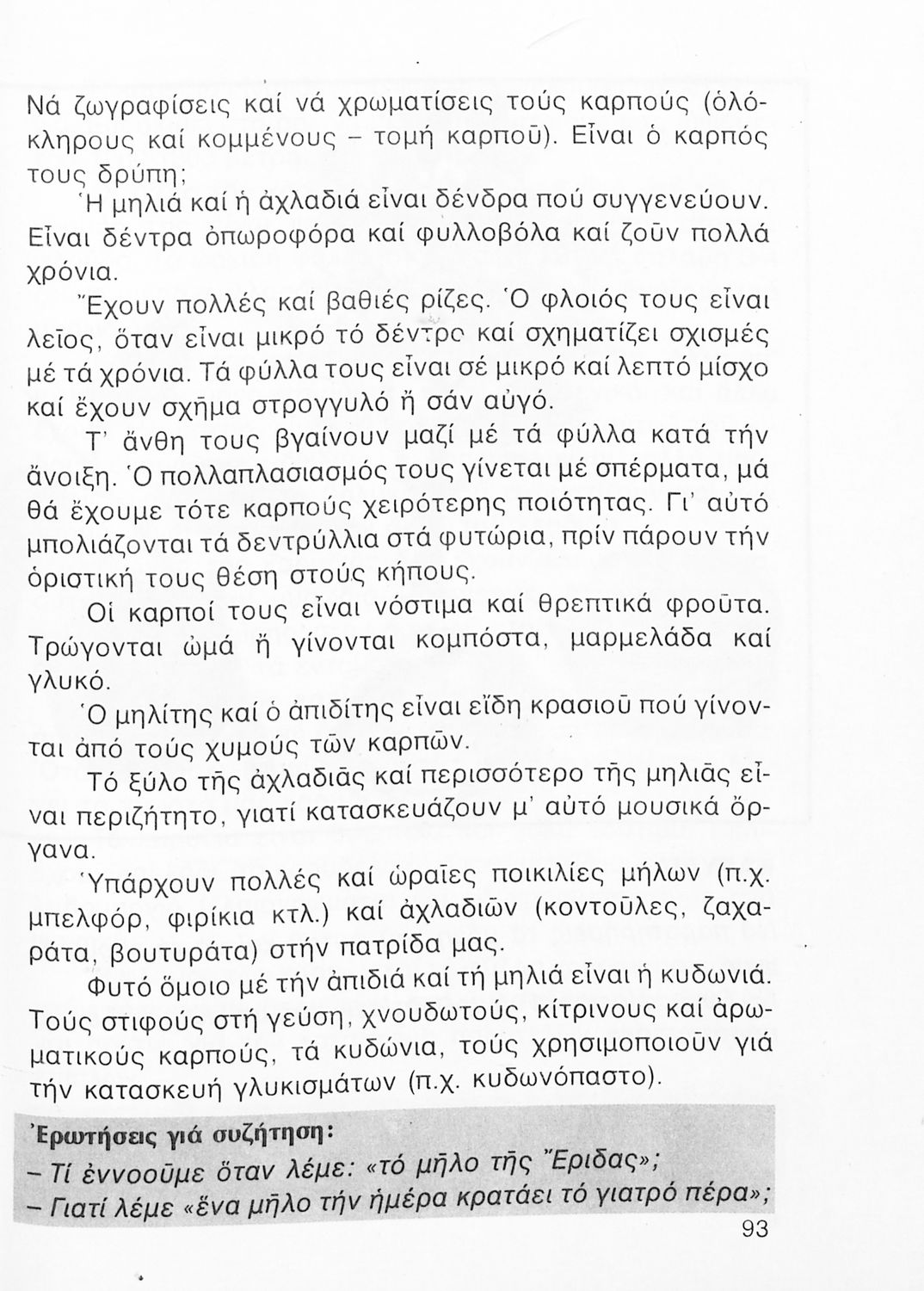 Σχολικό εγχειρίδιο της Γ ΄ Δημοτικού. Στο βιβλίο παρουσιάζονται τα διαφορετικά μέρη των φυτών και τις ιδιότητες του καθενός. Μέσα από παραδείγματα περιγράφεται ο τρόπος γονιμοποίησης και αποθήκευσης τροφής των