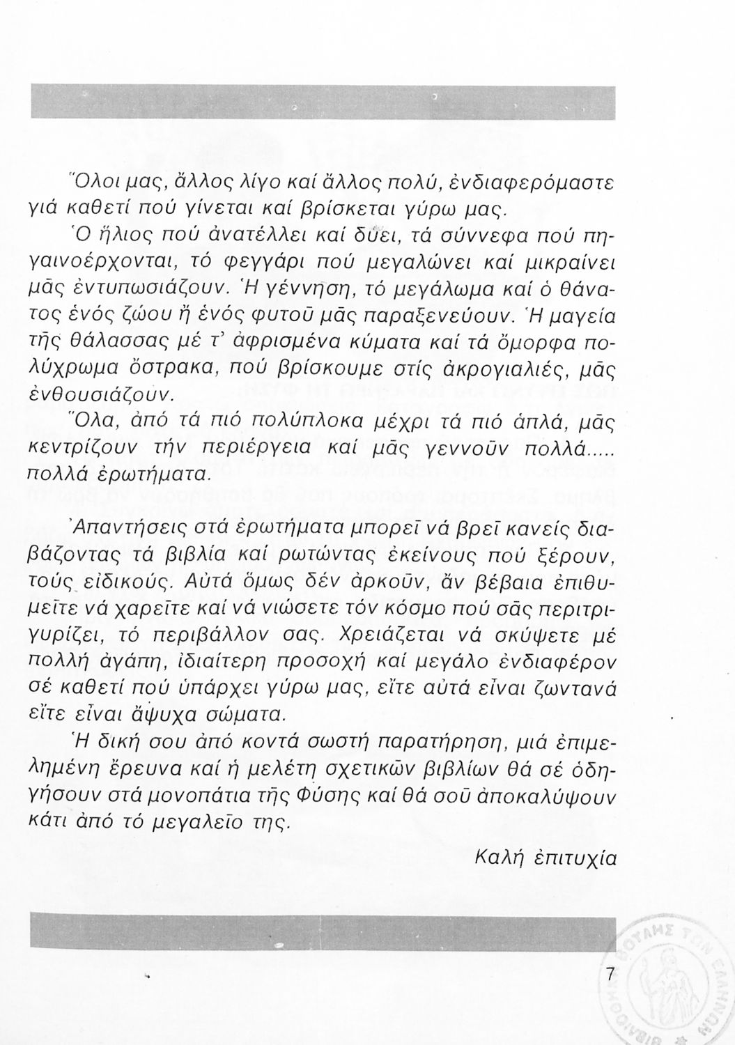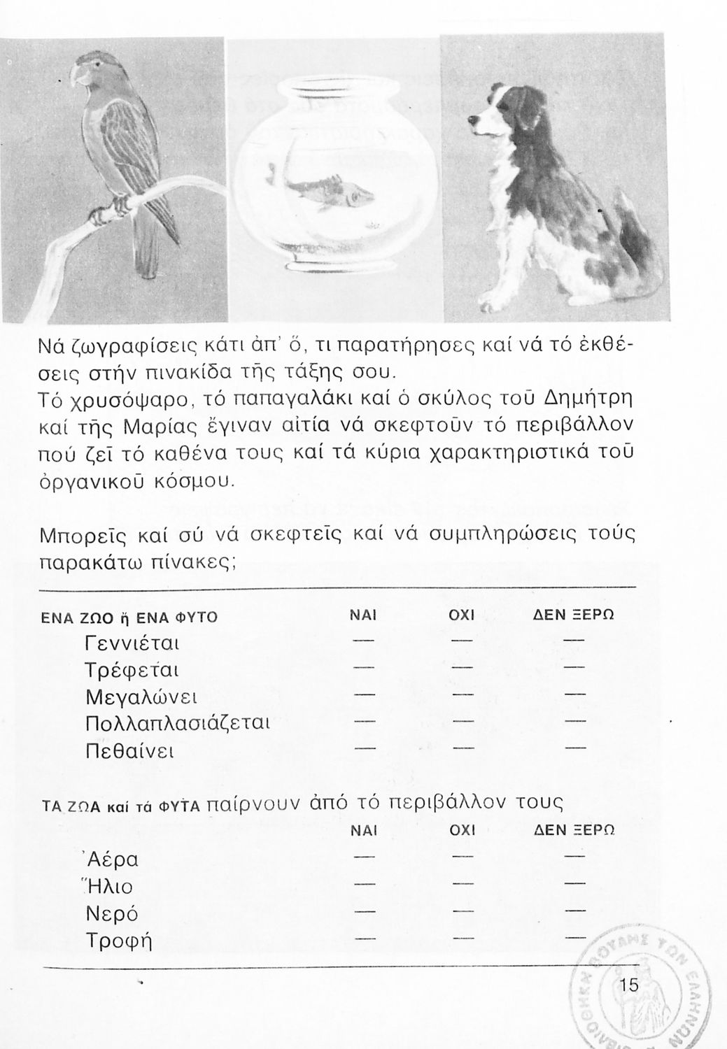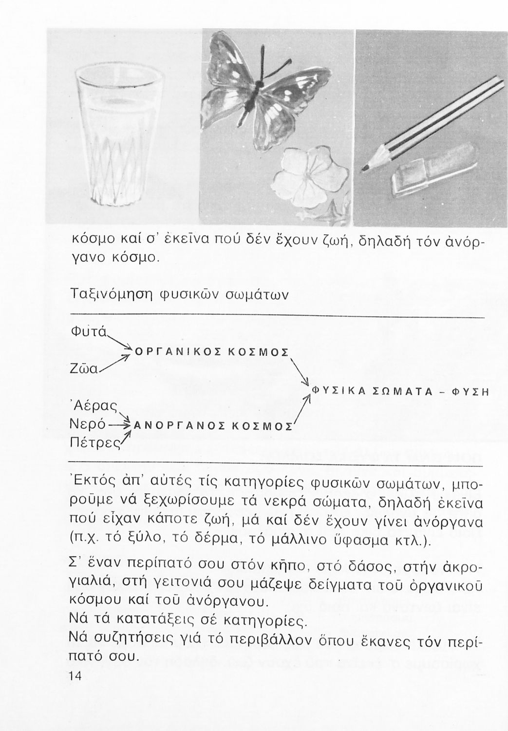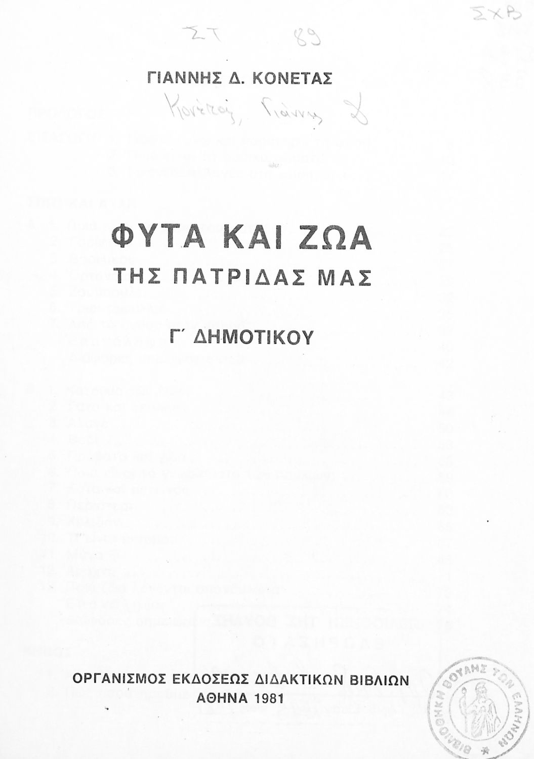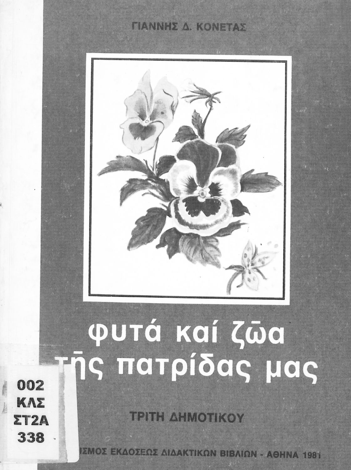 Σχολικό εγχειρίδιο Φυτολογίας και Ζωολογίας της Γ ΄ Δημοτικού. Παρουσιάζει στοιχεία και χαρακτηριστικά των φυτών και των ζώων καθώς και τον τρόπο με τον οποίο ο άνθρωπος τα αξιοποιεί.