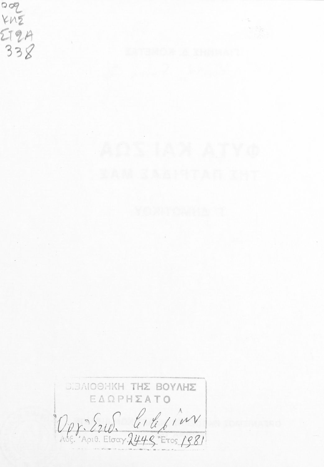 Εντοπισμός πρωτοτύπου: Βιβλιοθήκη της Βουλής των Ελλήνων Κωδικός βιβλιοθήκης: 20555889 |
