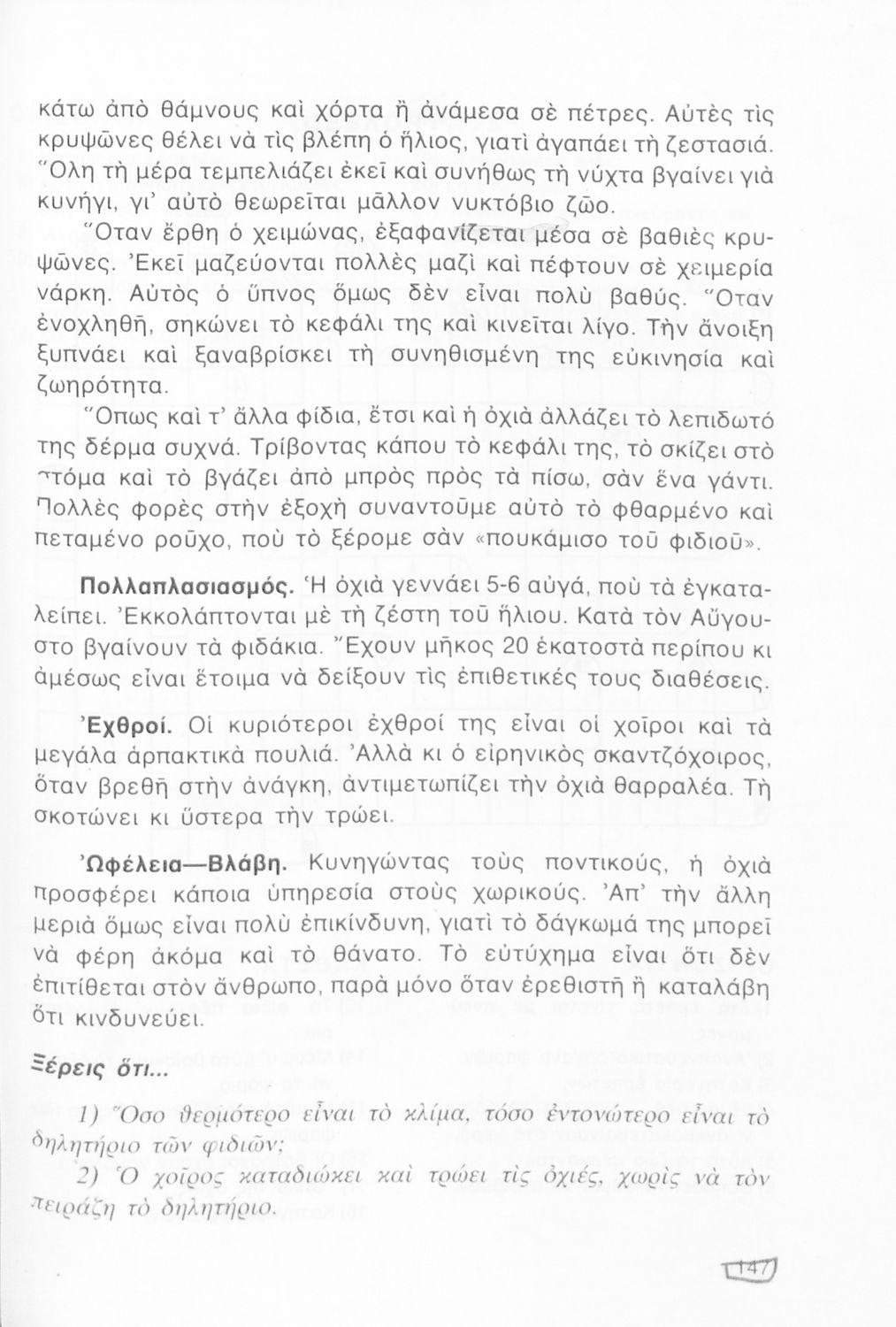 Σχολικό εγχειρίδιο Φυτολογίας και Ζωολογίας για τη Δ΄ Δημοτικού που γράφτηκε στη σειρά εκδόσεων της Σχολή Μωραΐτη. Παρουσιάζει πλήθος φυτών και ζώων και εστιάζει στην αναπαραγωγή, τους εχθρούς, τις διατροφικές