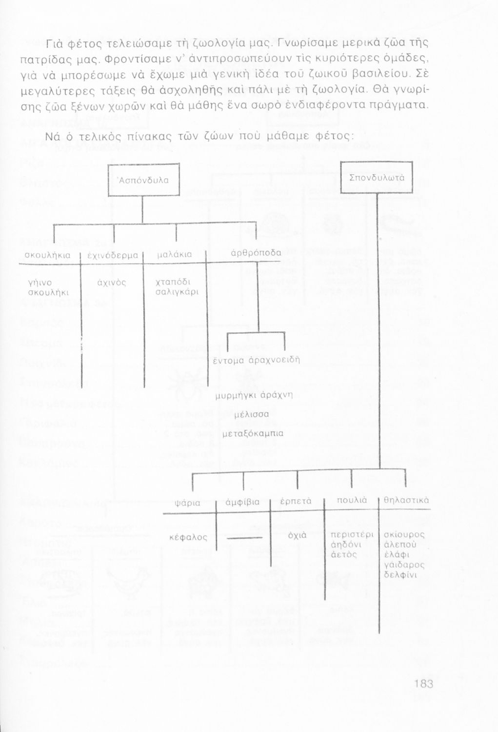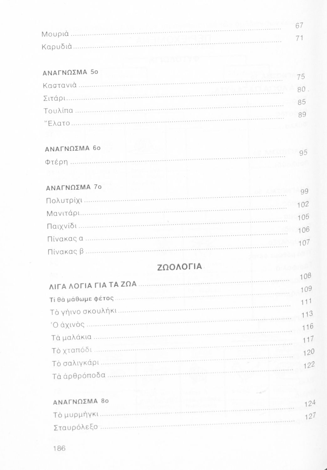 Σχολικό εγχειρίδιο Φυτολογίας και Ζωολογίας για τη Δ΄ Δημοτικού που γράφτηκε στη σειρά εκδόσεων της Σχολή Μωραΐτη. Παρουσιάζει πλήθος φυτών και ζώων και εστιάζει στην αναπαραγωγή, τους εχθρούς, τις διατροφικές