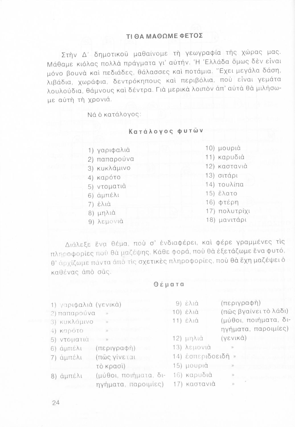 Σχολικό εγχειρίδιο Φυτολογίας για τη Δ' Δημοτικού. Πληροφορεί τους μαθητές για τον τρόπο παρατήρησης του περιβάλλοντος και δίνει στοιχεία για φυτά και ζώα που υπάρχουν στο ελληνικό φυσικό περιβάλλον. Κάθε ...