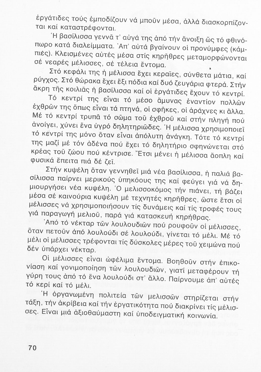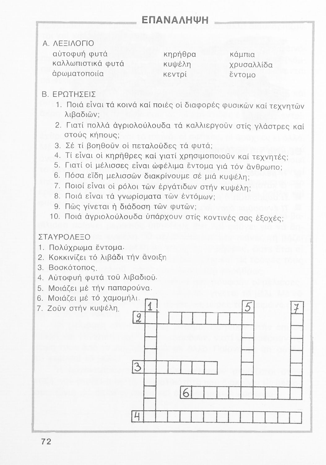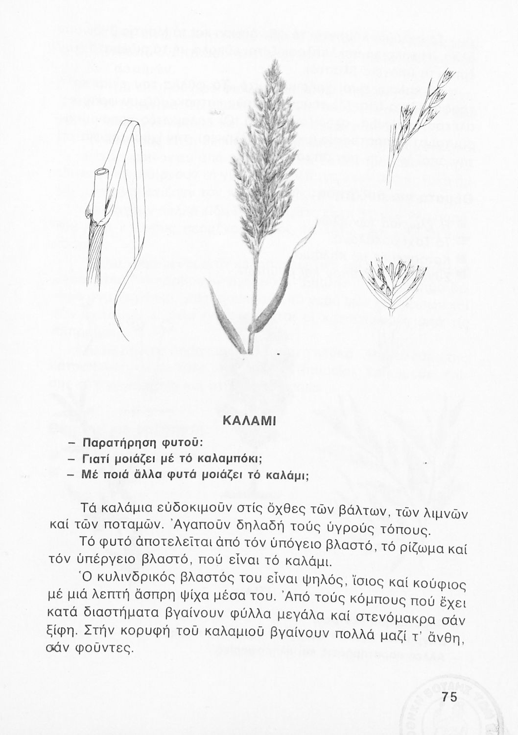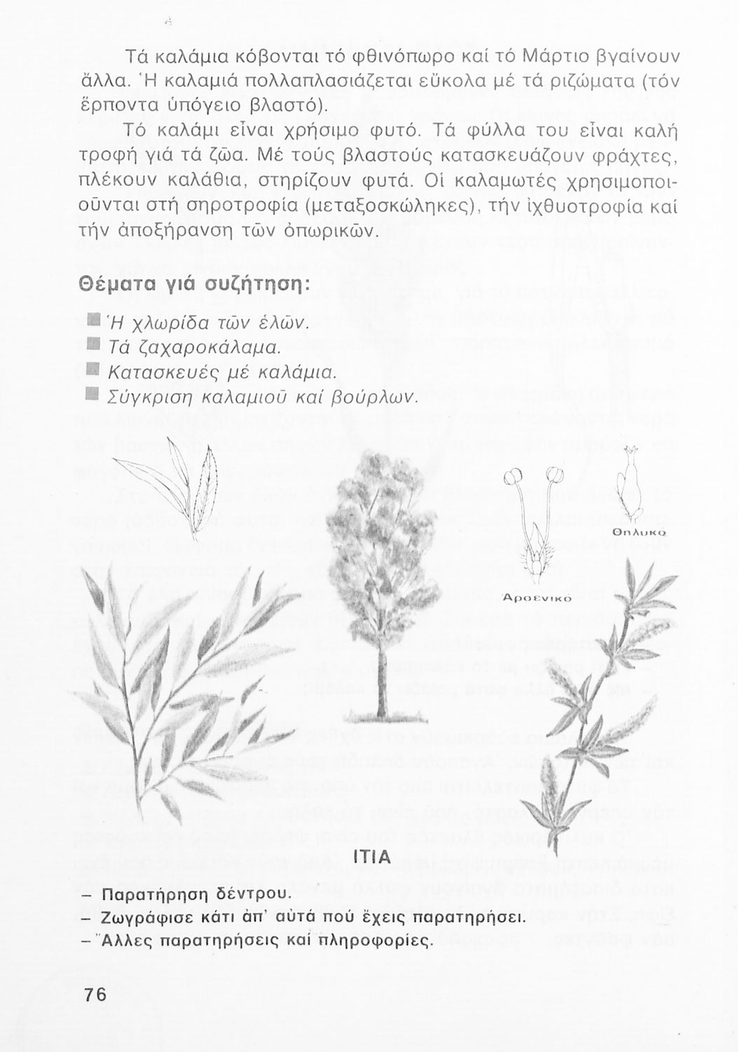Σχολικό εγχειρίδιο της Γ ΄ Δημοτικού. Στο βιβλίο παρουσιάζονται τα διαφορετικά μέρη των φυτών και τις ιδιότητες του καθενός. Μέσα από παραδείγματα περιγράφεται ο τρόπος γονιμοποίησης και αποθήκευσης τροφής των