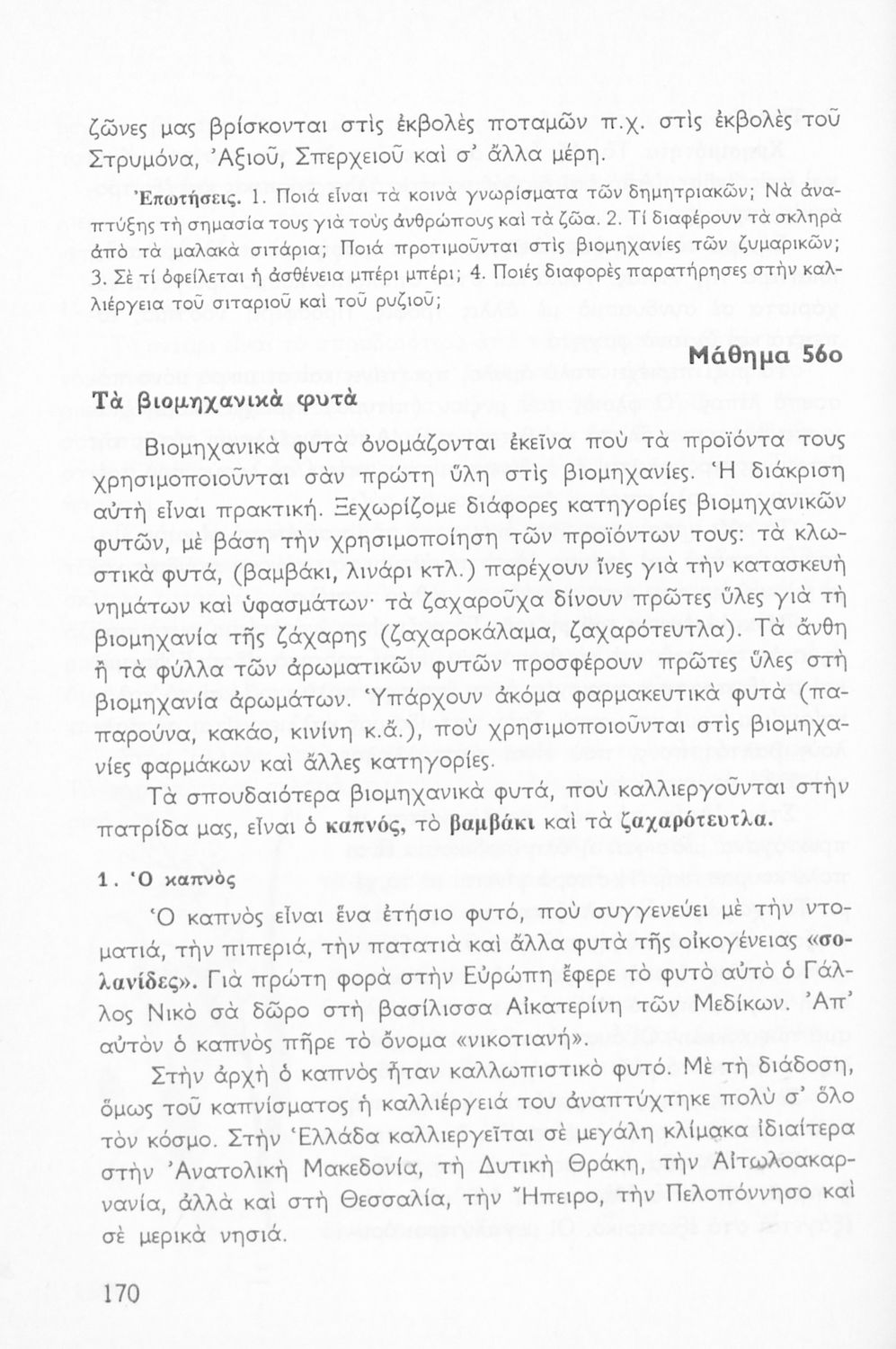 Σχολικό εγχειρίδιο Φυτολογίας και Ζωολογίας της Ε' Δημοτικού το οποίο παρουσιάζει και κατηγοριοποιεί τα ζώα σε θηλαστικά, ερπετά, και πτηνά και αναλύει τον τρόπο ζωής και αναπαραγωγής τους. Στο δεύτερο μέρος του, το βιβλίο παρουσιάζει τα φυτά με βάση τη γεωγραφική της θέση χωρίζοντάς τα σε φυτά θερμών και ψυχρών χωρών. Τέλος, το βιβλίο κλείνει με αναφορές στον τρόπο καλλιέργειας.
