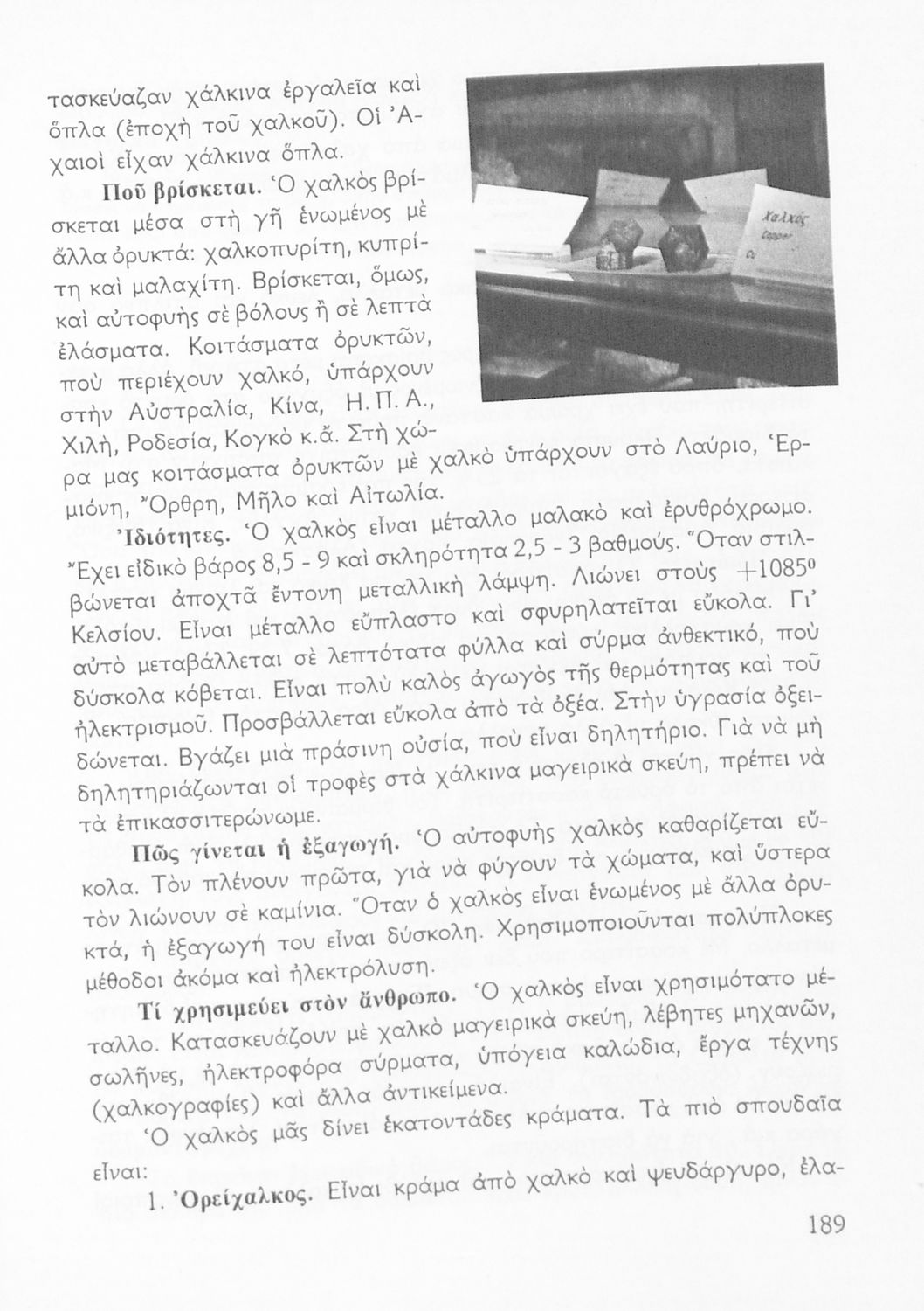 Βαθμίδα εκπαίδευσης: Πρωτοβάθμια Τάξη: Ε' Δημοτικού Γλώσσα: Δημοτική Παρουσίαση περιεχομένου: Σχολικό εγχειρίδιο Φυτολογίας και Ζωολογίας της Ε' Δημοτικού το οποίο παρουσιάζει και κατηγοριοποιεί τα ζώα σε θηλαστικά, ερπετά, και πτηνά και αναλύει τον τρόπο ζωής και αναπαραγωγής τους. Στο δεύτερο μέρος του, το βιβλίο παρουσιάζει τα φυτά με βάση τη γεωγραφική της θέση χωρίζοντάς τα σε φυτά θερμών και ψυχρών χωρών. Τέλος, το βιβλίο κλείνει με αναφορές στον τρόπο καλλιέργειας. |