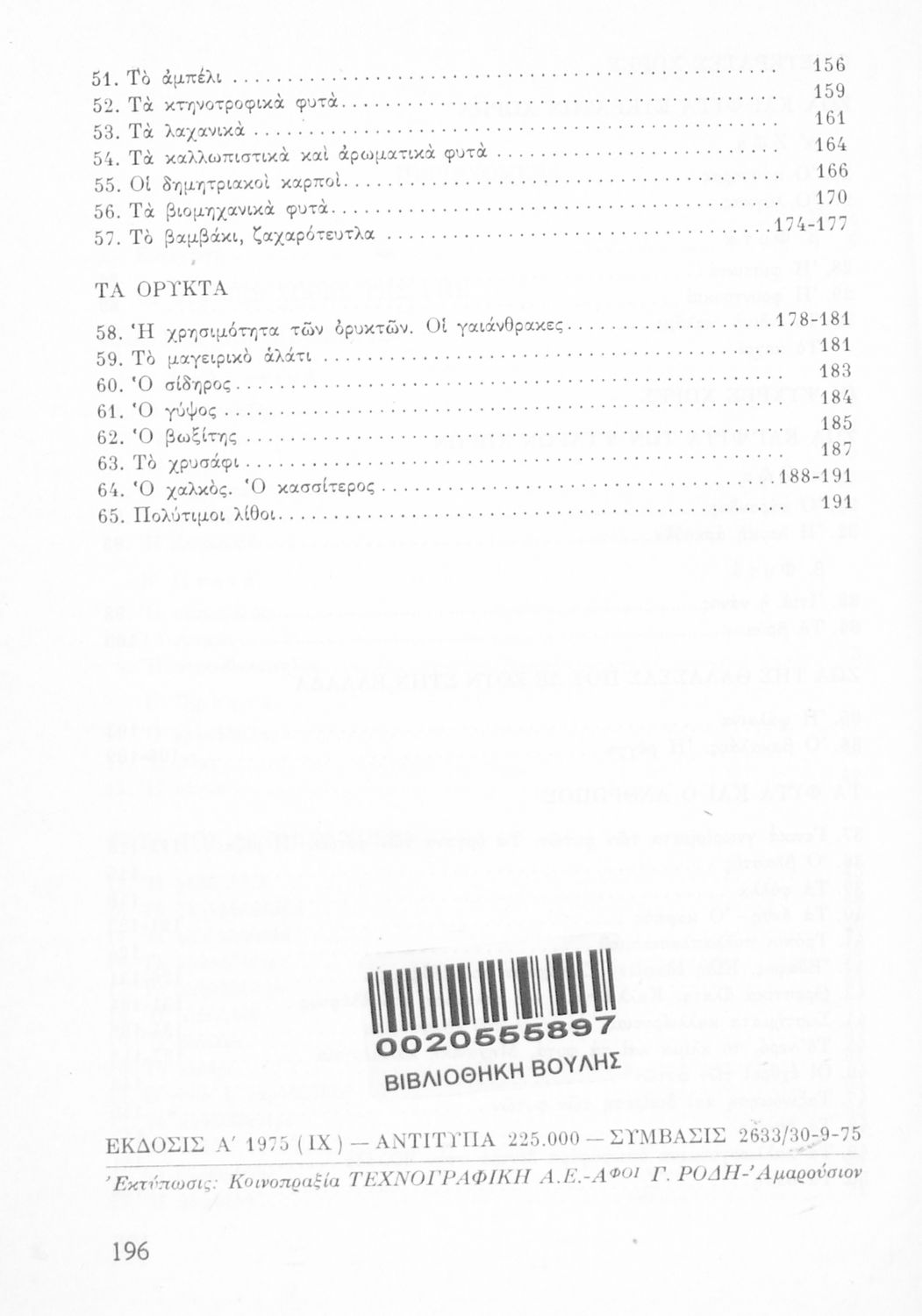 LDR 01891 2200229 4500 035 ## _a03-20555897 040 ## _aΒιβλιοθήκη της Βουλής των Ελλήνων 041 ## _ael 100 ## _aΛεωνίδας Βελιαρούτης _aΑ. Οικονόμου – Αμίλλη 110 ## _a20555897 245 0# _aΦυσική Ιστορία Ε΄ Δημοτικού 250 ## _a1η Έκδοση 260 ## _aΑθήνα _bΟργανισμός Εκδόσεως Διδακτικών Βιβλίων _c1975 300 ## _a196 _bΕικόνες, σκίτσα, έγχρωμα 520 ## _aΣχολικό εγχειρίδιο Φυτολογίας και Ζωολογίας της Ε' Δημοτικού το οποίο παρουσιάζει και κατηγοριοποιεί τα ζώα σε θηλαστικά, ερπετά, και πτηνά και αναλύει τον τρόπο ζωής και αναπαραγωγής τους. Στο δεύτερο μέρος του, το βιβλίο παρουσιάζει τα φυτά με βάση τη γεωγραφική της θέση χωρίζοντάς τα σε φυτά θερμών και ψυχρών χωρών. Τέλος, το βιβλίο κλείνει με αναφορές στον τρόπο καλλιέργειας. 521 ## _aΕ' Δημοτικού 522 ## _aΕλλάδα 546 ## _aΔημοτική 563 ## _aΜαλακό Εξώφυλλο 583 ## _a2633/30-9-1975 _c1975 650 #4 _aΆλατα _aΆνθη _aΒιομηχανία των λαχανικών _aΒλαστός _aΕρπετά _aΕυκάλυπτος _aΘηλαστικά _aΘρεπτικά _aΚαλλιέργεια _aΚαλλιέργεια καπνού _aΚαμφορά _aΚανελόδεντρο _aΚαρπός _aΜαρσιποφόρα _aΜηχανική _aΠιπέρι _aΠτηνά _aΡίζα _aΤσάι 700 ## _aΡούλα Κανέλλη - Κανάκη