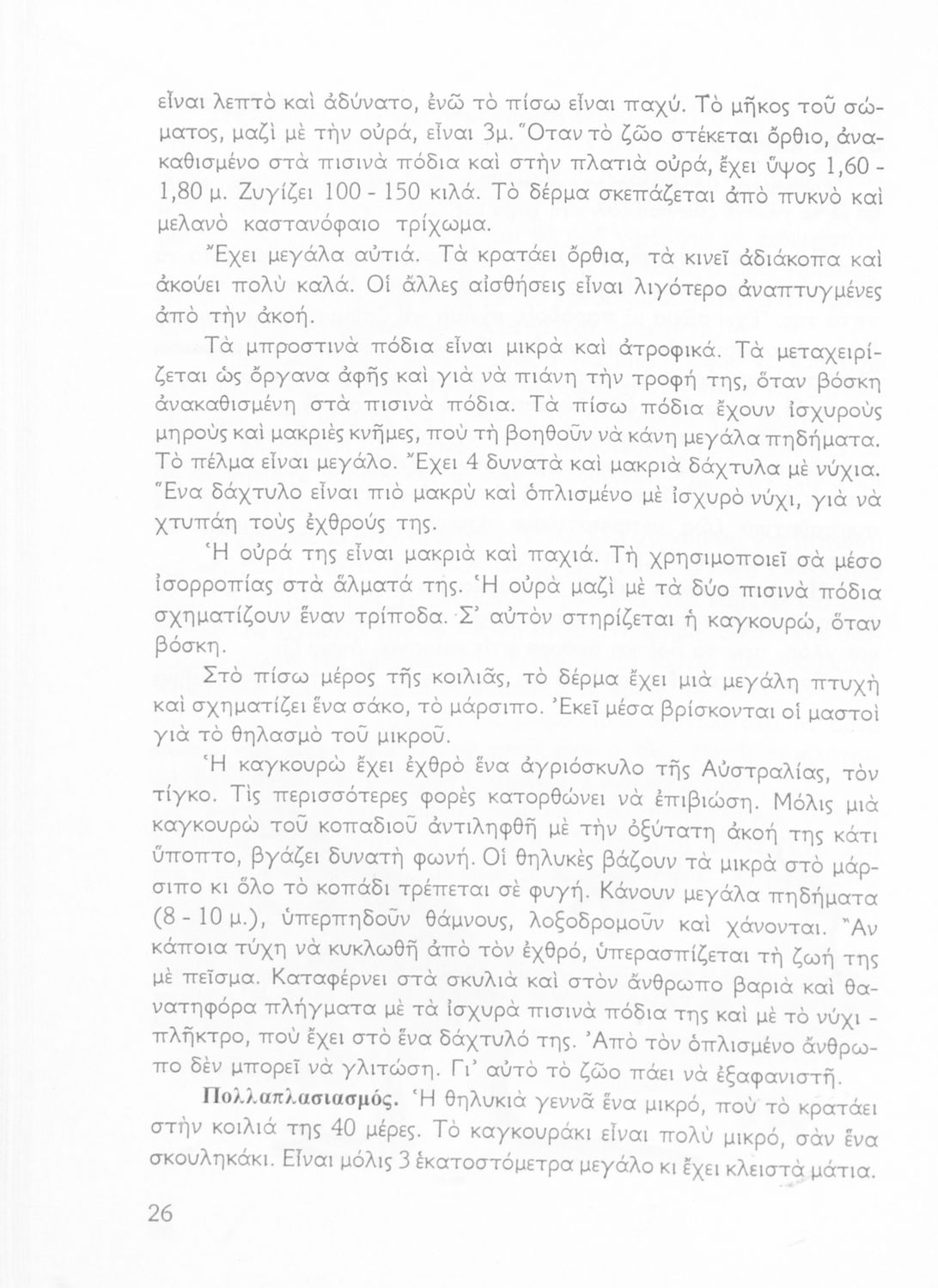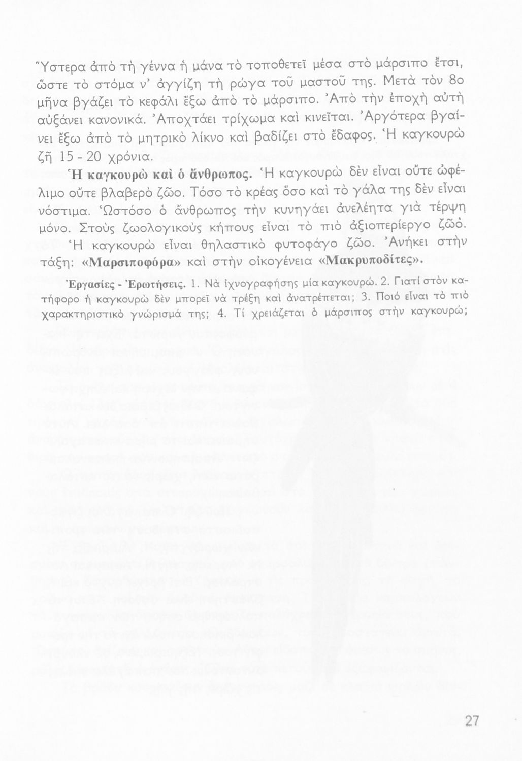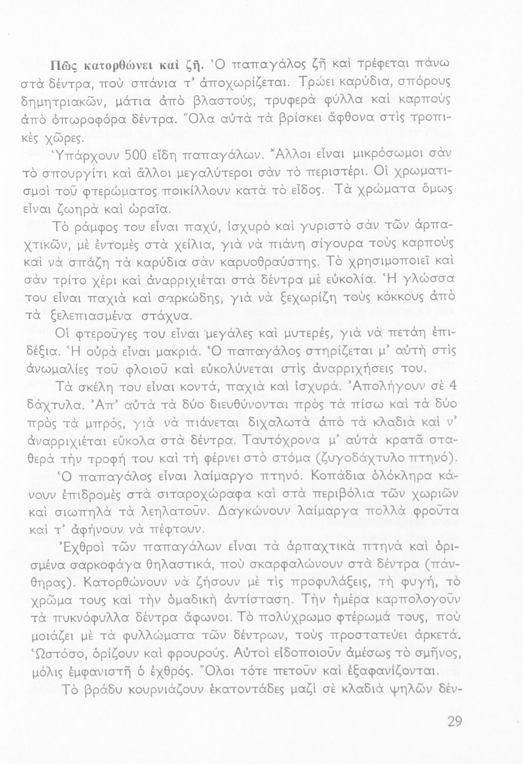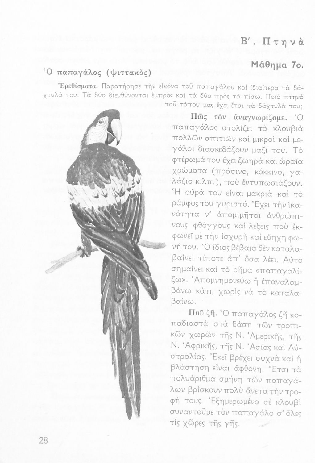 Σχολικό εγχειρίδιο Φυτολογίας και Ζωολογίας της Ε' Δημοτικού το οποίο παρουσιάζει και κατηγοριοποιεί τα ζώα σε θηλαστικά, ερπετά, και πτηνά και αναλύει τον τρόπο ζωής και αναπαραγωγής τους. Στο δεύτερο μέρος του, το βιβλίο παρουσιάζει τα φυτά με βάση τη γεωγραφική της θέση χωρίζοντάς τα σε φυτά θερμών και ψυχρών χωρών. Τέλος, το βιβλίο κλείνει με αναφορές στον τρόπο καλλιέργειας.