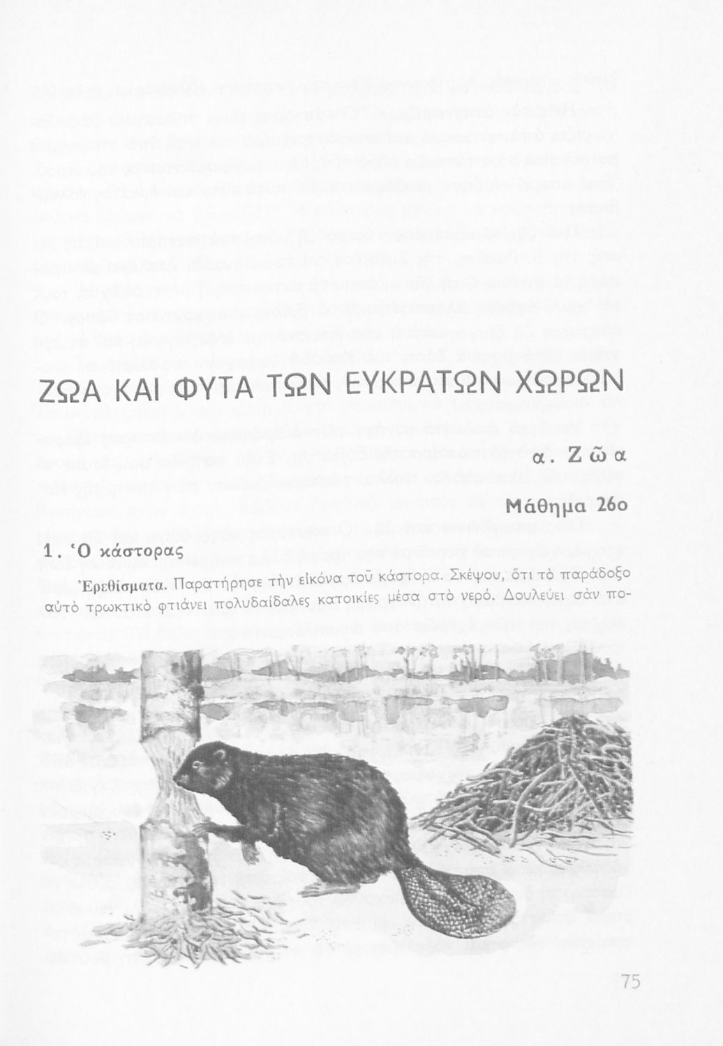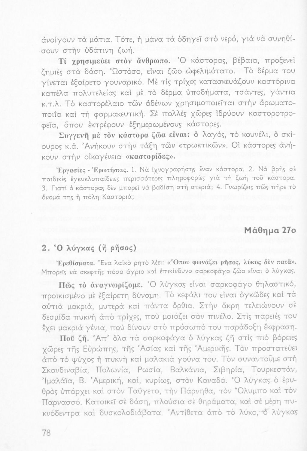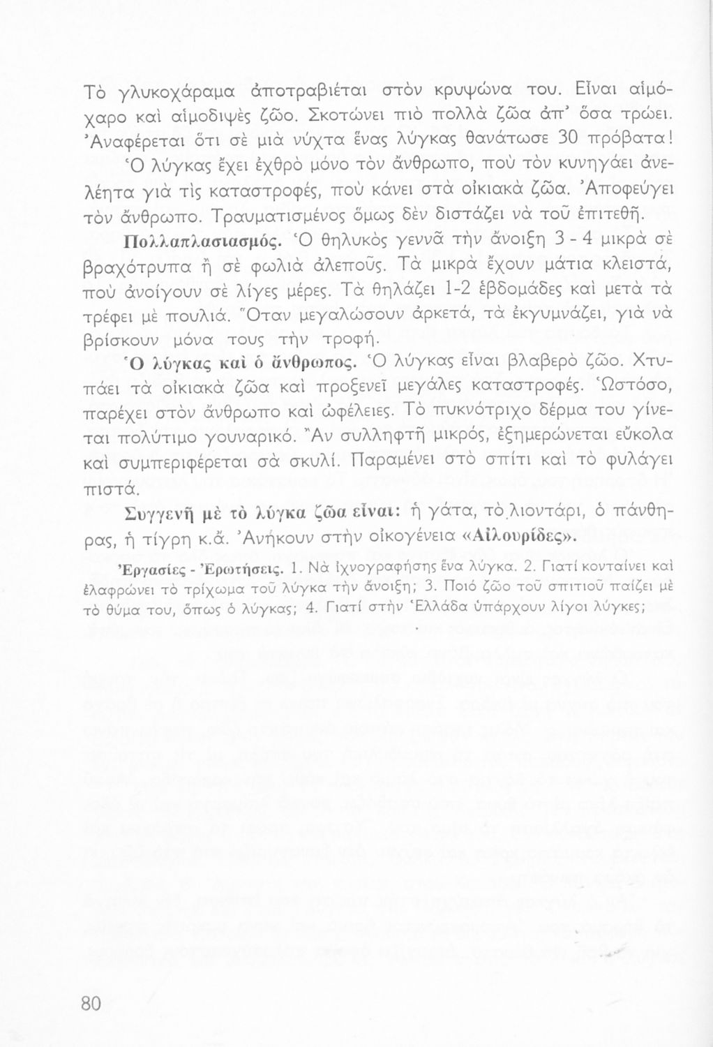 Σχολικό εγχειρίδιο Φυτολογίας και Ζωολογίας της Ε' Δημοτικού το οποίο παρουσιάζει και κατηγοριοποιεί τα ζώα σε θηλαστικά, ερπετά, και πτηνά και αναλύει τον τρόπο ζωής και αναπαραγωγής τους. Στο δεύτερο μέρος του, το βιβλίο παρουσιάζει τα φυτά με βάση τη γεωγραφική της θέση χωρίζοντάς τα σε φυτά θερμών και ψυχρών χωρών. Τέλος, το βιβλίο κλείνει με αναφορές στον τρόπο καλλιέργειας.