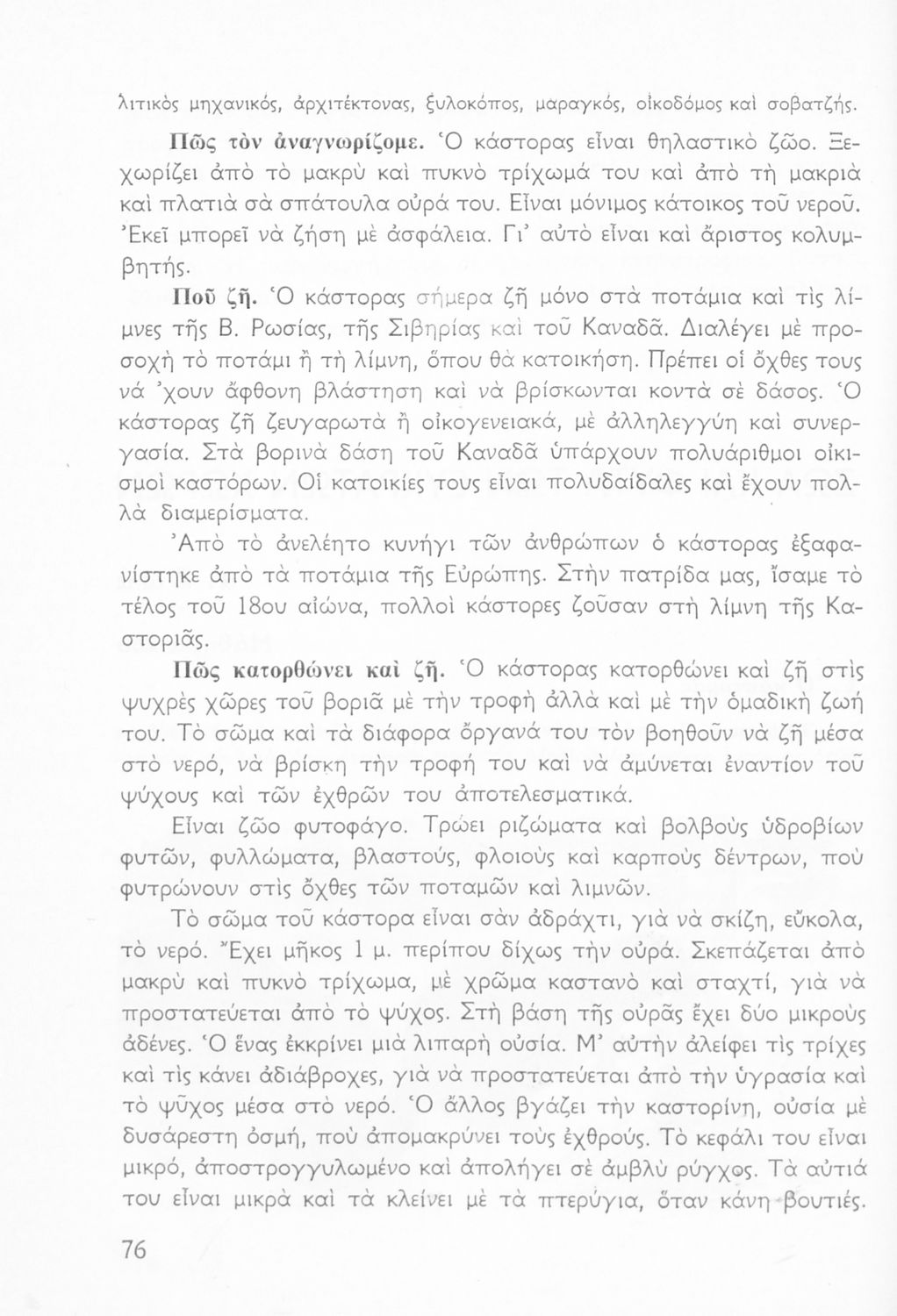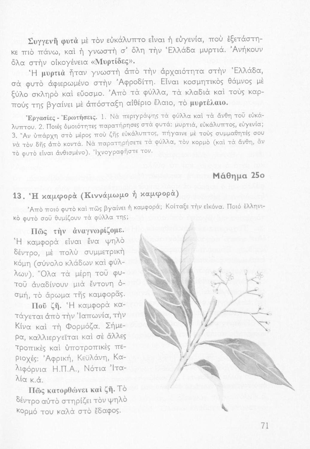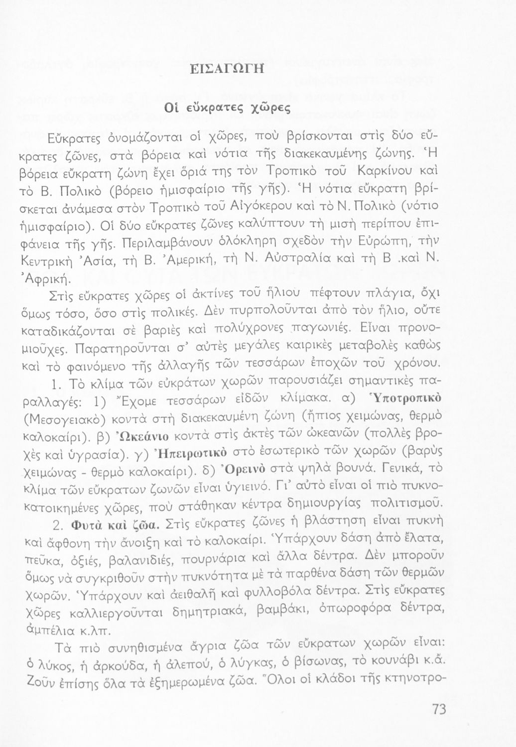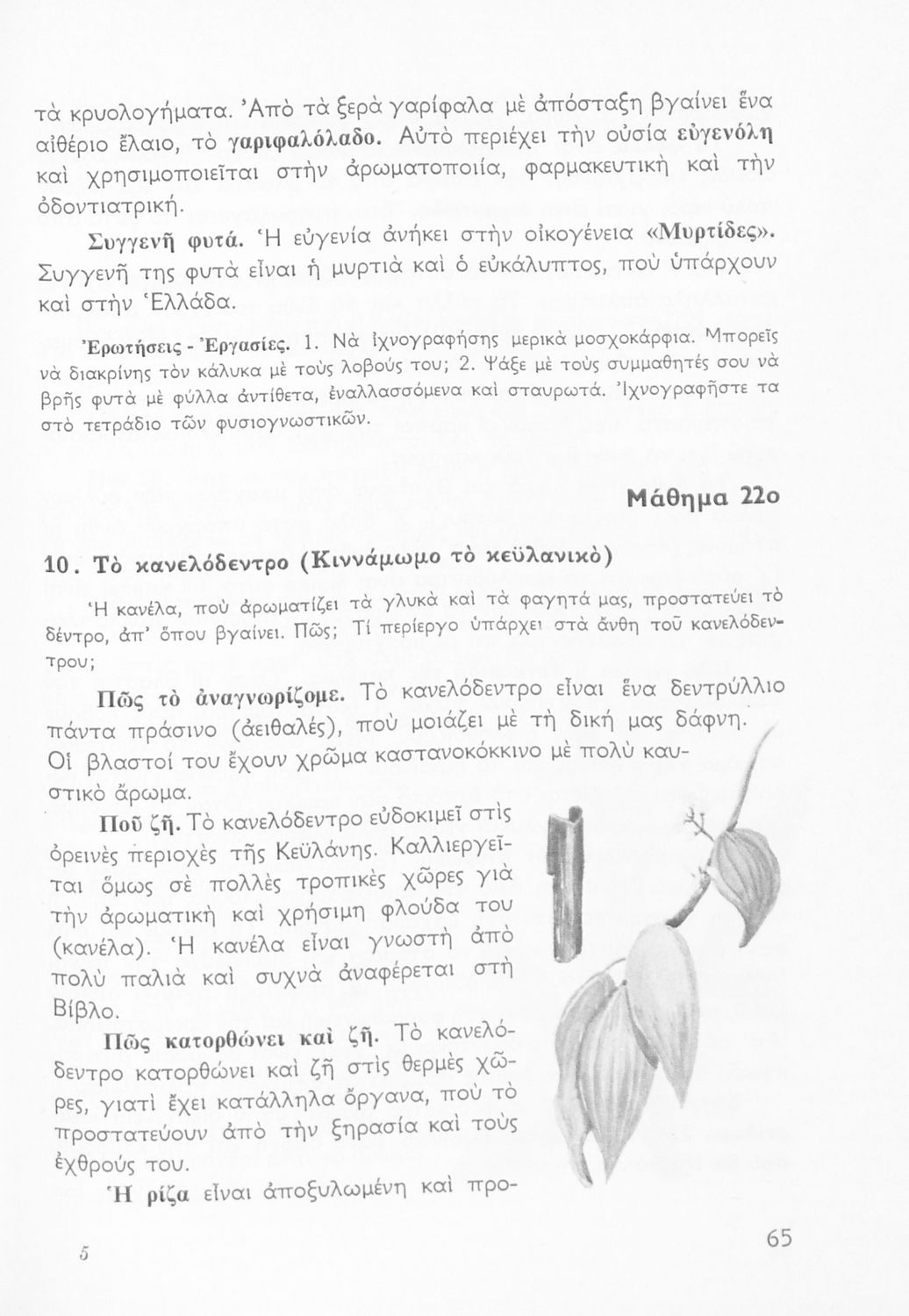 Σχολικό εγχειρίδιο Φυτολογίας και Ζωολογίας της Ε' Δημοτικού το οποίο παρουσιάζει και κατηγοριοποιεί τα ζώα σε θηλαστικά, ερπετά, και πτηνά και αναλύει τον τρόπο ζωής και αναπαραγωγής τους. Στο δεύτερο μέρος του, το βιβλίο παρουσιάζει τα φυτά με βάση τη γεωγραφική της θέση χωρίζοντάς τα σε φυτά θερμών και ψυχρών χωρών. Τέλος, το βιβλίο κλείνει με αναφορές στον τρόπο καλλιέργειας.