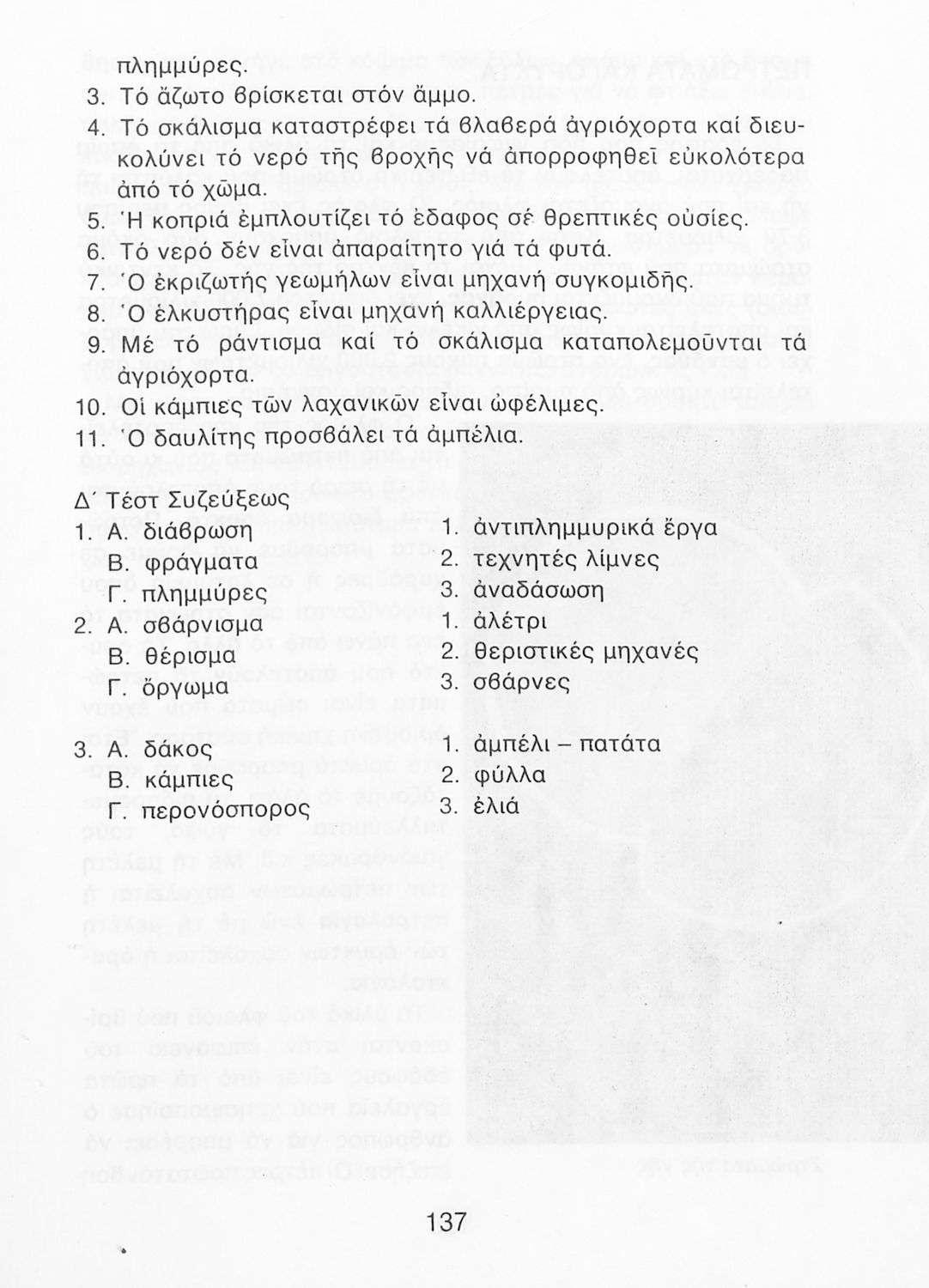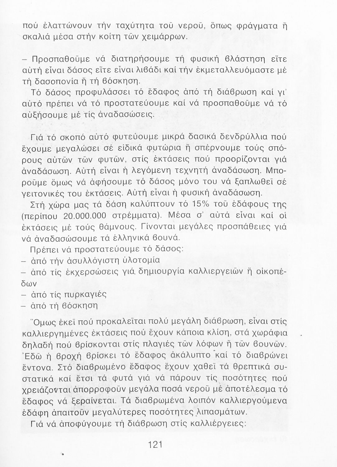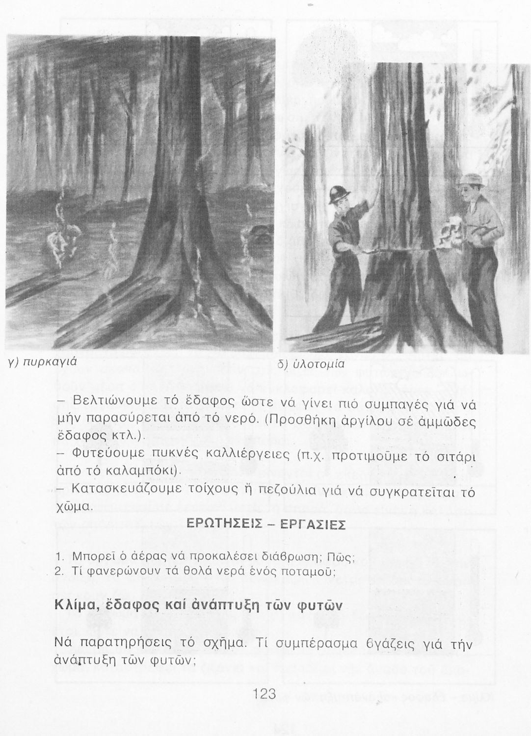 Σχολικό εγχειρίδιο Φυτολογίας και Ζωολογίας της Ε' Δημοτικού. Το βιβλίο παρουσιάζει τις διαφορετικές κατηγορίες ζώων και φυτών, τα χαρακτηριστικά τους και το φυσικό τους περιβάλλον. Παρουσιάζει τα διαφορετικά μέρη των φυτών και των ζώων καθώς και τους τρόπους με τους οποίους αξιοποιούνται από τους ανθρώπους μέσω της καλλιέργειας και της κτηνοτροφίας. Τέλος, το βιβλίο κατηγοριοποιεί τα ζώα και τα φυτά ανάλογα με το φυσικό τους περιβάλλον.