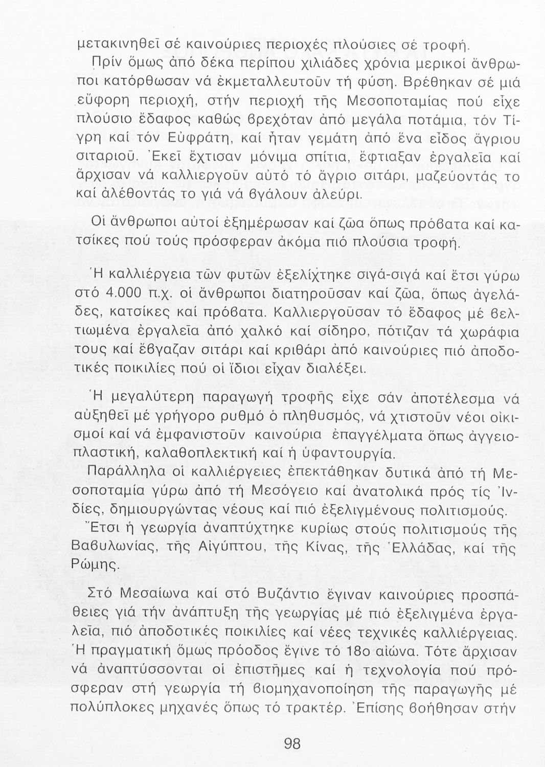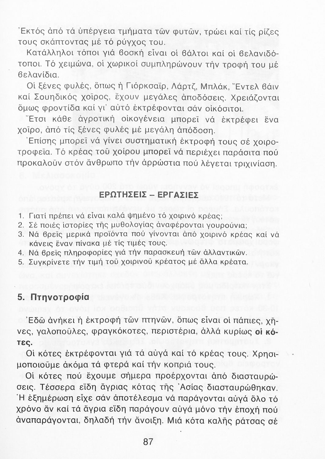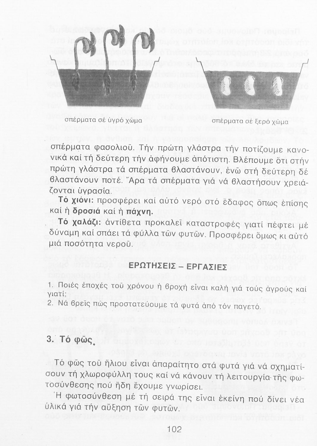 Σχολικό εγχειρίδιο Φυτολογίας και Ζωολογίας της Ε' Δημοτικού. Το βιβλίο παρουσιάζει τις διαφορετικές κατηγορίες ζώων και φυτών, τα χαρακτηριστικά τους και το φυσικό τους περιβάλλον. Παρουσιάζει τα διαφορετικά μέρη των φυτών και των ζώων καθώς και τους τρόπους με τους οποίους αξιοποιούνται από τους ανθρώπους μέσω της καλλιέργειας και της κτηνοτροφίας. Τέλος, το βιβλίο κατηγοριοποιεί τα ζώα και τα φυτά ανάλογα με το φυσικό τους περιβάλλον.