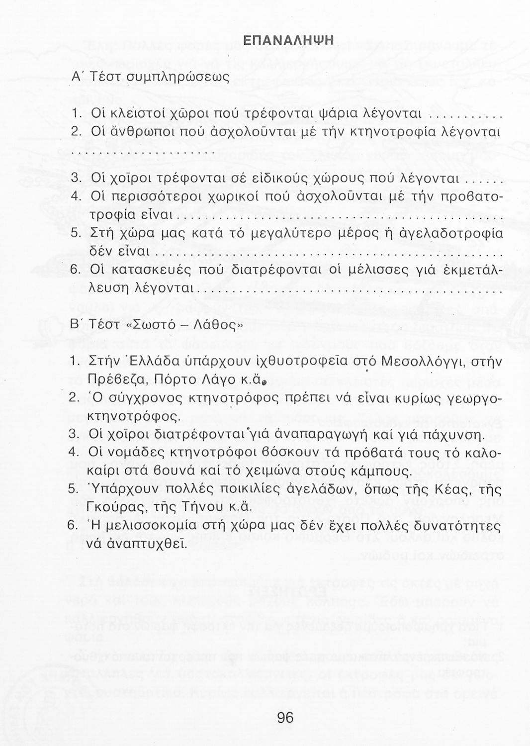 Βαθμίδα εκπαίδευσης: Πρωτοβάθμια Τάξη: Ε' Δημοτικού Γλώσσα: Δημοτική Παρουσίαση περιεχομένου: Σχολικό εγχειρίδιο Φυτολογίας και Ζωολογίας της Ε' Δημοτικού. Το βιβλίο παρουσιάζει τις διαφορετικές κατηγορίες ζώων και φυτών, τα χαρακτηριστικά τους και το φυσικό τους περιβάλλον. Παρουσιάζει τα διαφορετικά μέρη των φυτών και των ζώων καθώς και τους τρόπους με τους οποίους αξιοποιούνται από τους ανθρώπους μέσω της καλλιέργειας και της κτηνοτροφίας. Τέλος, το βιβλίο κατηγοριοποιεί τα ζώα και τα φυτά ανάλογα με το φυσικό τους περιβάλλον. |