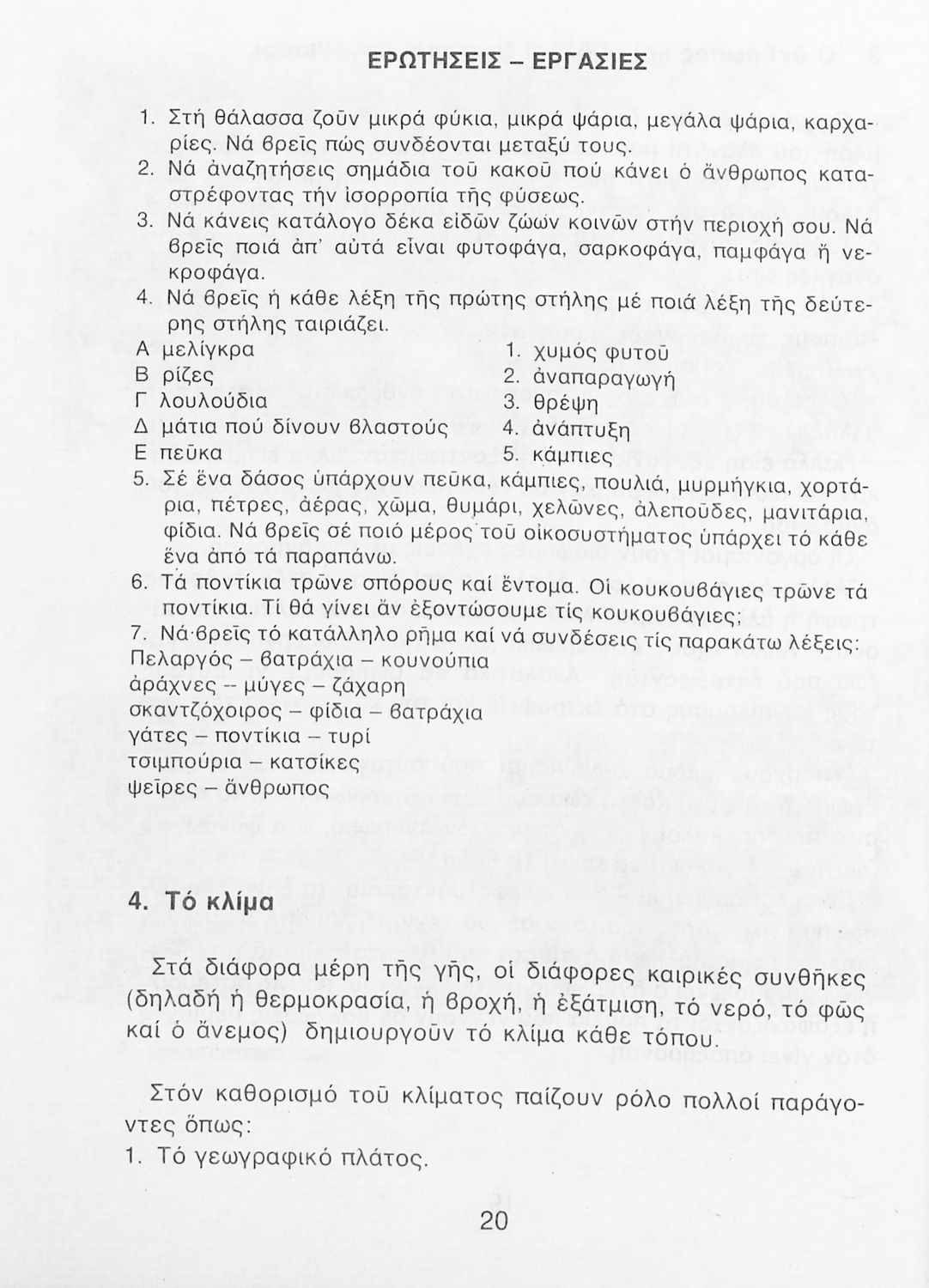 Σχολικό εγχειρίδιο Μελέτης Περιβάλλοντος για την Ε΄ Δημοτικού. Πρόκειται για βιβλίο που μελετά ζώα και φυτά διαφόρων χωρών και τη σχέση τους με τον άνθρωπο. Στο τέλος του βιβλίου γίνεται αναφορά στα πετρώματα ...