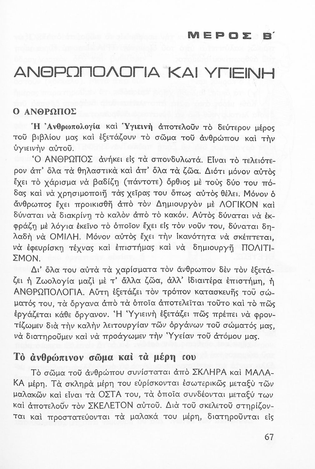 Σχολικό εγχειρίδιο της ΣΤ ΄ Δημοτικού. Το παρόν σχολικό εγχειρίδιο είναι μια επισκόπηση της Ζωολογίας και της Ανθρωπολογίας,. Κατηγοριοποιεί τα ζώα και παραθέτει βασικά γνωρίσματα κάθε κατηγορίας αλλά και τις σχέσεις εξάρτησης των ανθρώπων με κάθε είδος (πχ αλιεία, κτηνοτροφία) στο ελληνικό πλαίσιο. Το δεύτερο μέρος αναλύει τα μέρη του ανθρώπινου σώματος και εστιάζει σε ζητήματα ανθρώπινης υγιεινής.