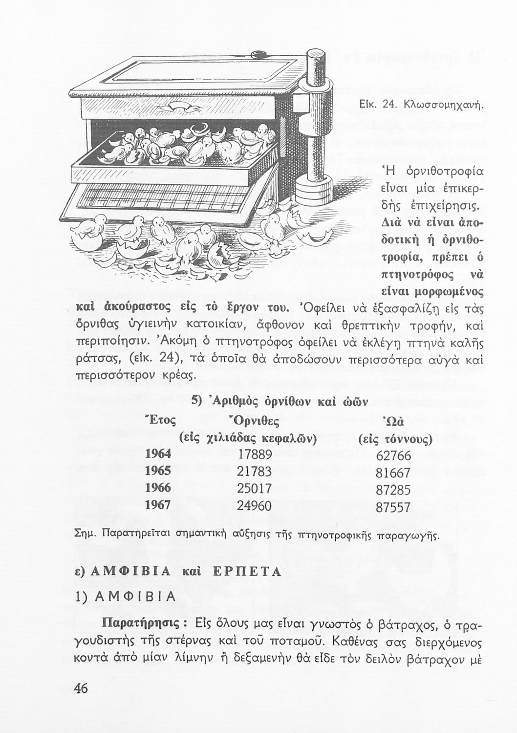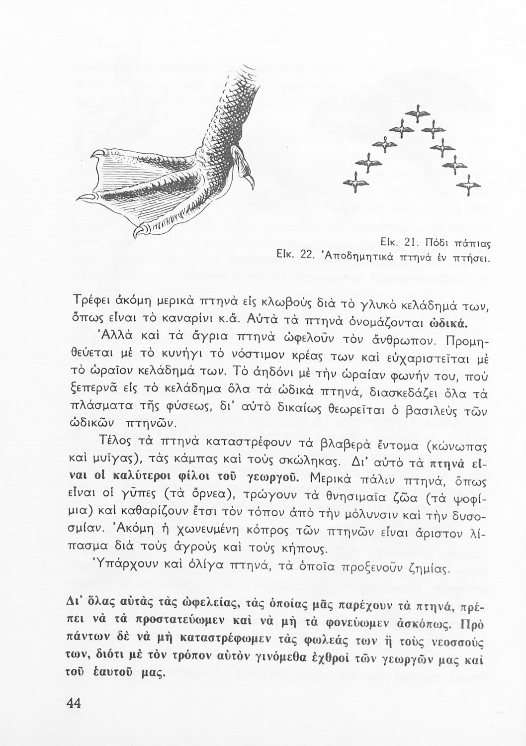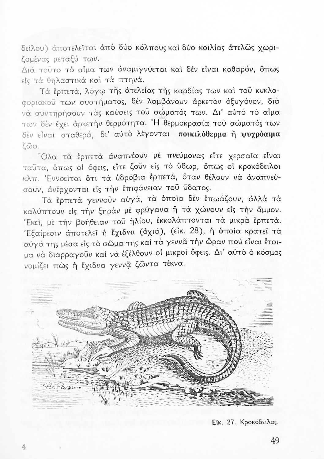 Σχολικό εγχειρίδιο Φυσικής Ιστορίας της ΣΤ΄ Δημοτικού το οποίο κάνει μια επισκόπηση της επιστημών της φυτολογίας, της ζωολογίας και της ανθρωπολογίας,. Κατηγοριοποιεί τα ζώα και παραθέτει βασικά γνωρίσματα κάθε κατηγορίας αλλά και τις σχέσεις εξάρτησης των ανθρώπων με κάθε είδος (πχ αλιεία, κτηνοτροφία) στο ελληνικό πλαίσιο. Το δεύτερο μέρος αναλύει τα μέρη του ανθρώπινου σώματος και εστιάζει σε ζητήματα υγιεινής.