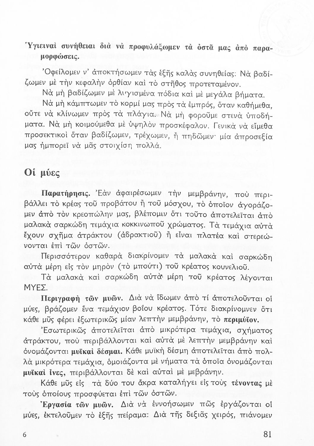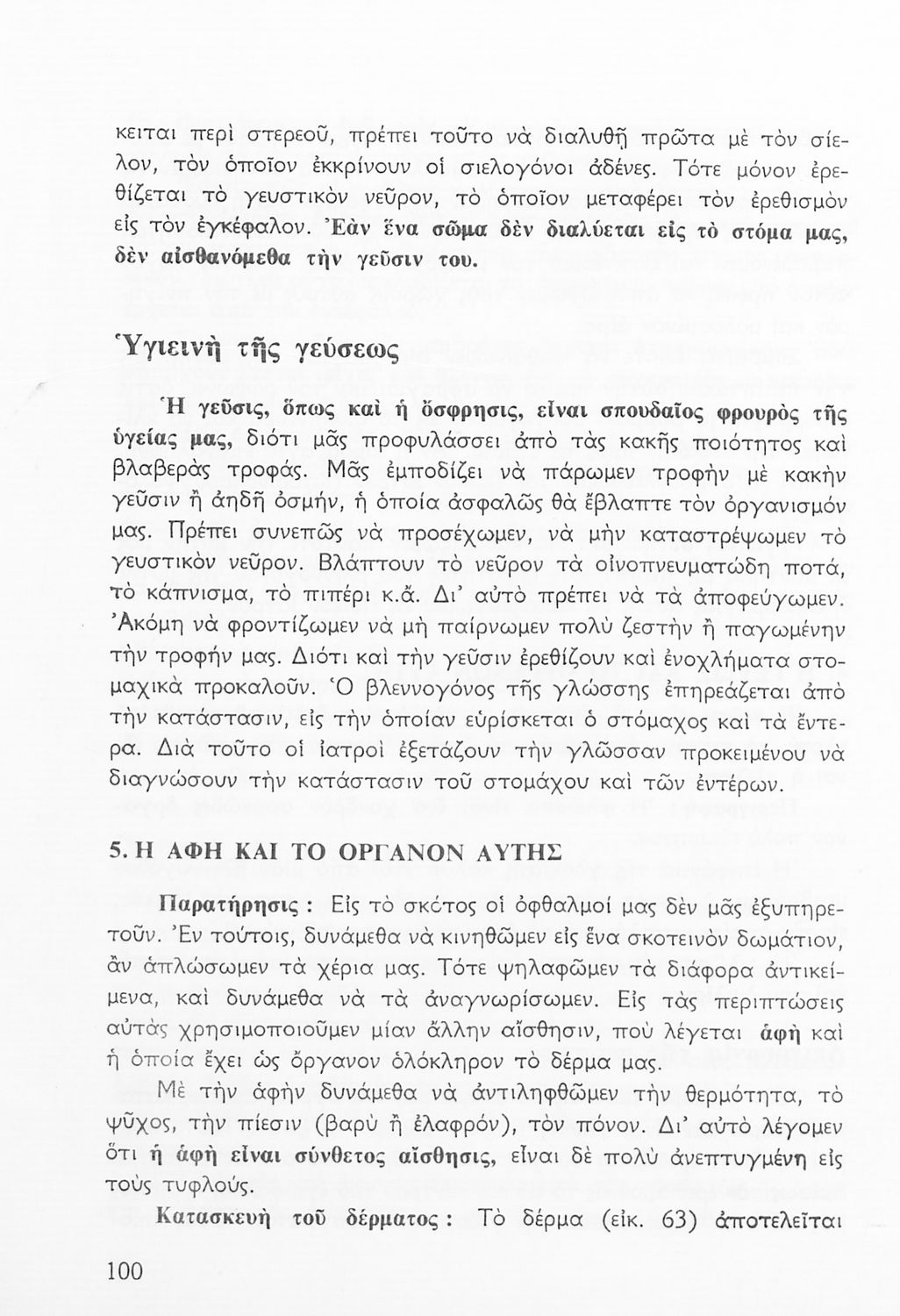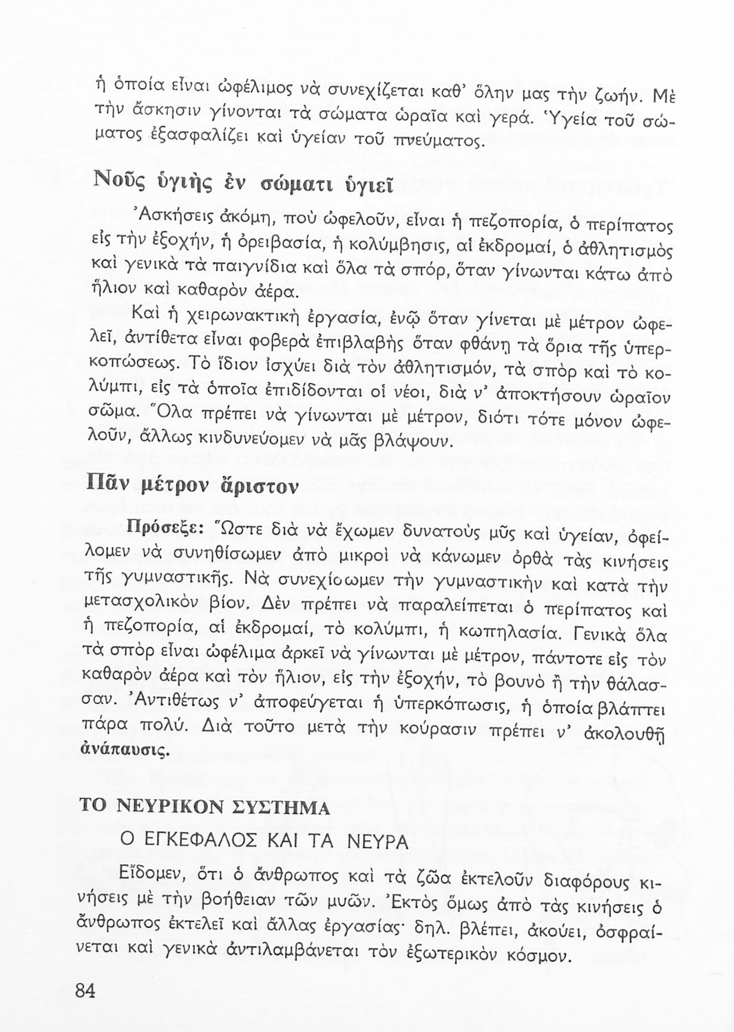 Σχολικό εγχειρίδιο Φυσικής Ιστορίας της ΣΤ΄ Δημοτικού το οποίο κάνει μια επισκόπηση της επιστημών της φυτολογίας, της ζωολογίας και της ανθρωπολογίας,. Κατηγοριοποιεί τα ζώα και παραθέτει βασικά γνωρίσματα κάθε κατηγορίας αλλά και τις σχέσεις εξάρτησης των ανθρώπων με κάθε είδος (πχ αλιεία, κτηνοτροφία) στο ελληνικό πλαίσιο. Το δεύτερο μέρος αναλύει τα μέρη του ανθρώπινου σώματος και εστιάζει σε ζητήματα υγιεινής.