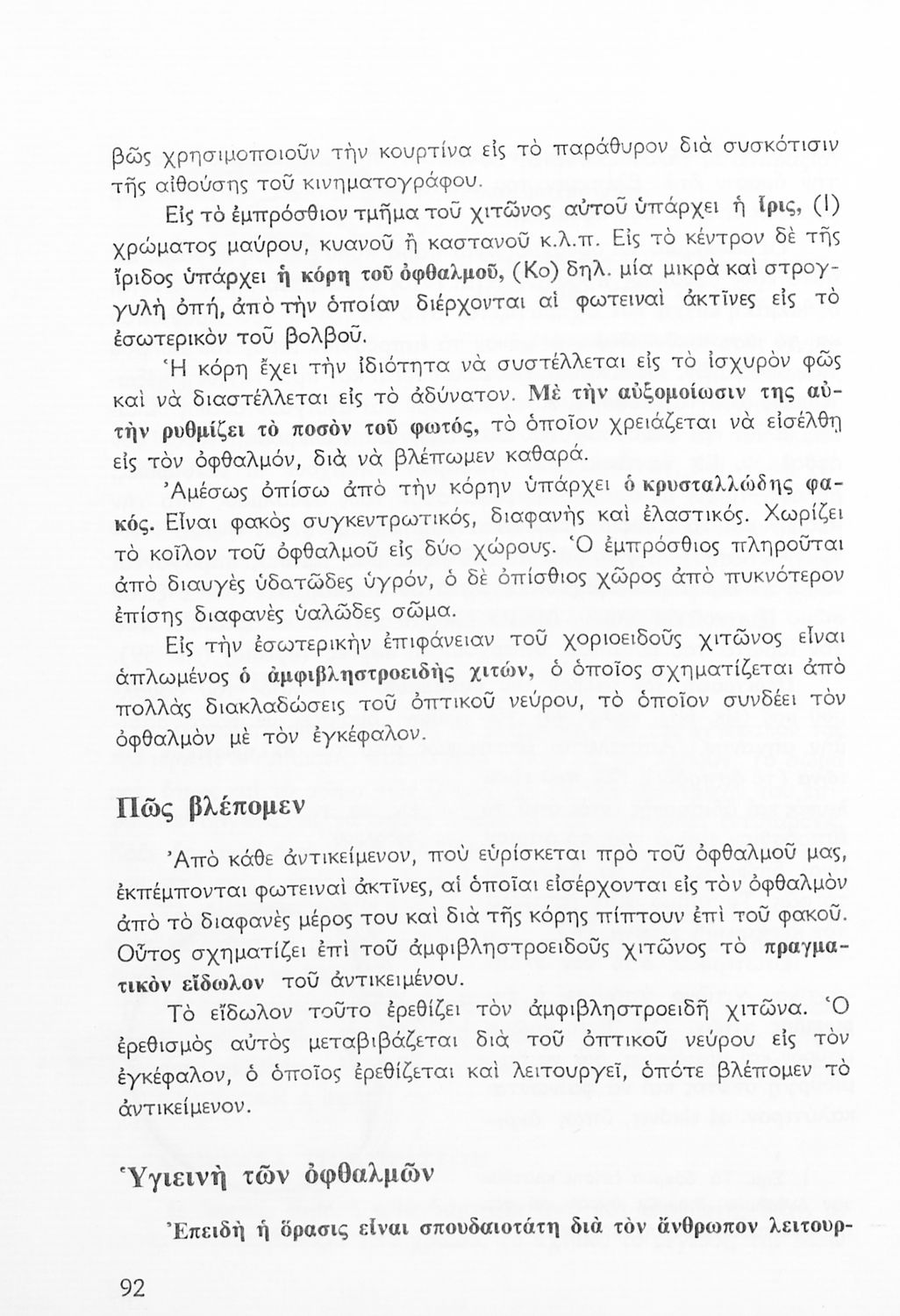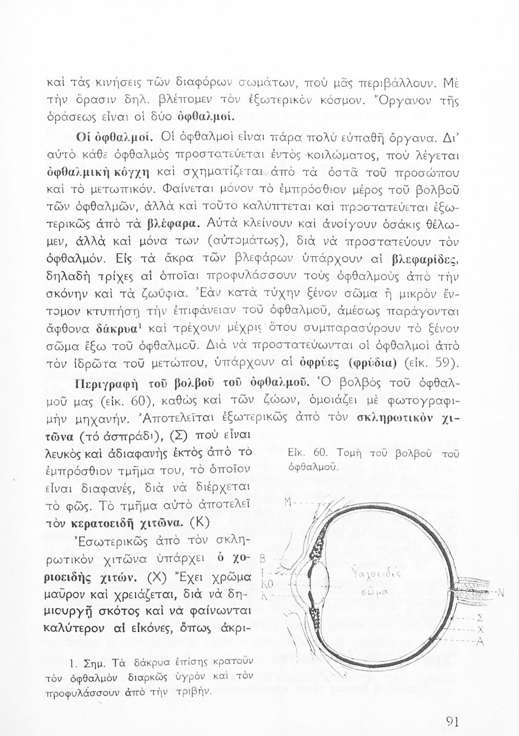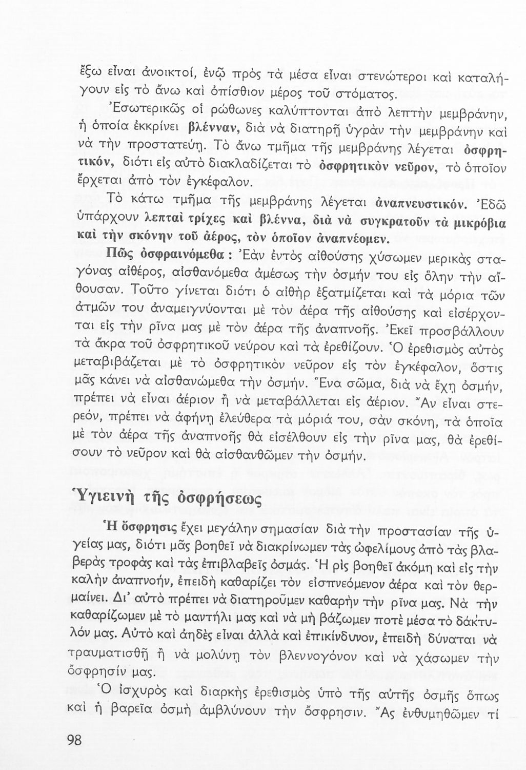 Σχολικό εγχειρίδιο Φυσικής Ιστορίας της ΣΤ΄ Δημοτικού το οποίο κάνει μια επισκόπηση της επιστημών της φυτολογίας, της ζωολογίας και της ανθρωπολογίας,. Κατηγοριοποιεί τα ζώα και παραθέτει βασικά γνωρίσματα κάθε κατηγορίας αλλά και τις σχέσεις εξάρτησης των ανθρώπων με κάθε είδος (πχ αλιεία, κτηνοτροφία) στο ελληνικό πλαίσιο. Το δεύτερο μέρος αναλύει τα μέρη του ανθρώπινου σώματος και εστιάζει σε ζητήματα υγιεινής.