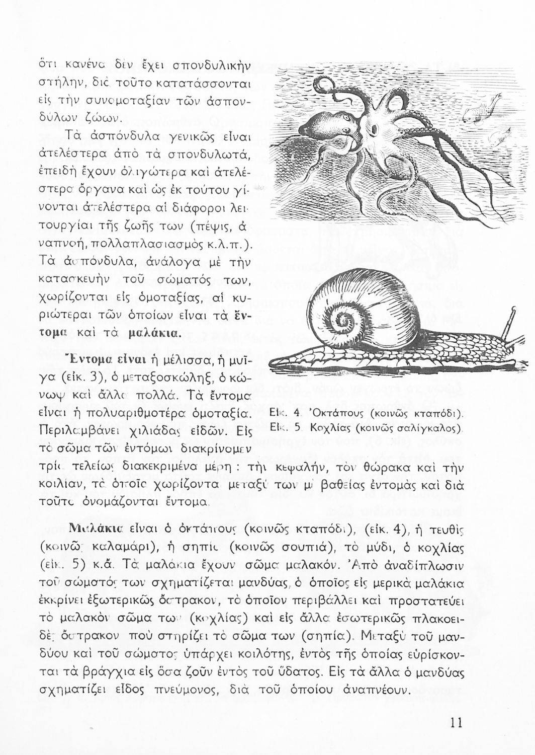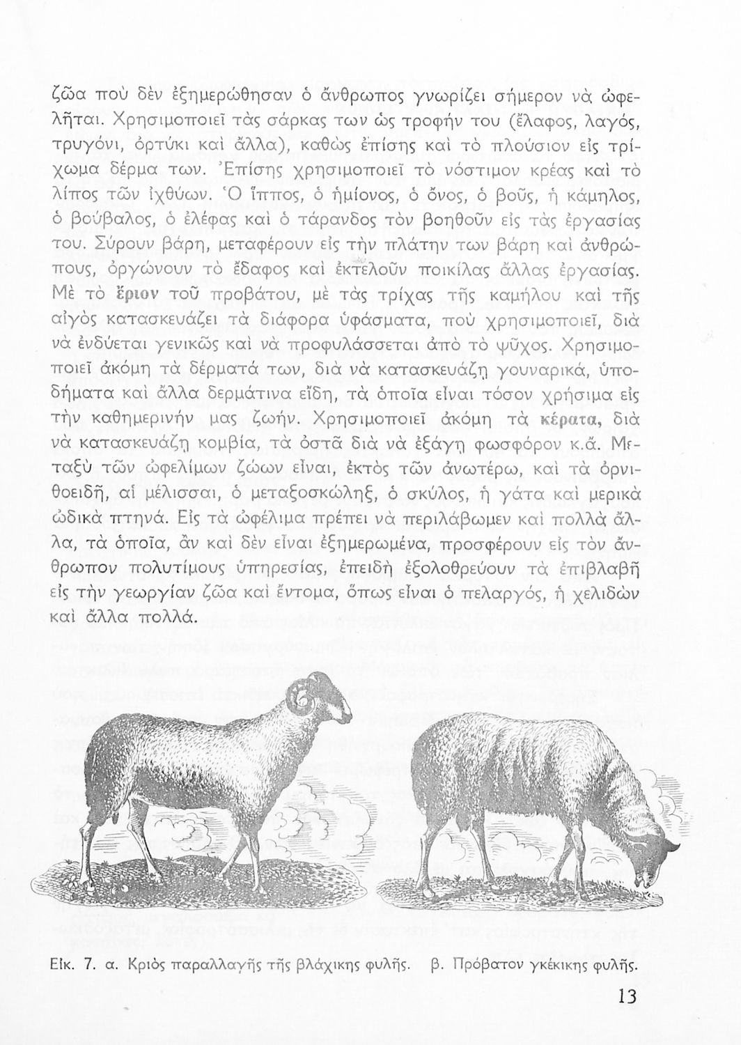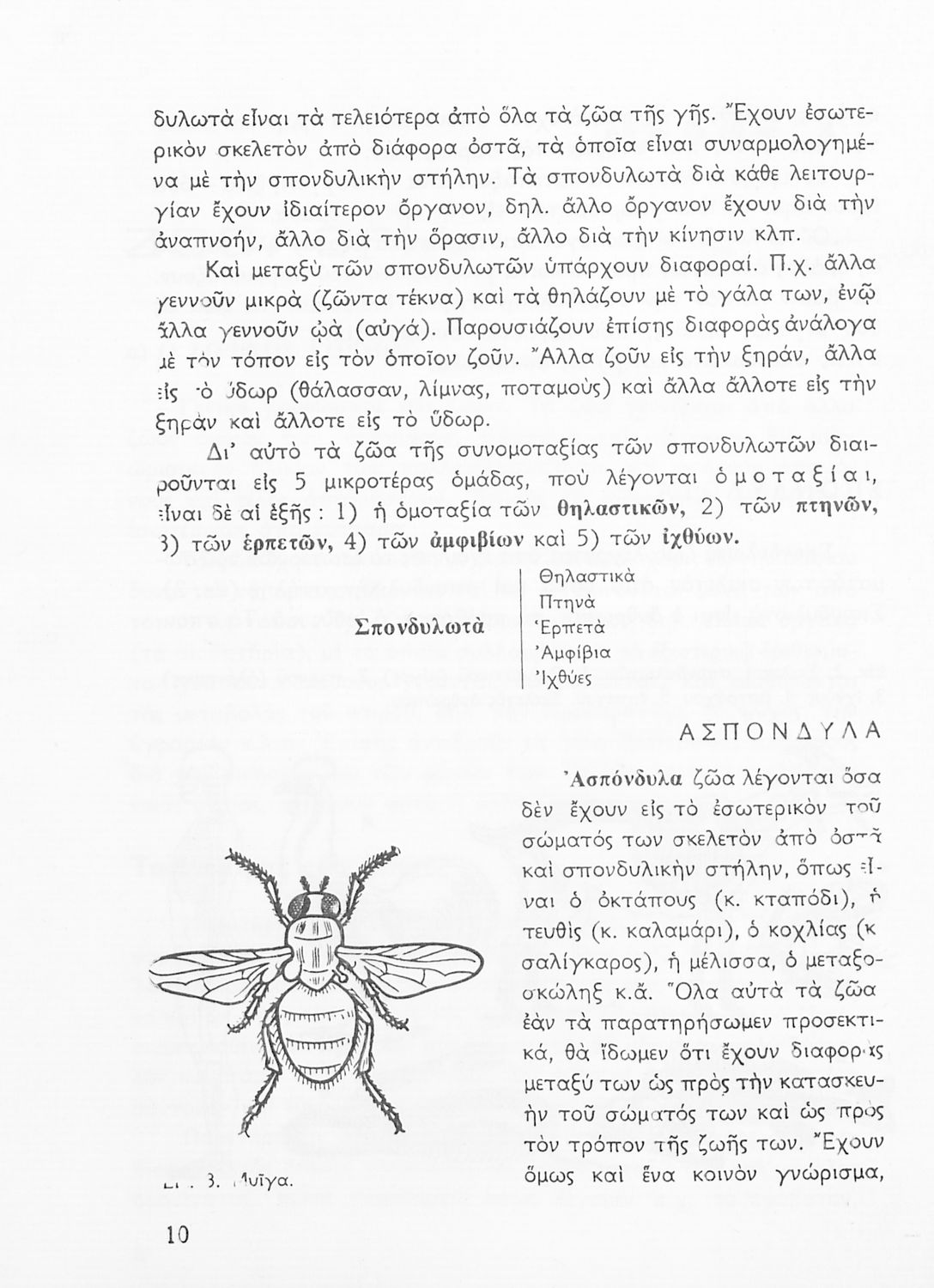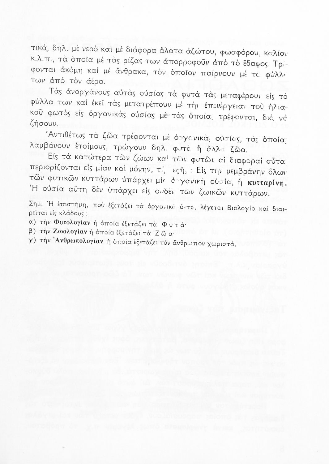 Σχολικό εγχειρίδιο Φυσικής Ιστορίας της ΣΤ΄ Δημοτικού το οποίο κάνει μια επισκόπηση της επιστημών της φυτολογίας, της ζωολογίας και της ανθρωπολογίας,. Κατηγοριοποιεί τα ζώα και παραθέτει βασικά γνωρίσματα κάθε κατηγορίας αλλά και τις σχέσεις εξάρτησης των ανθρώπων με κάθε είδος (πχ αλιεία, κτηνοτροφία) στο ελληνικό πλαίσιο. Το δεύτερο μέρος αναλύει τα μέρη του ανθρώπινου σώματος και εστιάζει σε ζητήματα υγιεινής.